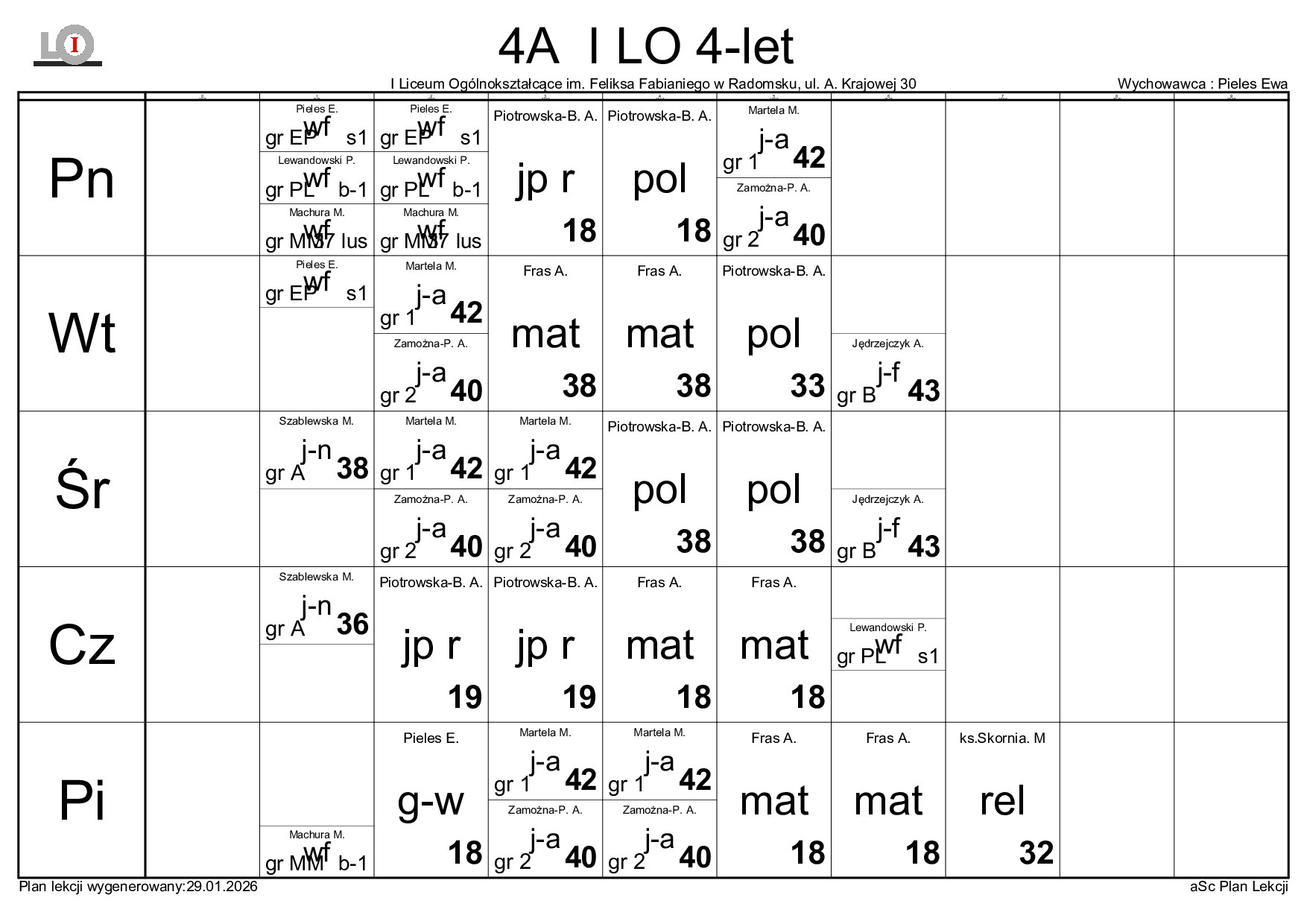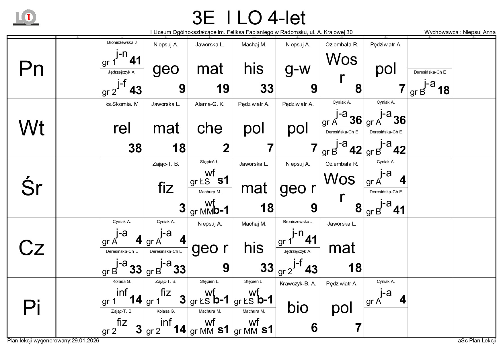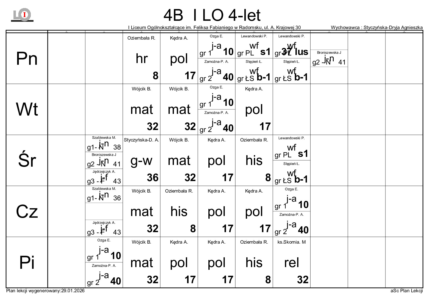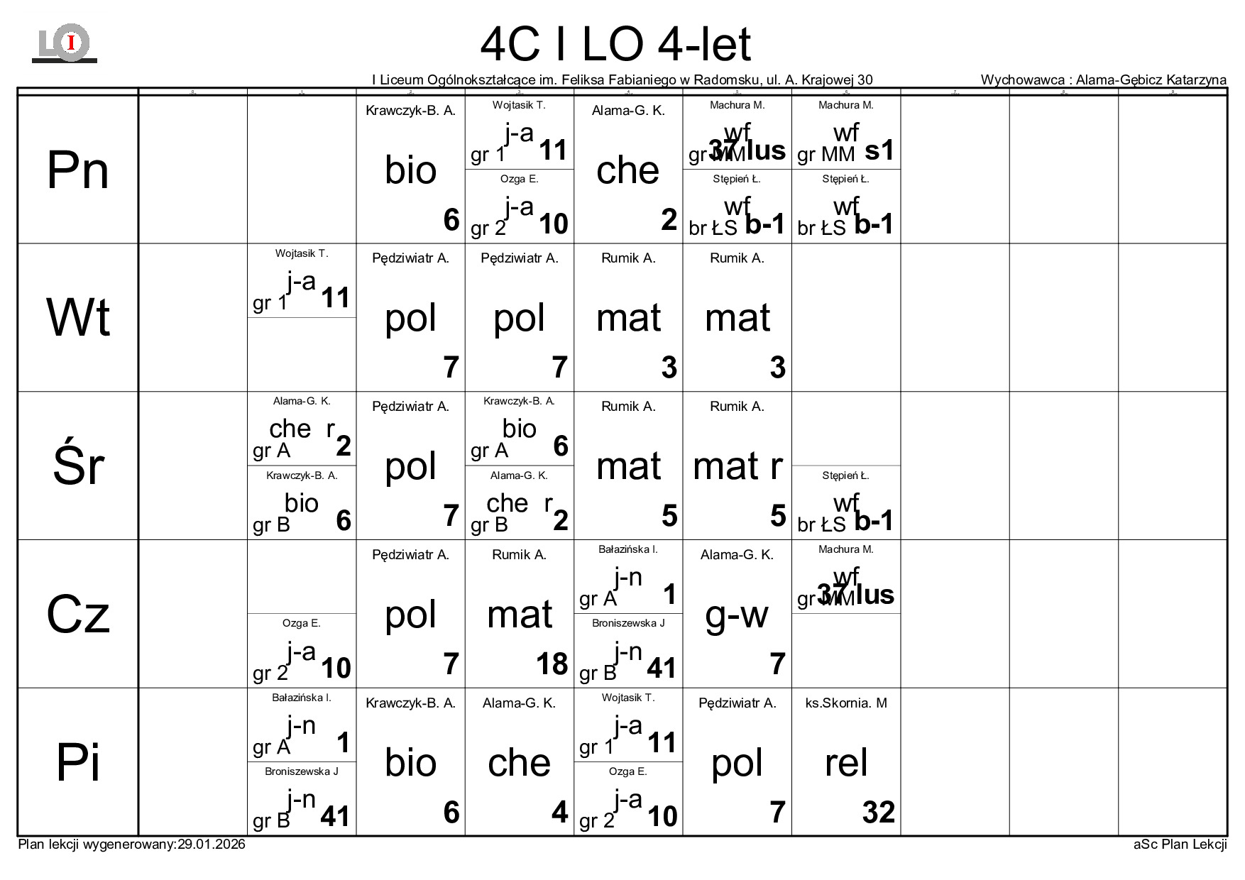PLAN LEKCJI NA ROK SZKOLNY 2025/2026