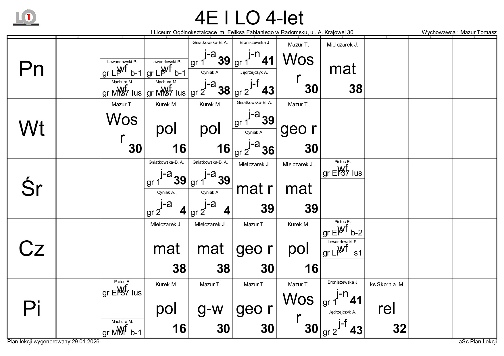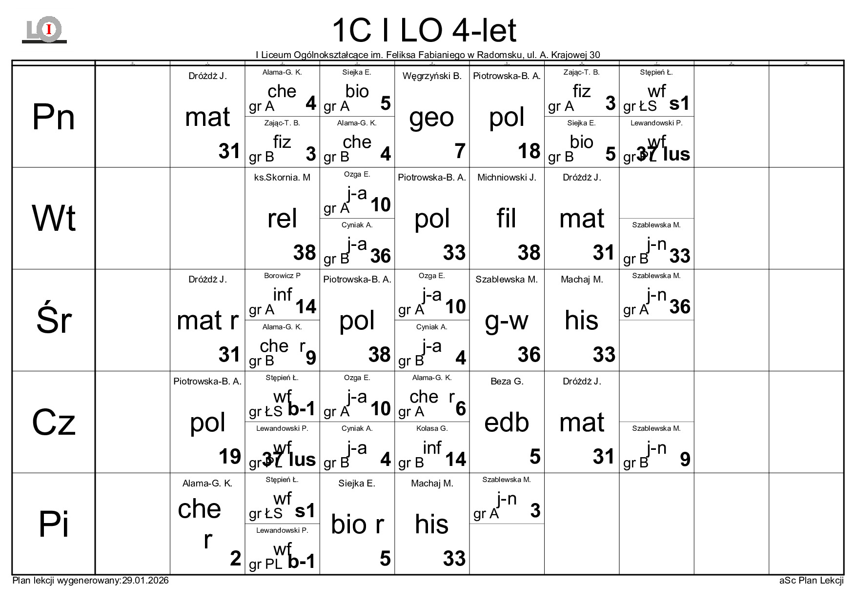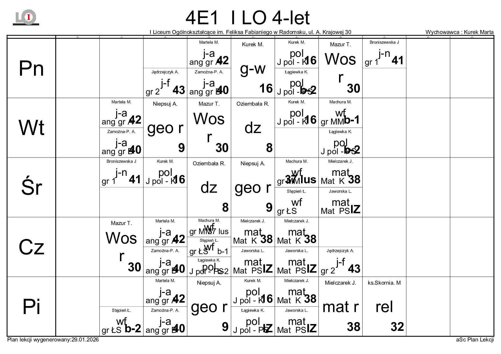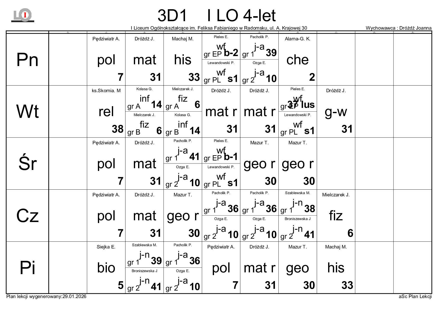 PLAN LEKCJI NA ROK SZKOLNY 2025/2026