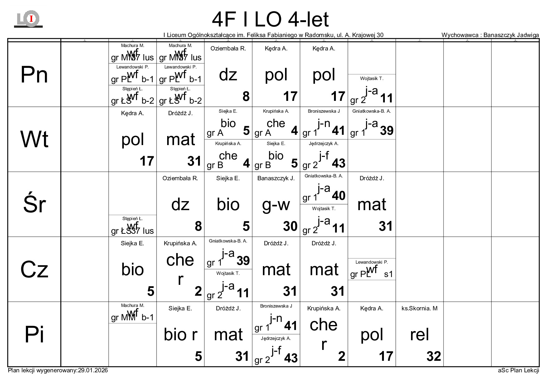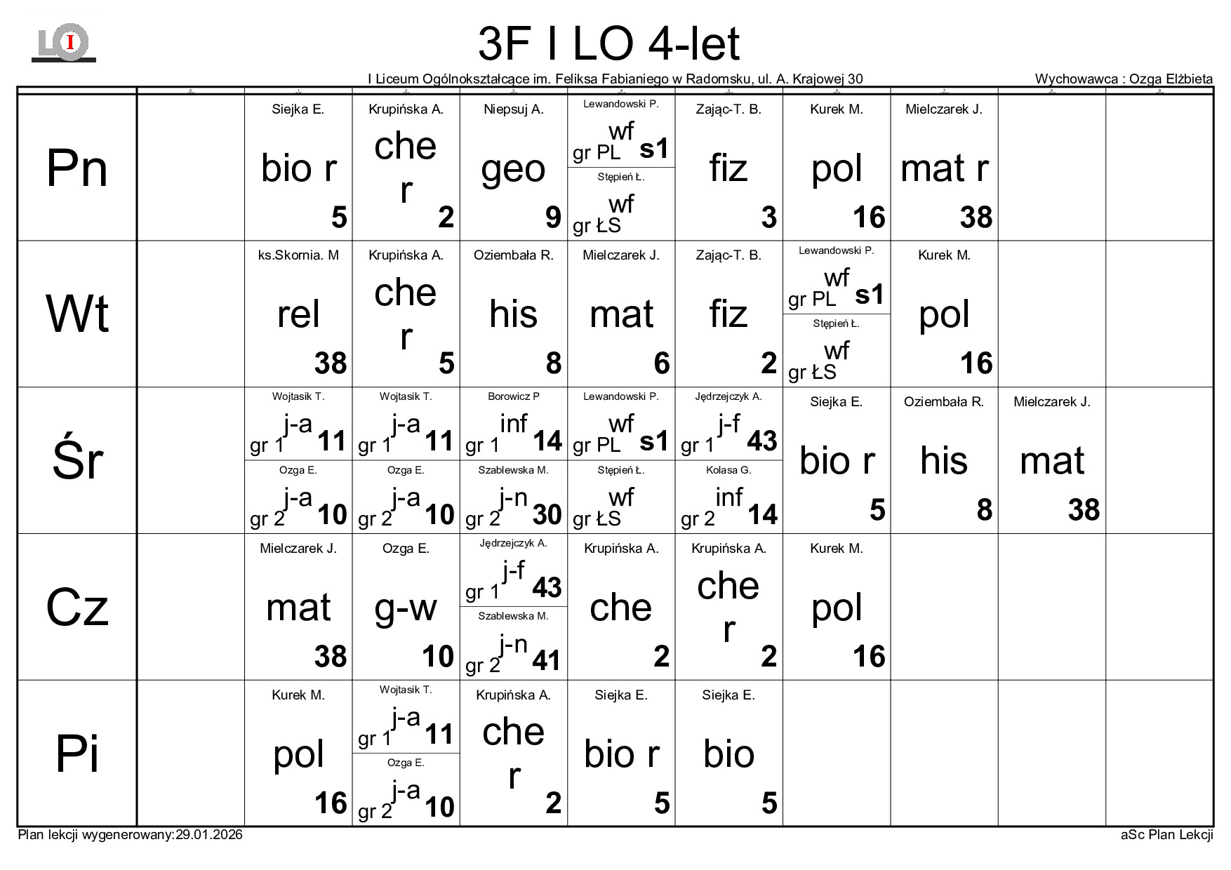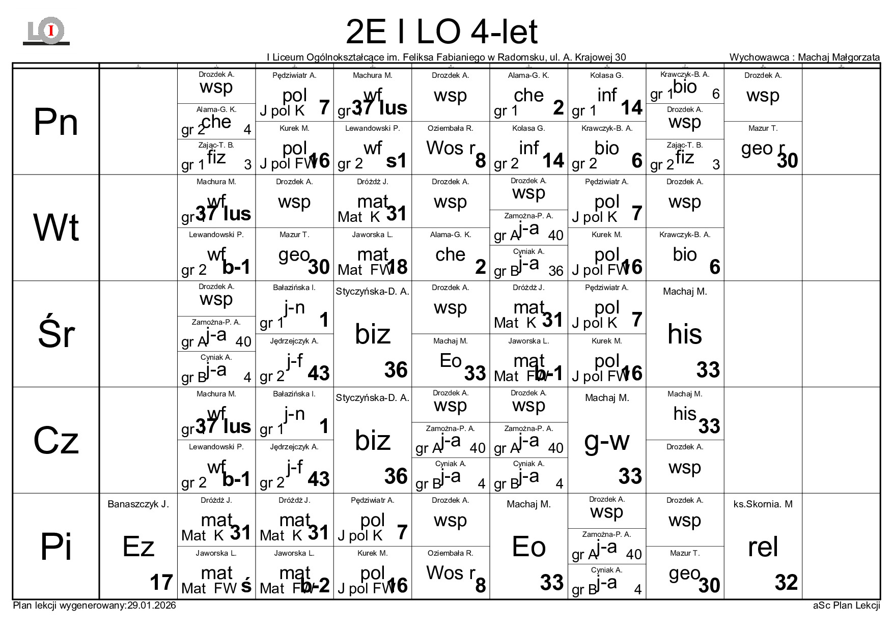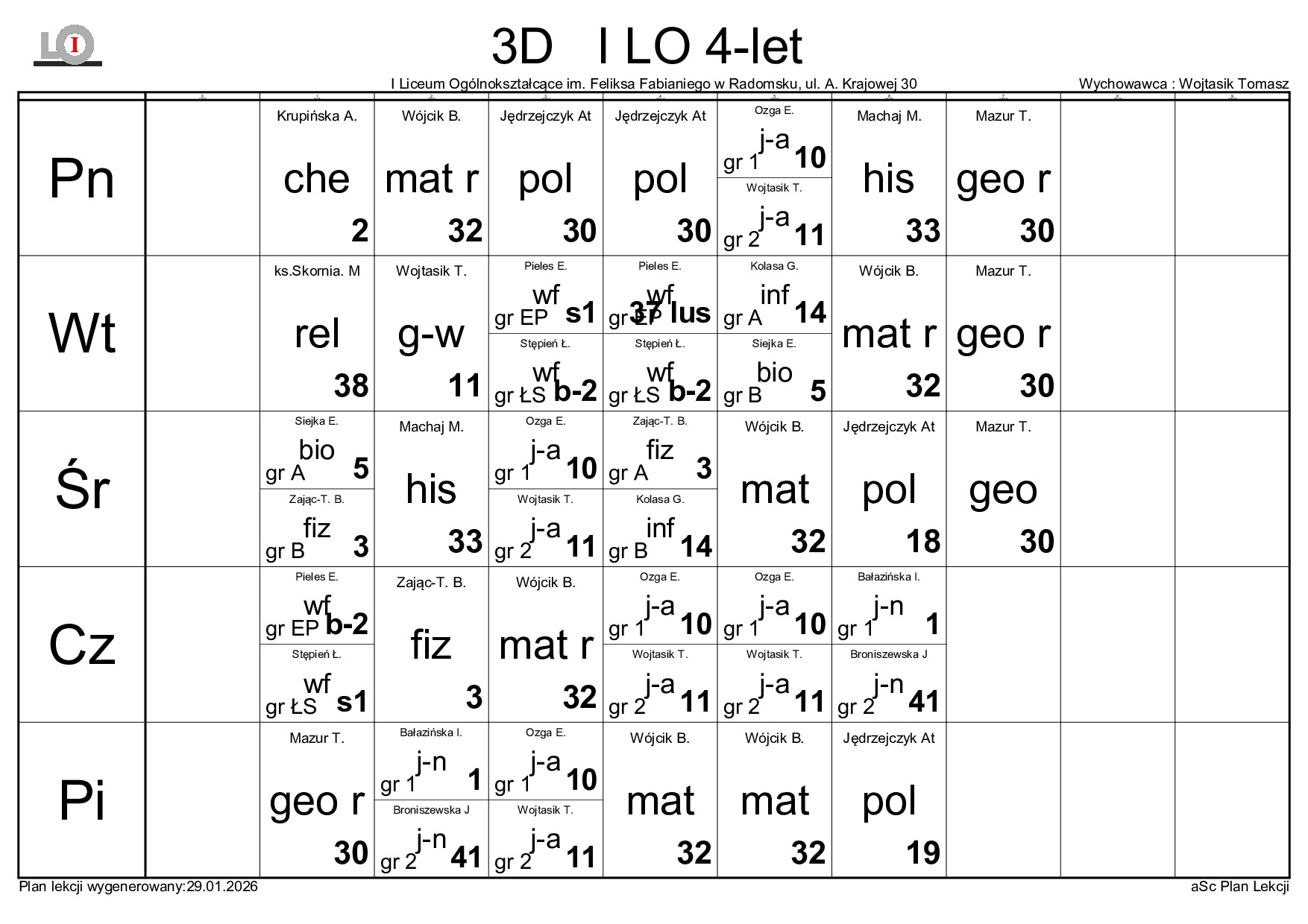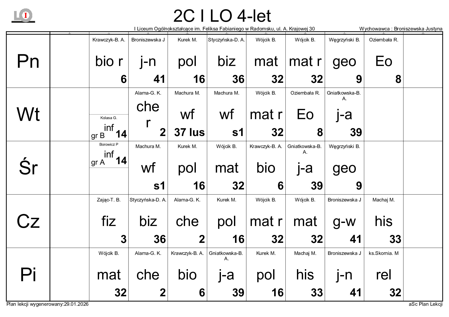 PLAN LEKCJI NA ROK SZKOLNY 2025/2026