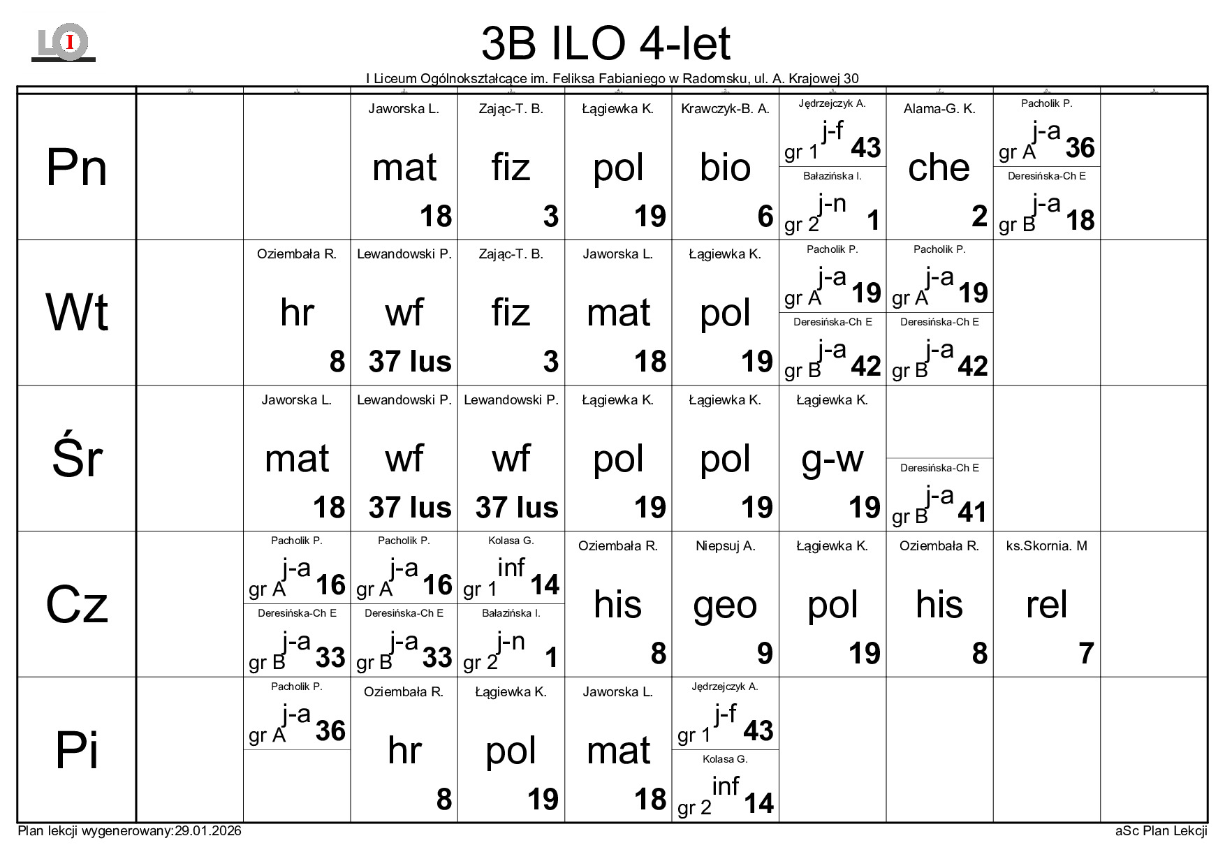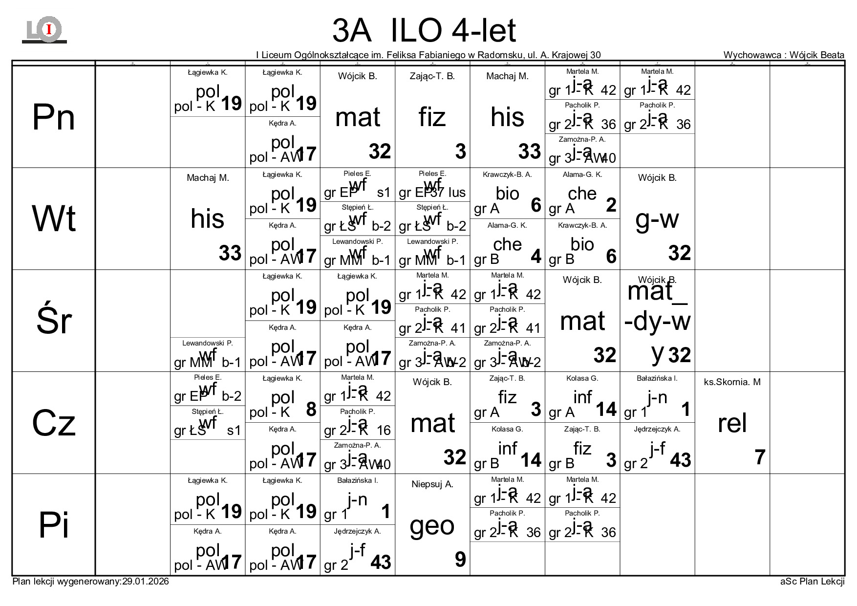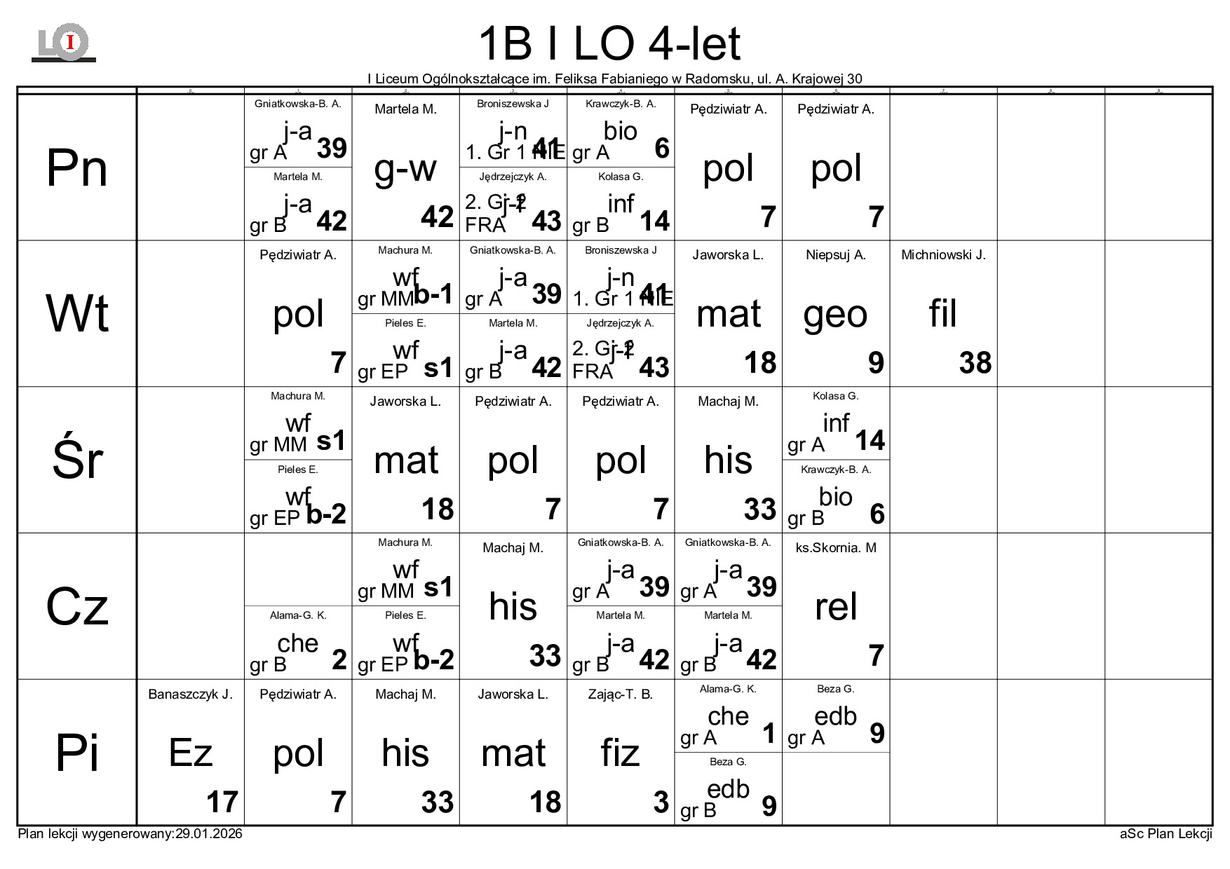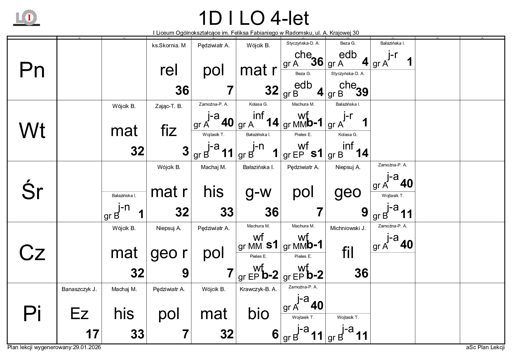 PLAN LEKCJI NA ROK SZKOLNY 2025/2026