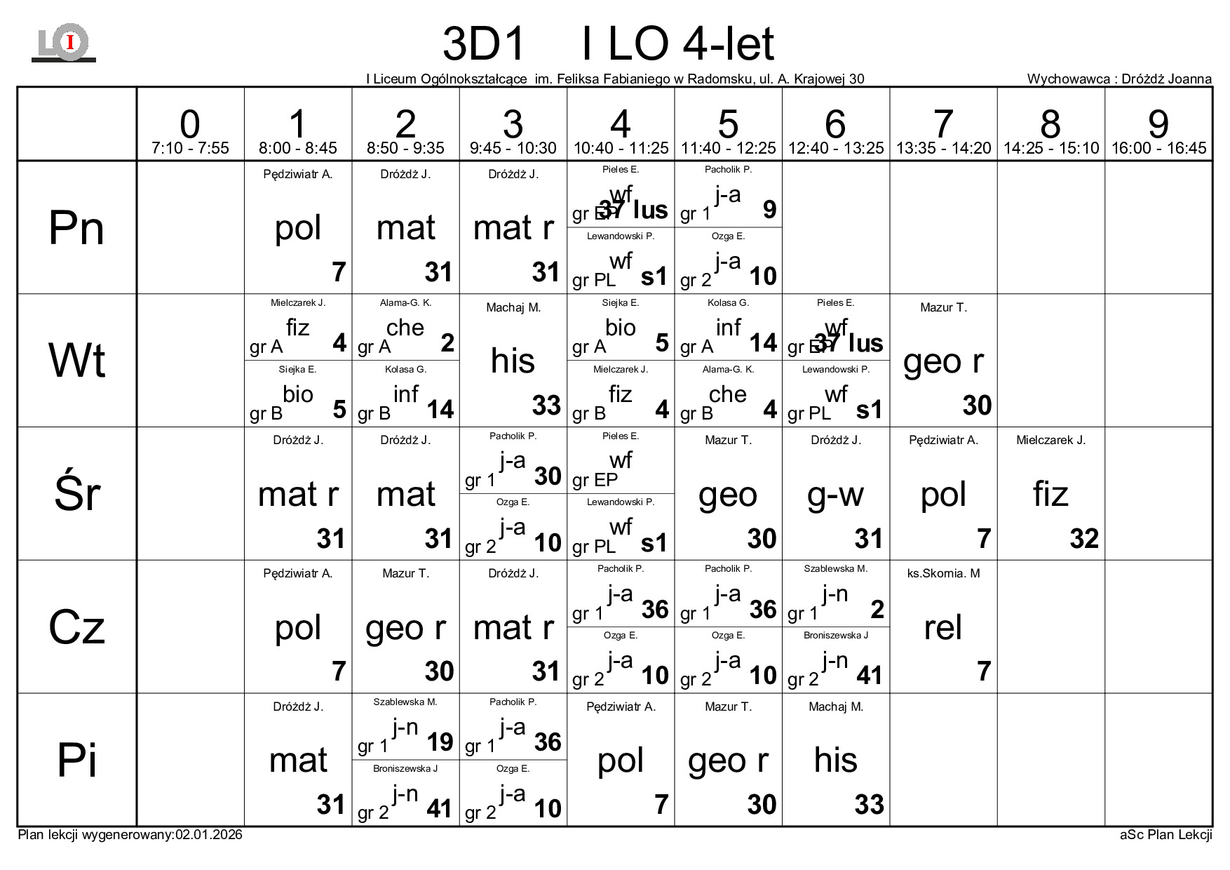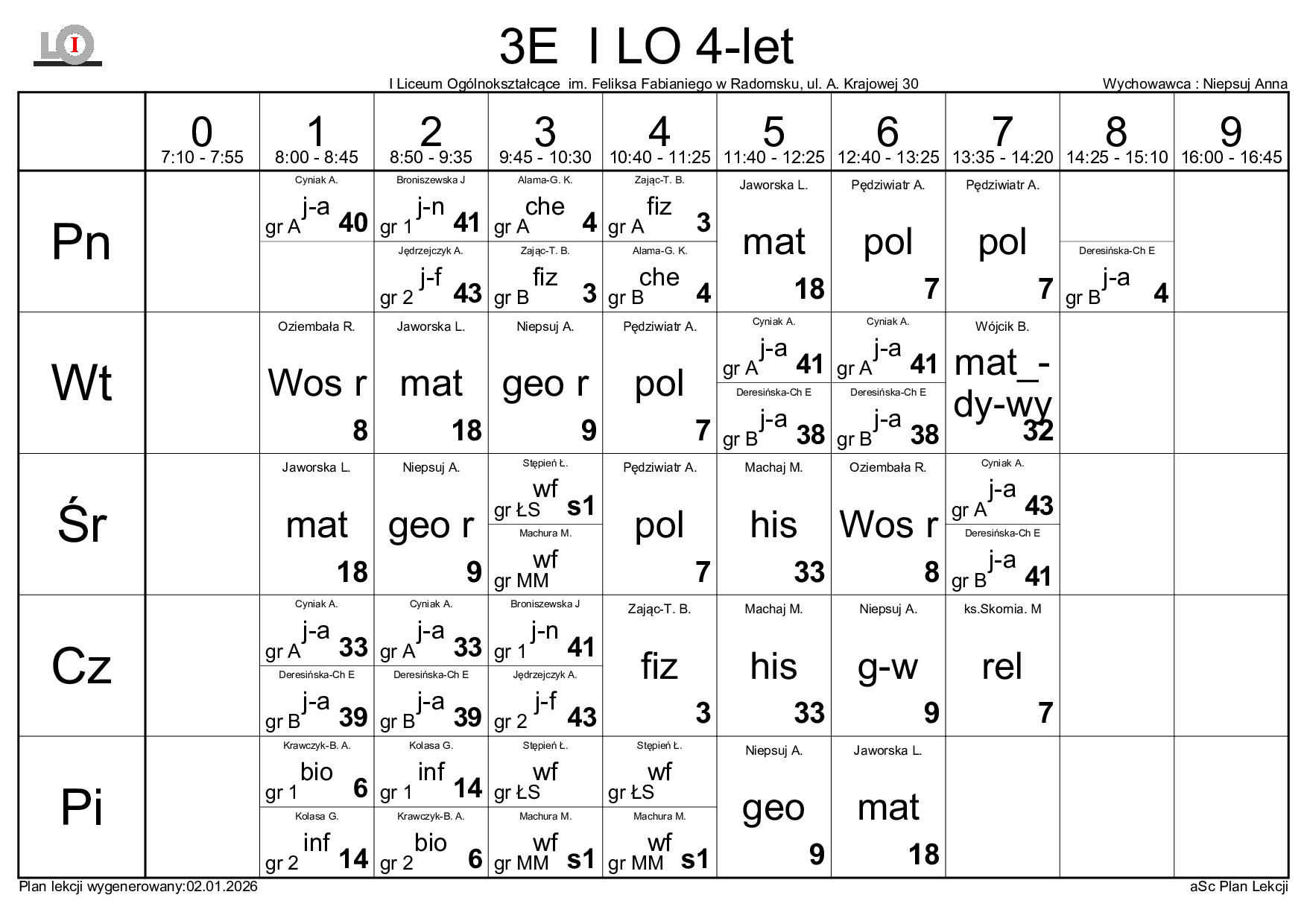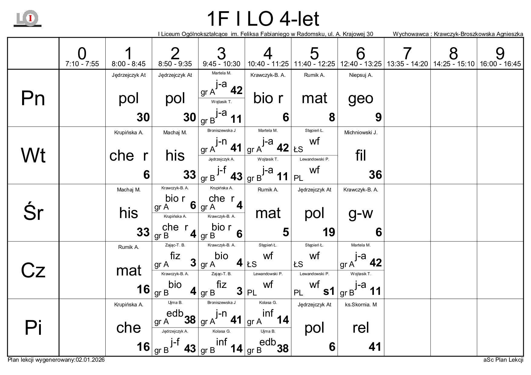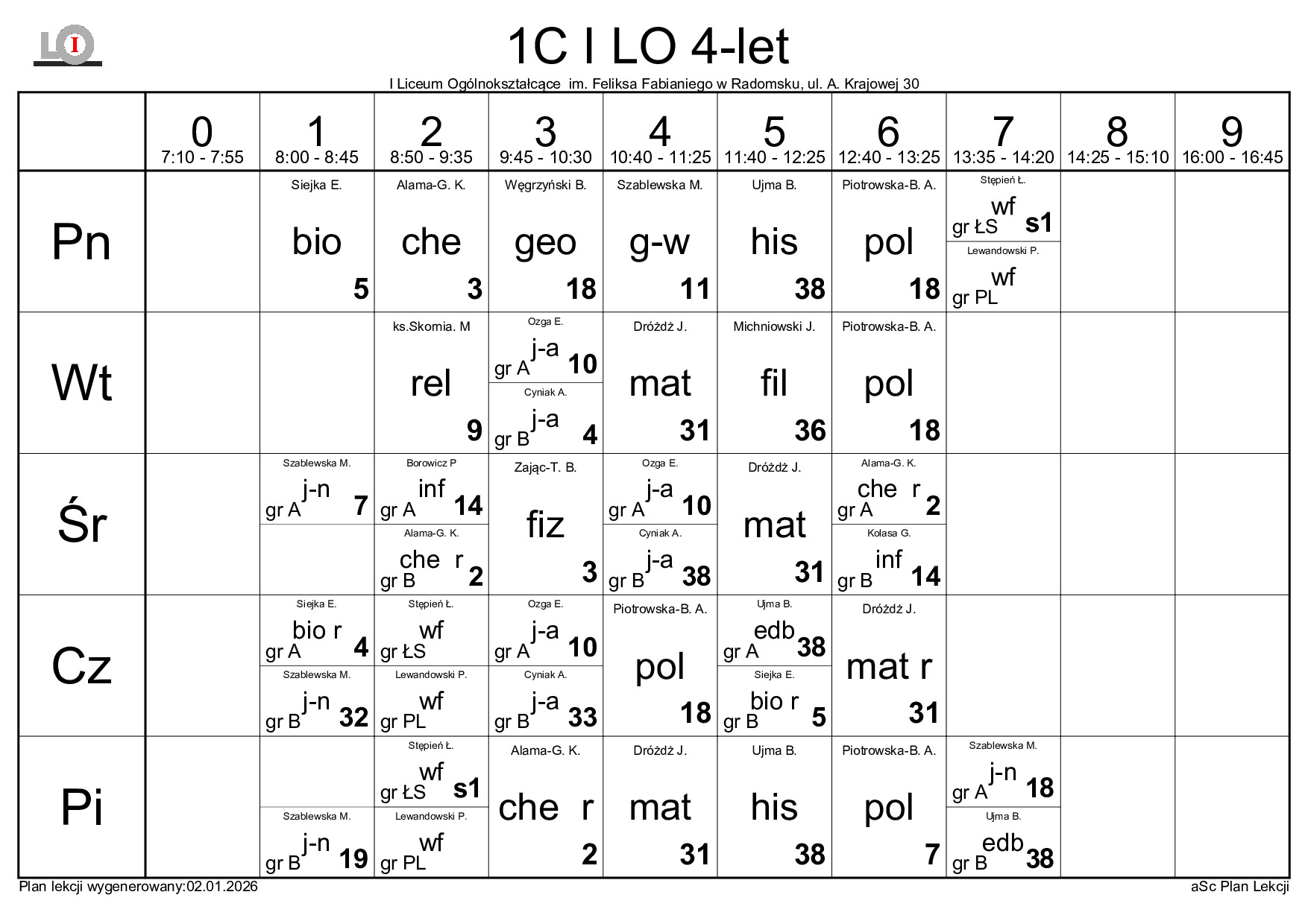 PLAN LEKCJI NA ROK SZKOLNY 2025/2026
