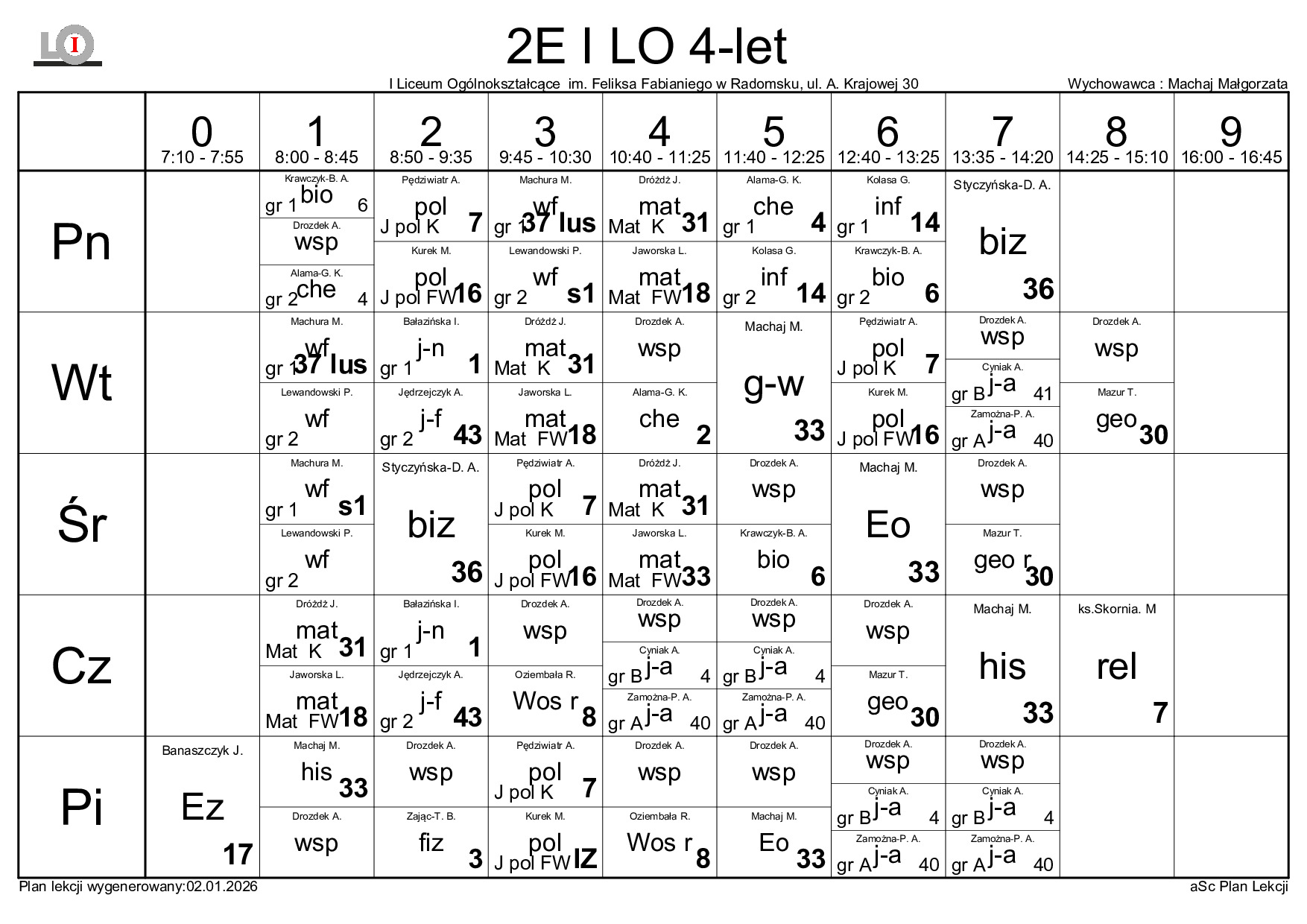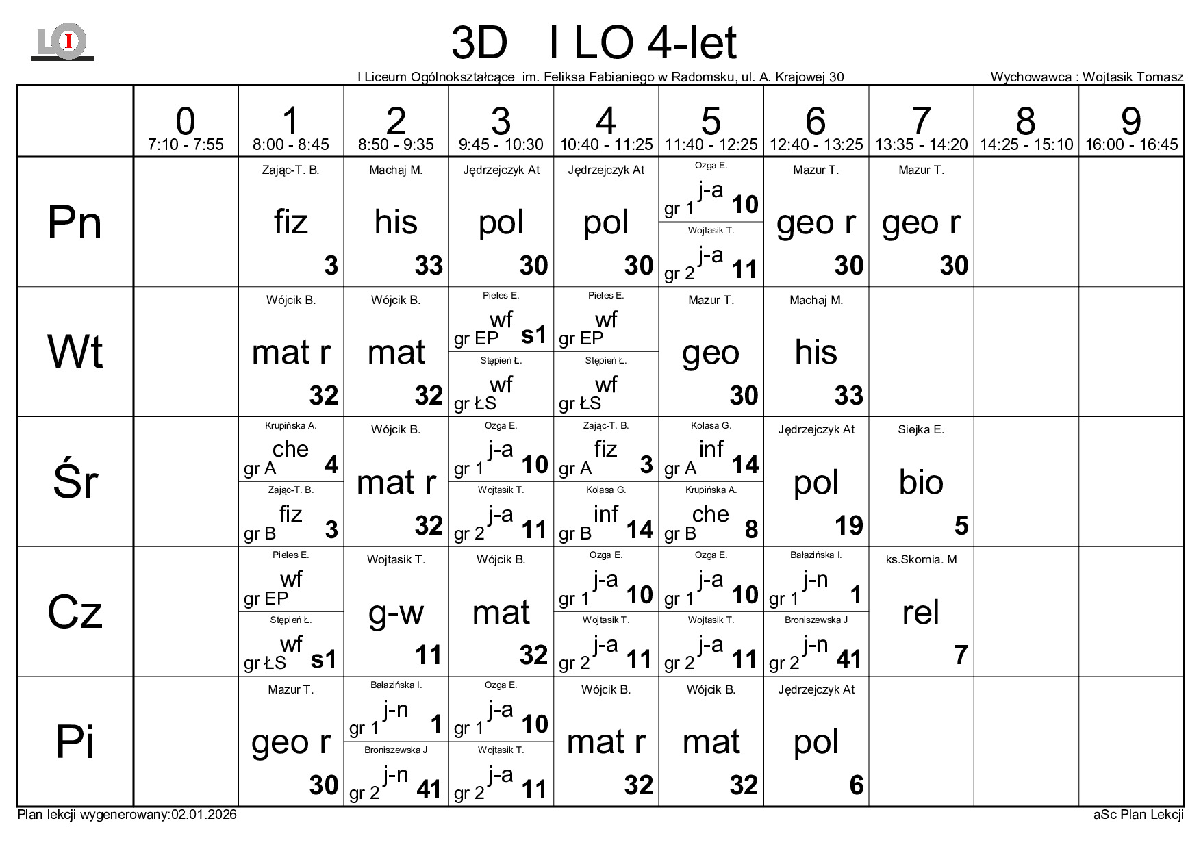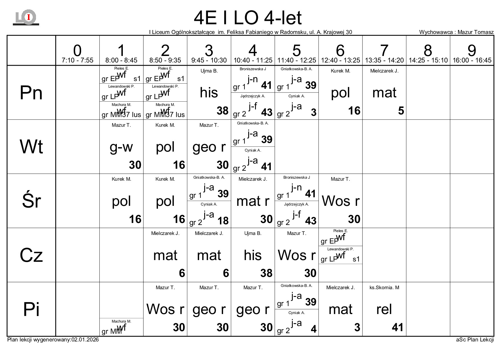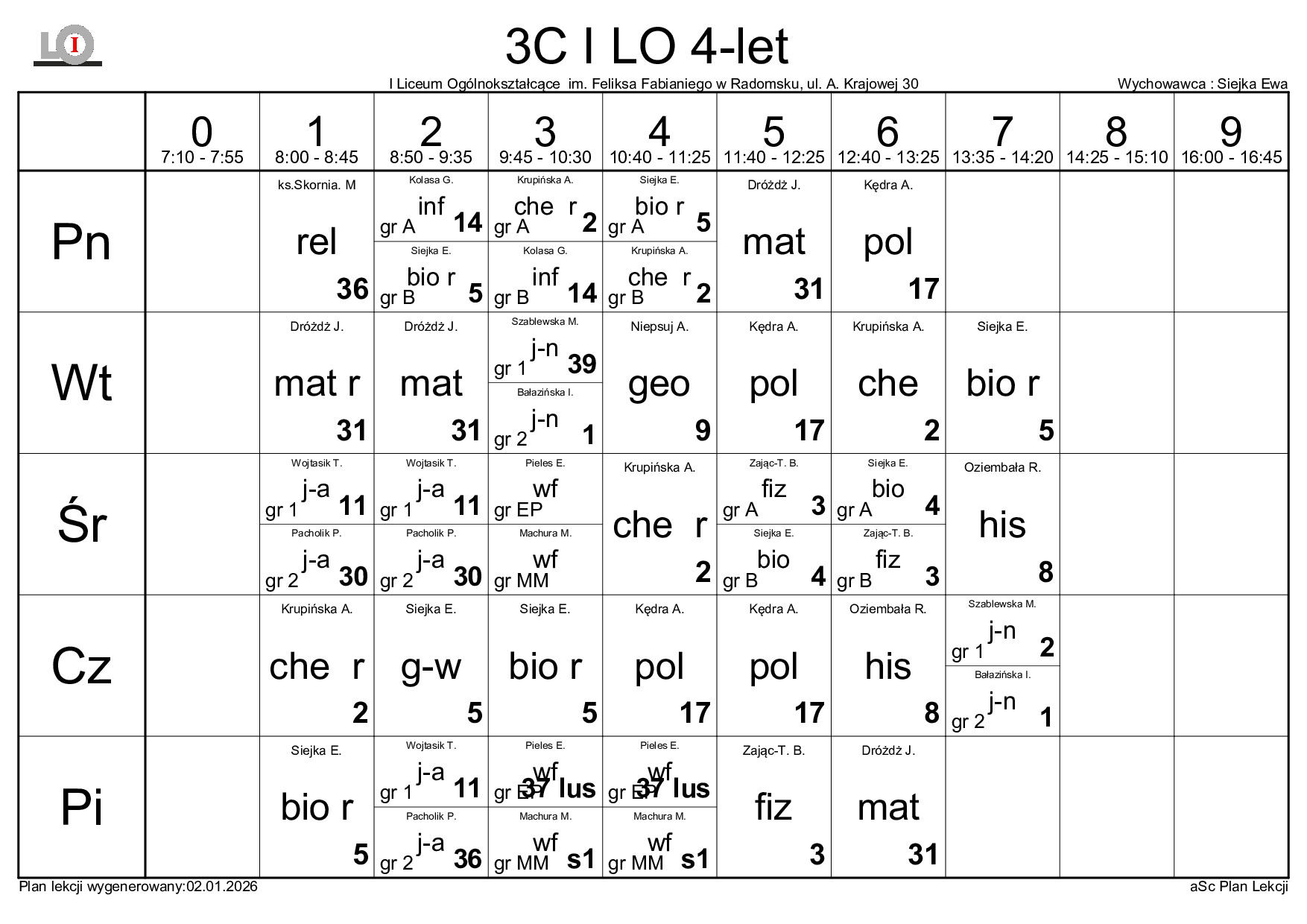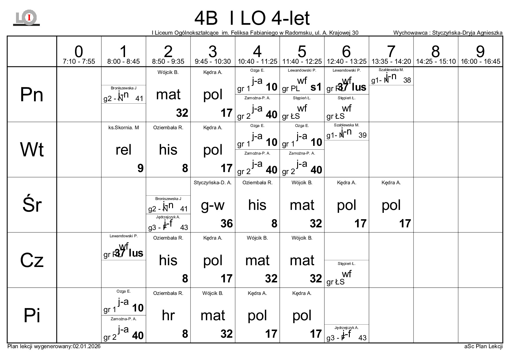 PLAN LEKCJI NA ROK SZKOLNY 2025/2026