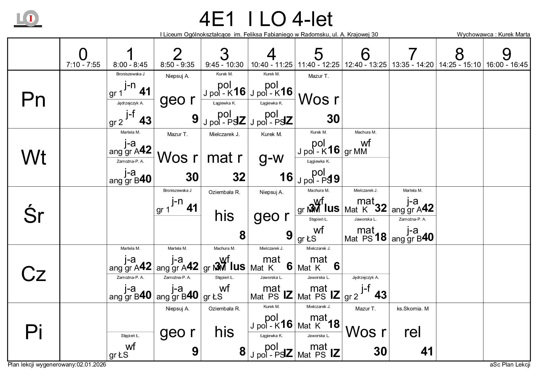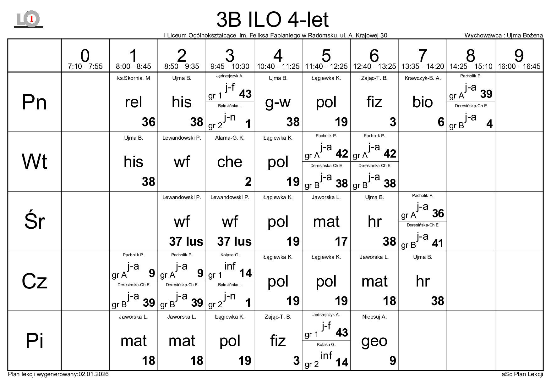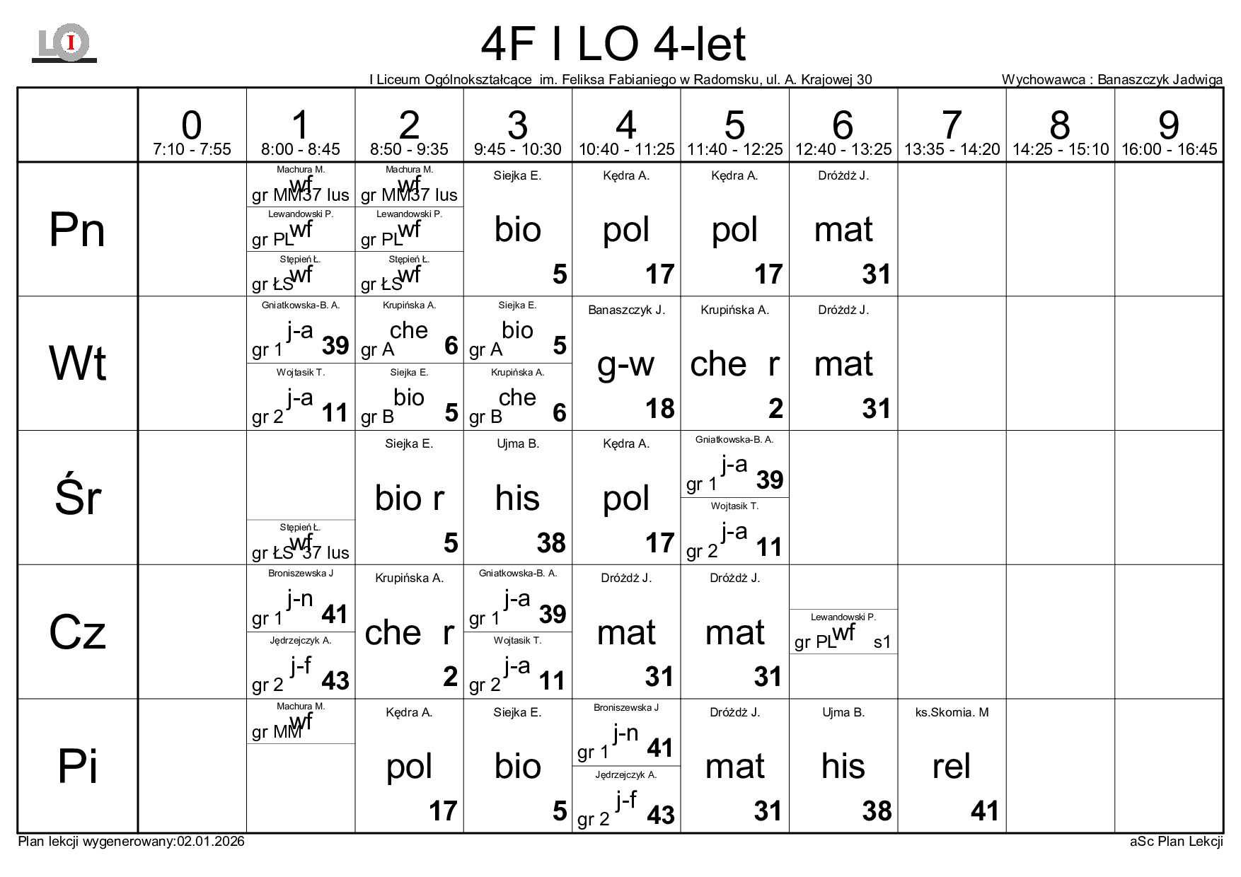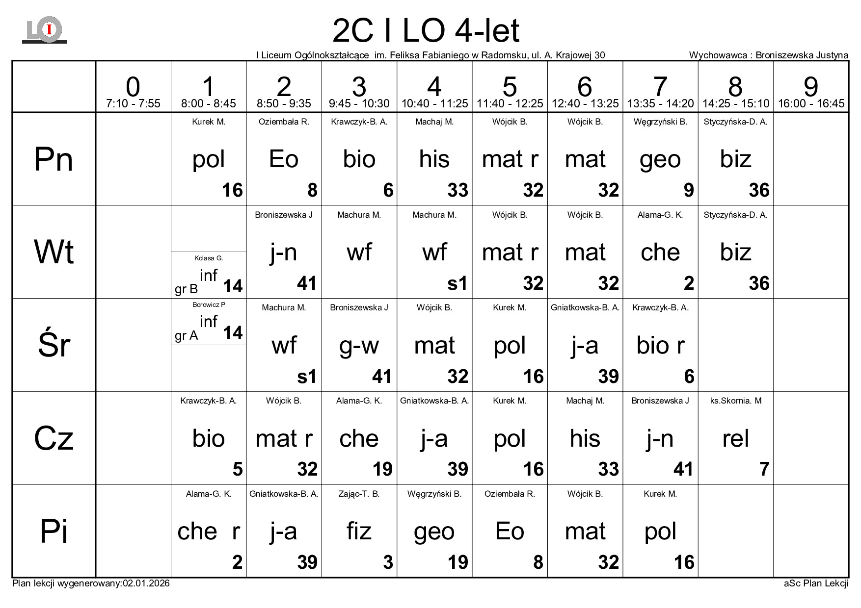 PLAN LEKCJI NA ROK SZKOLNY 2025/2026