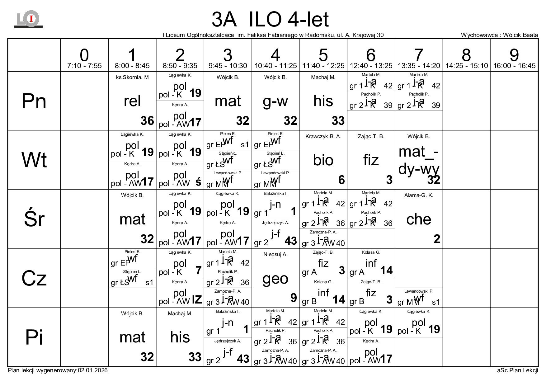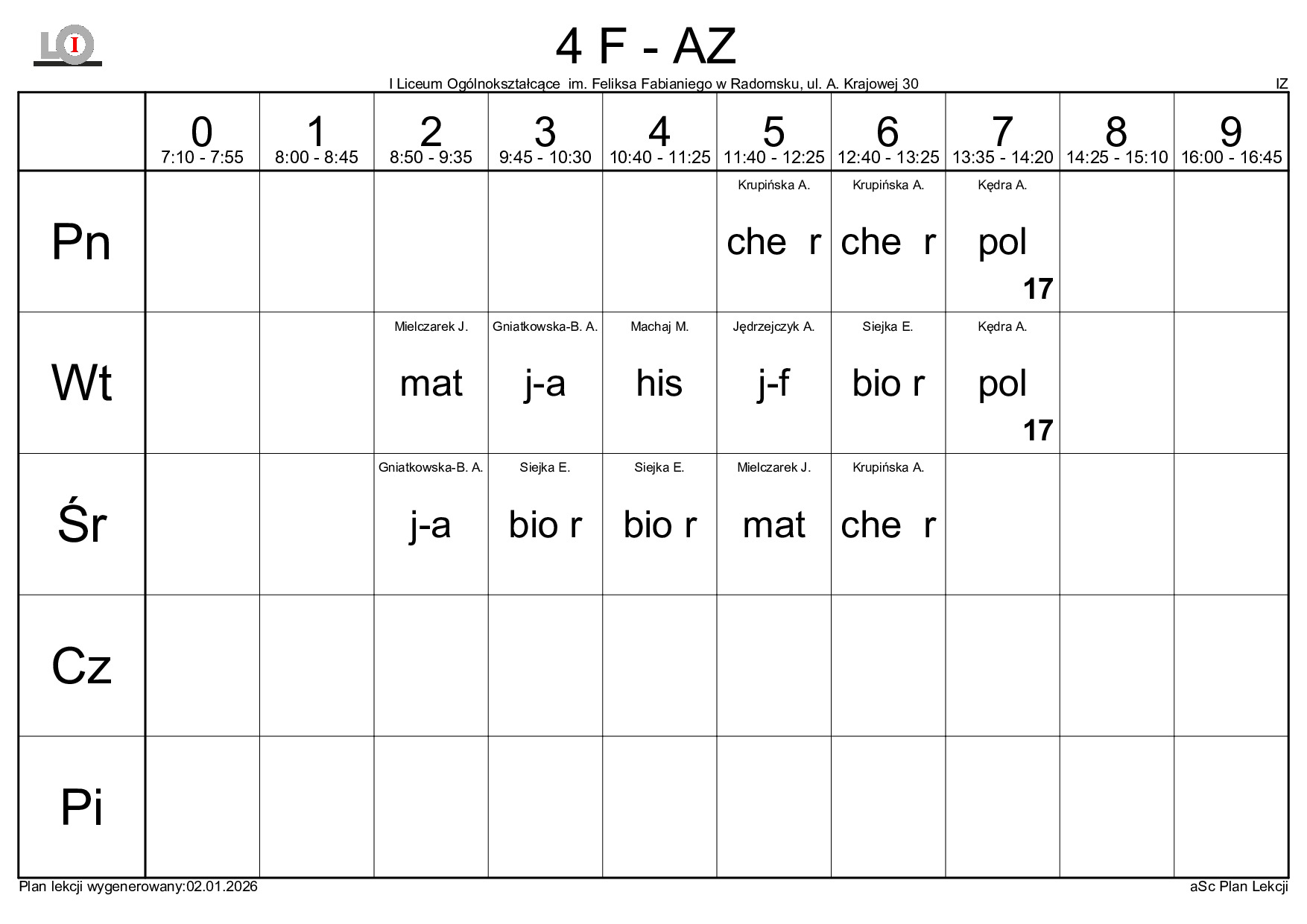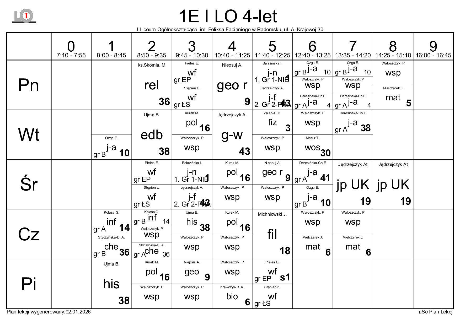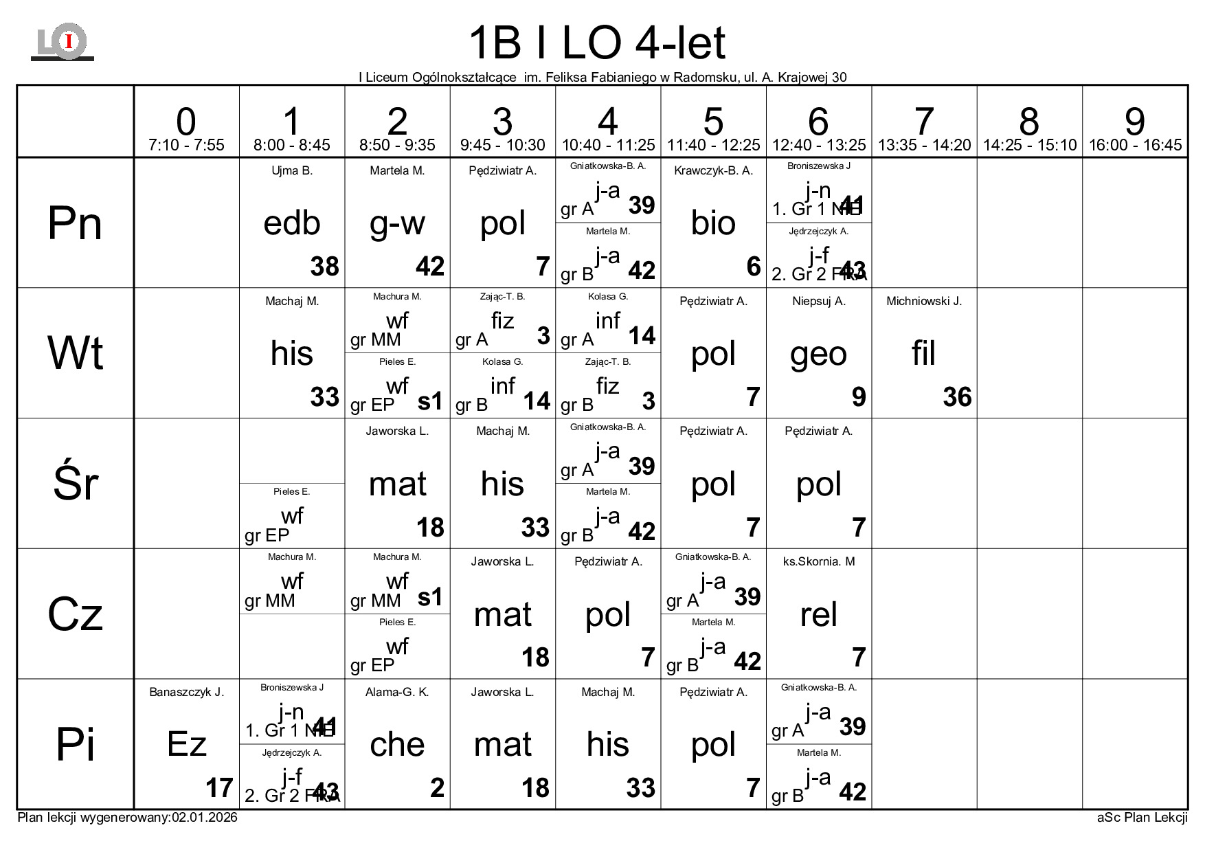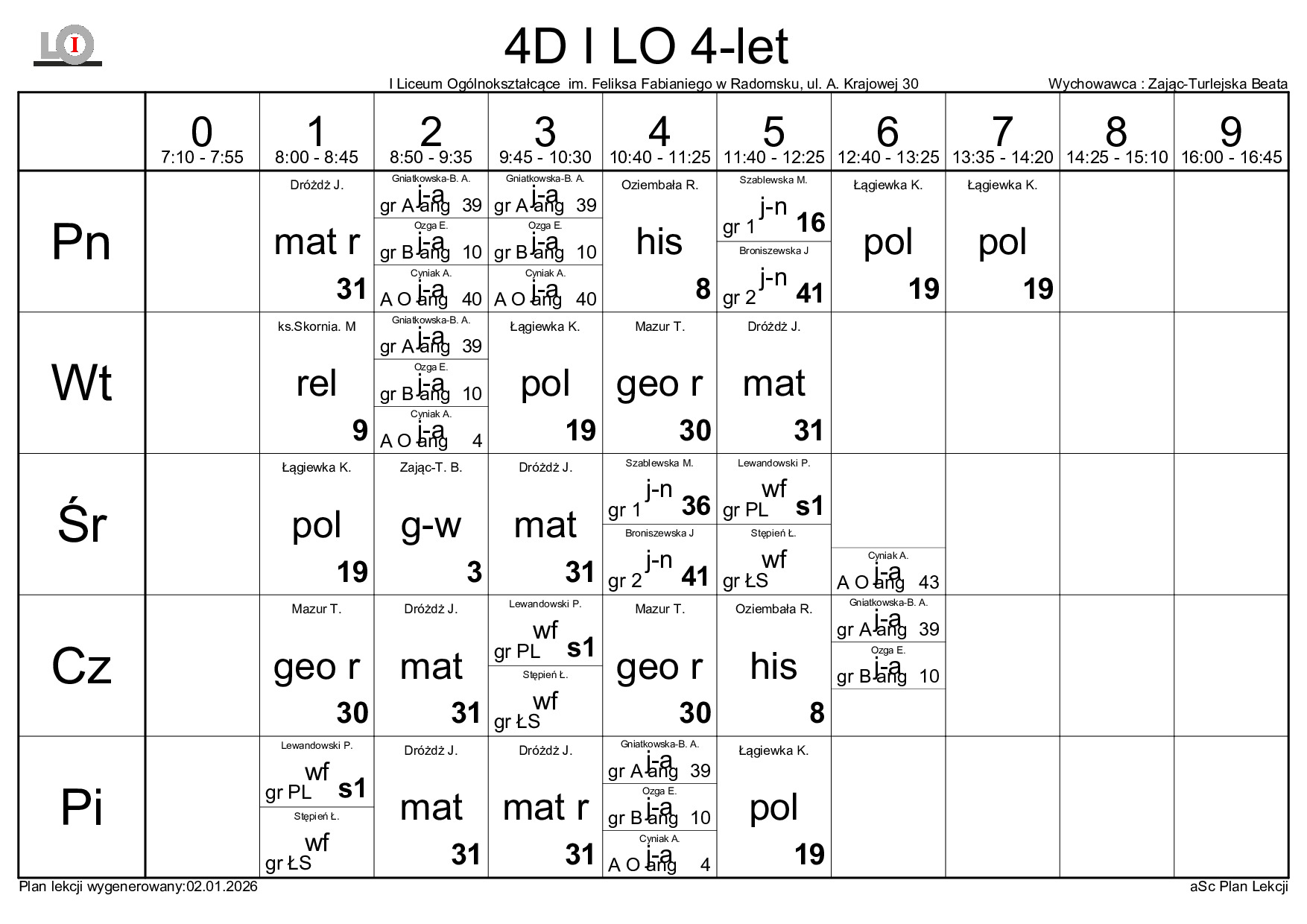 PLAN LEKCJI NA ROK SZKOLNY 2025/2026