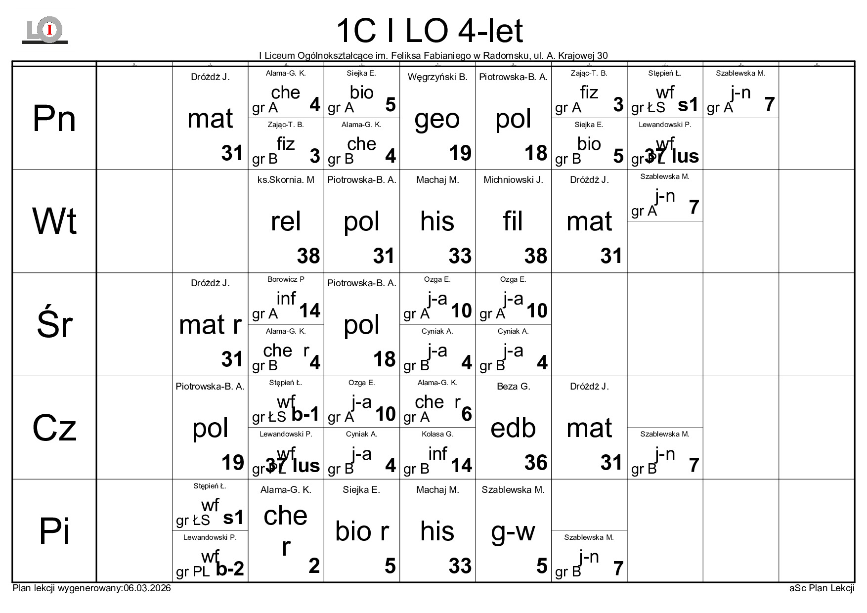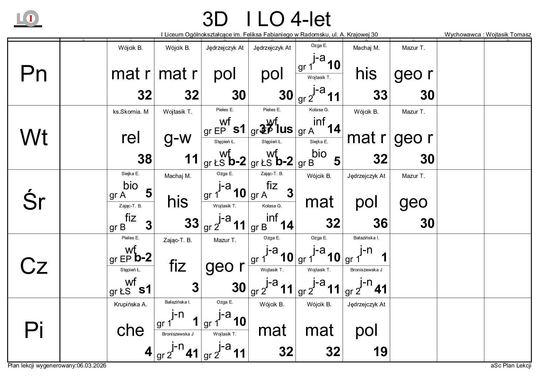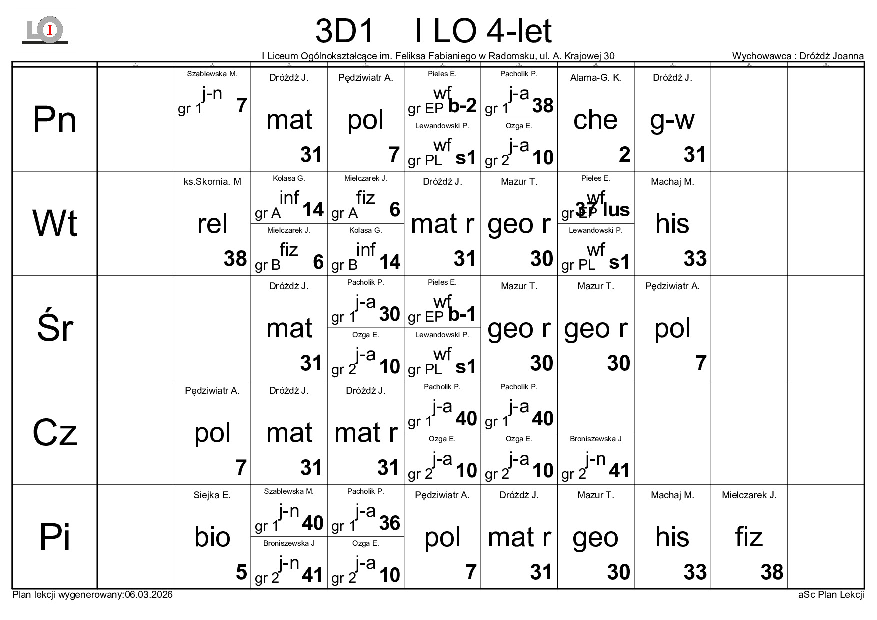 PLAN LEKCJI NA ROK SZKOLNY 2025/2026
