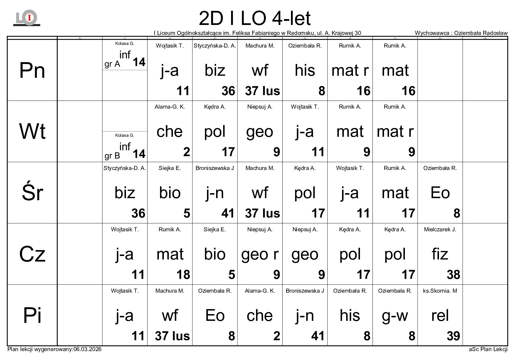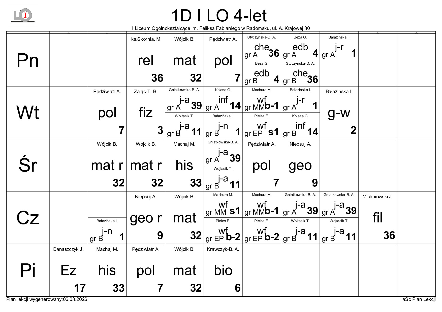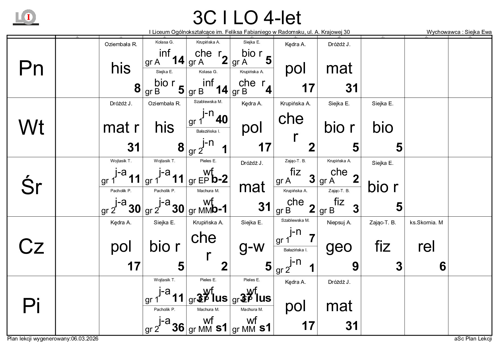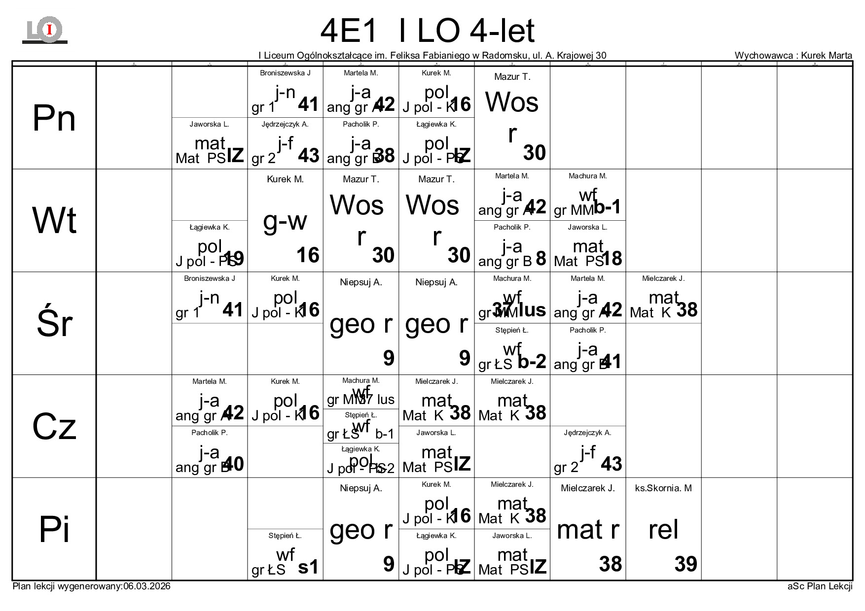 PLAN LEKCJI NA ROK SZKOLNY 2025/2026