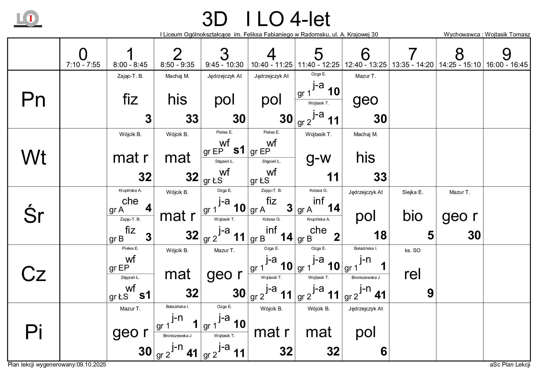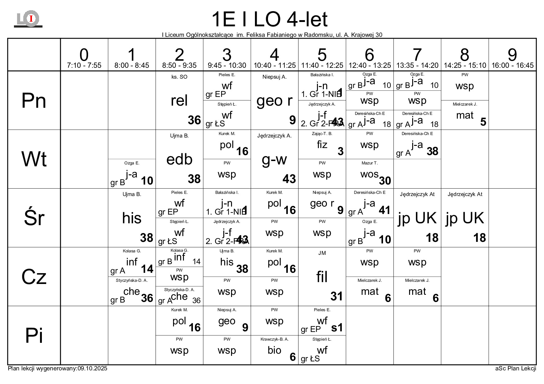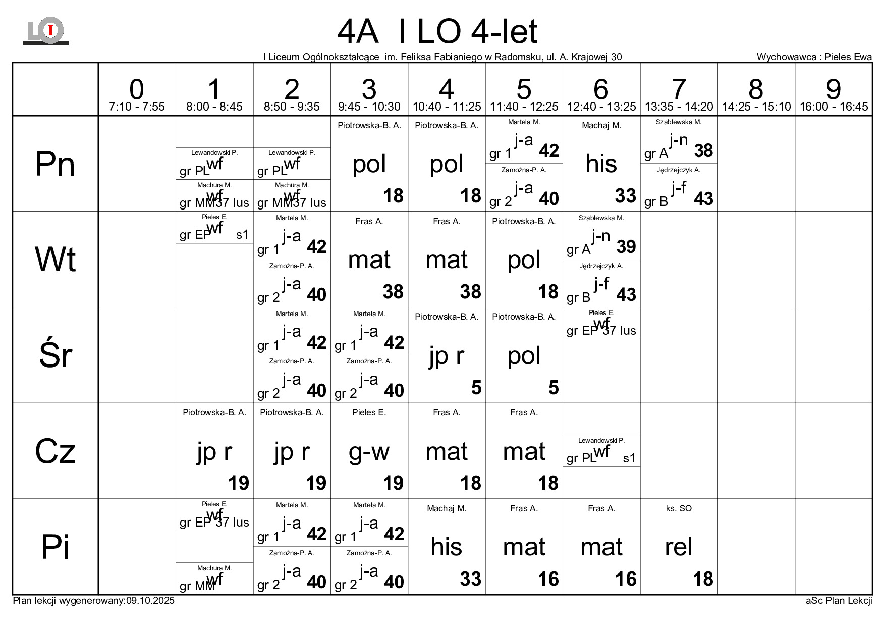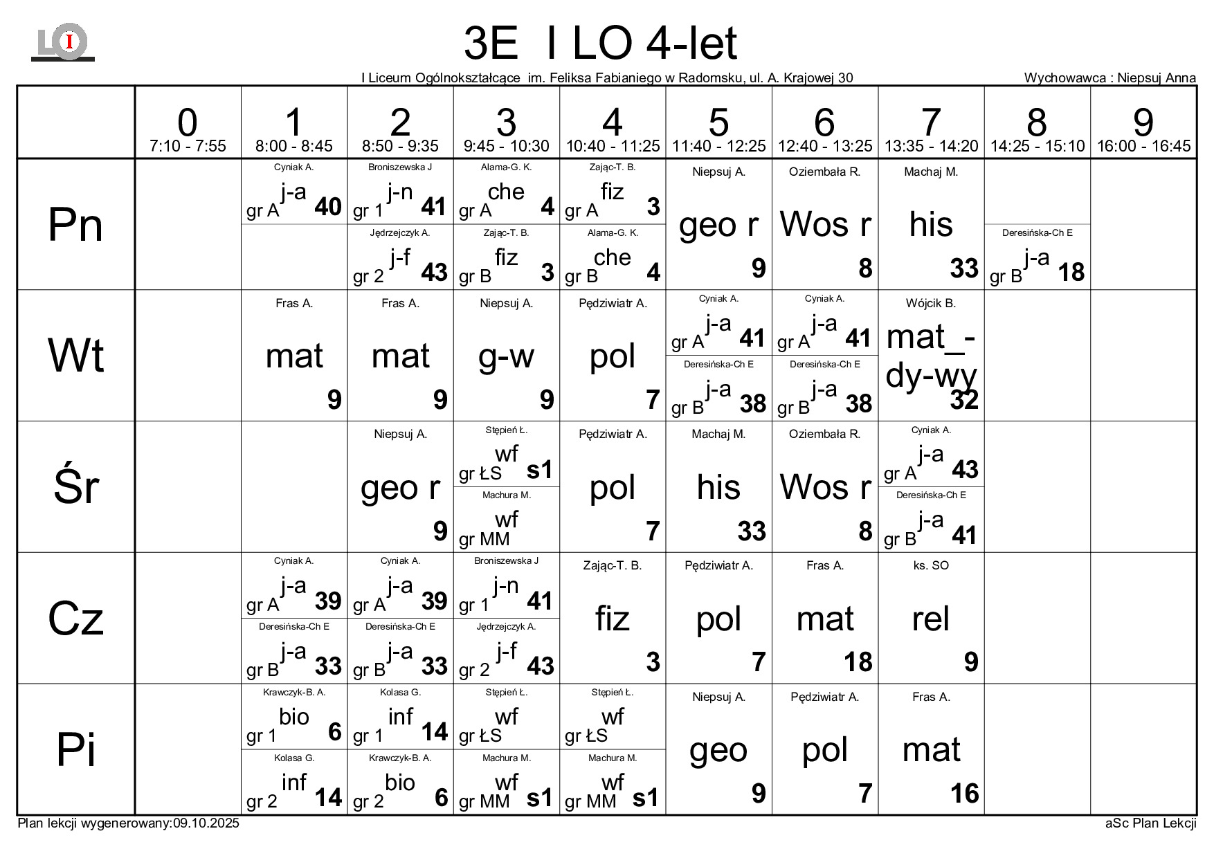 PLAN LEKCJI NA ROK SZKOLNY 2025/2026