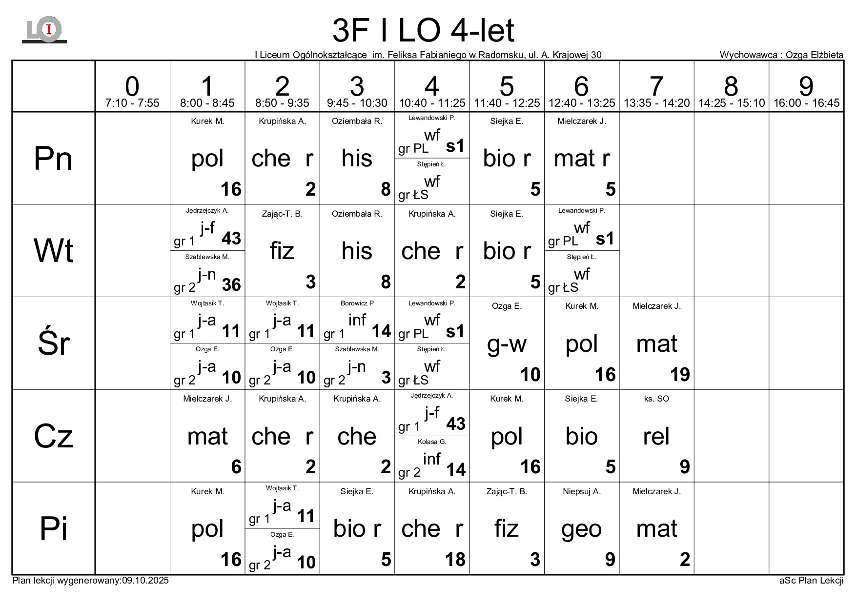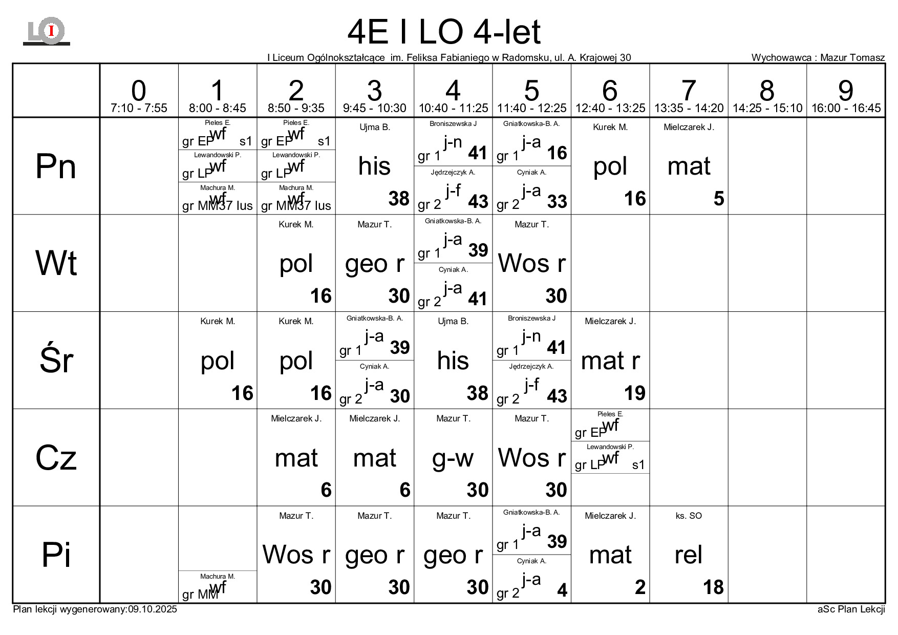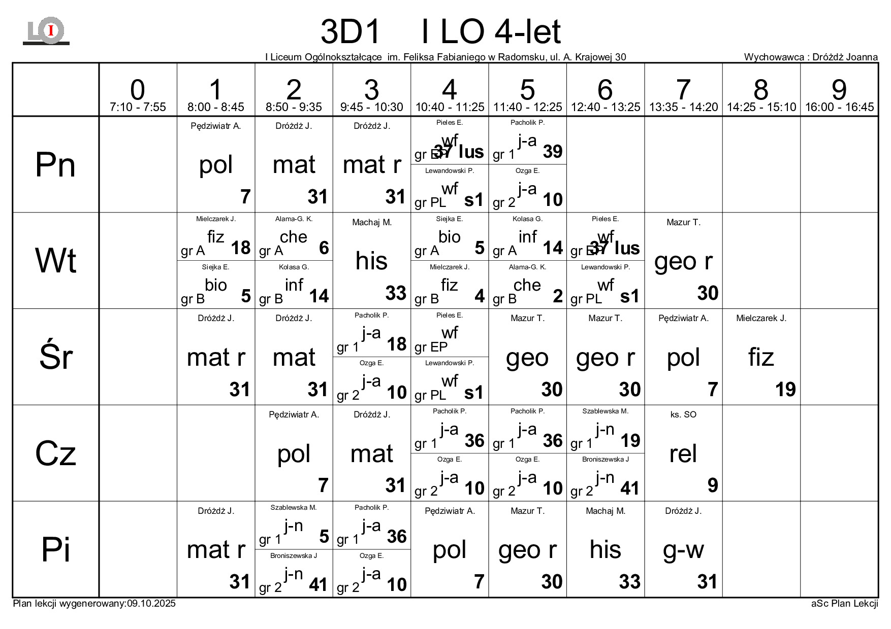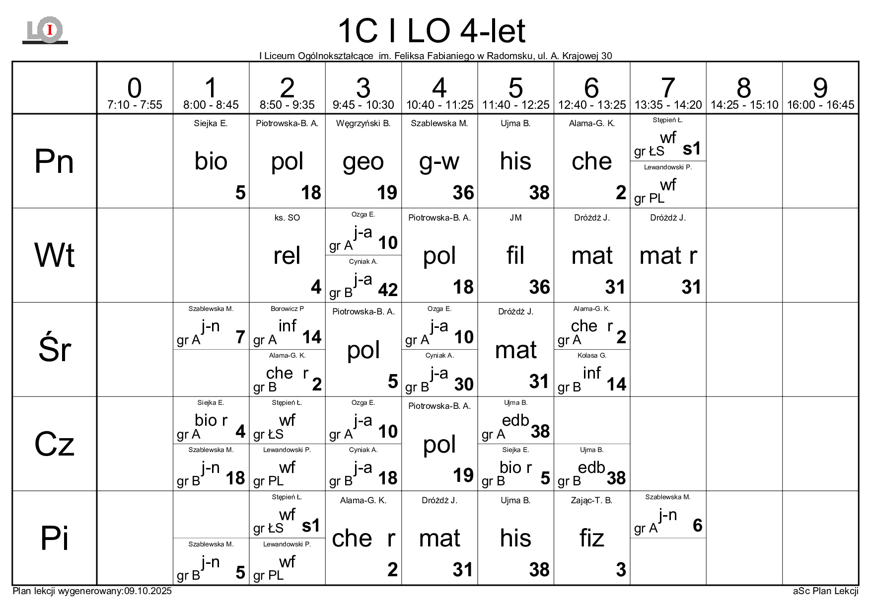 PLAN LEKCJI NA ROK SZKOLNY 2025/2026