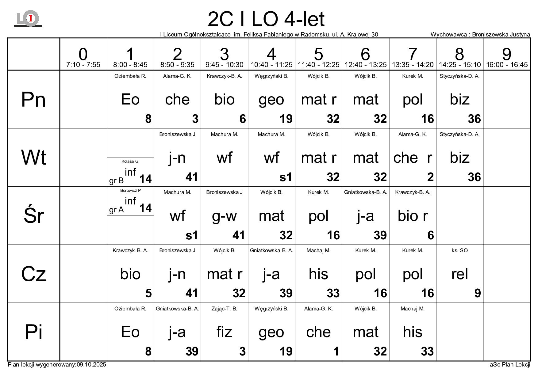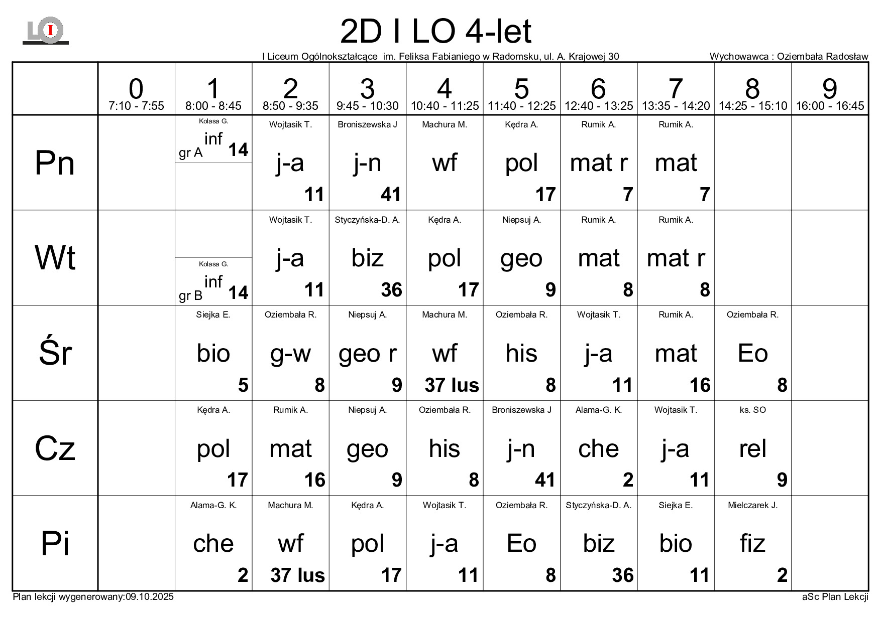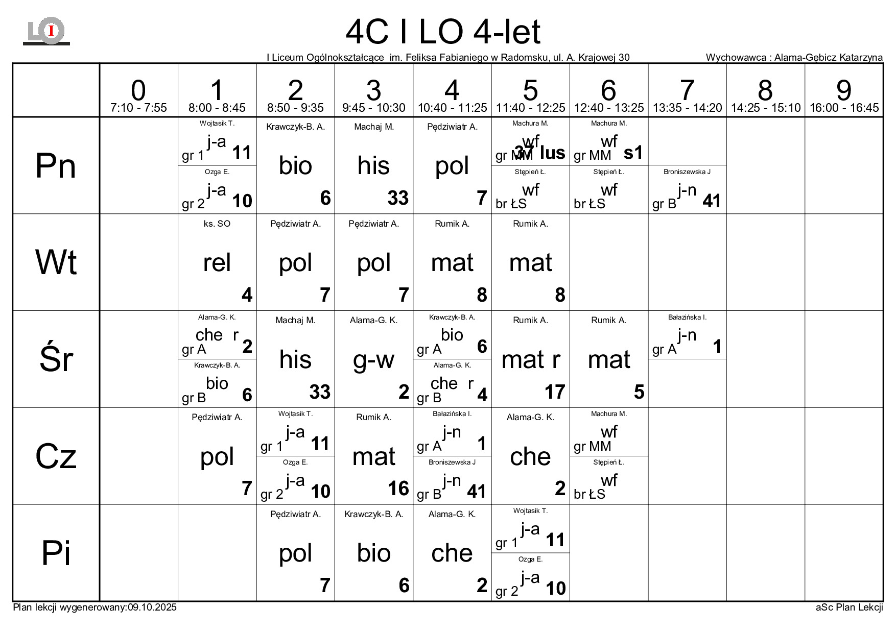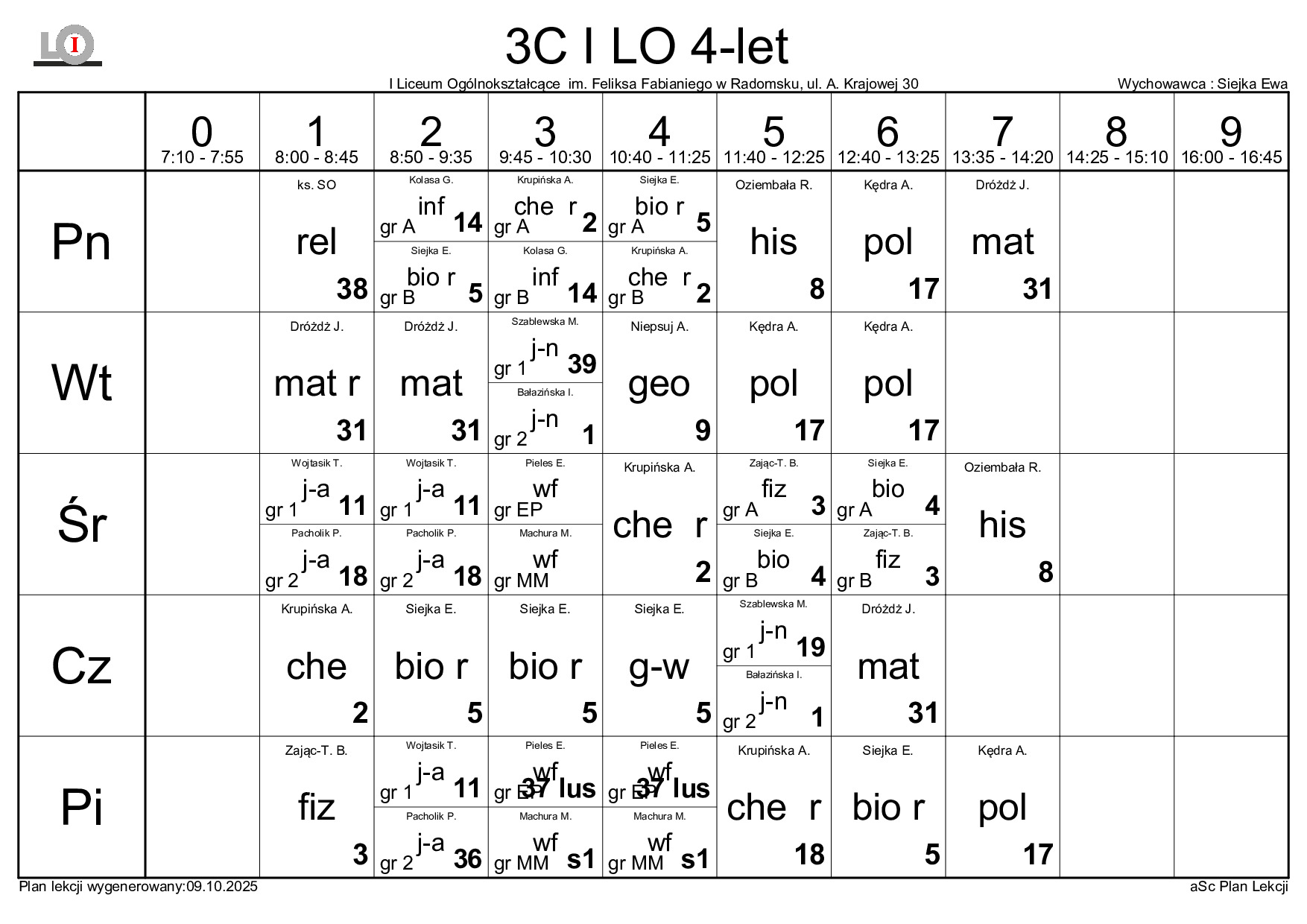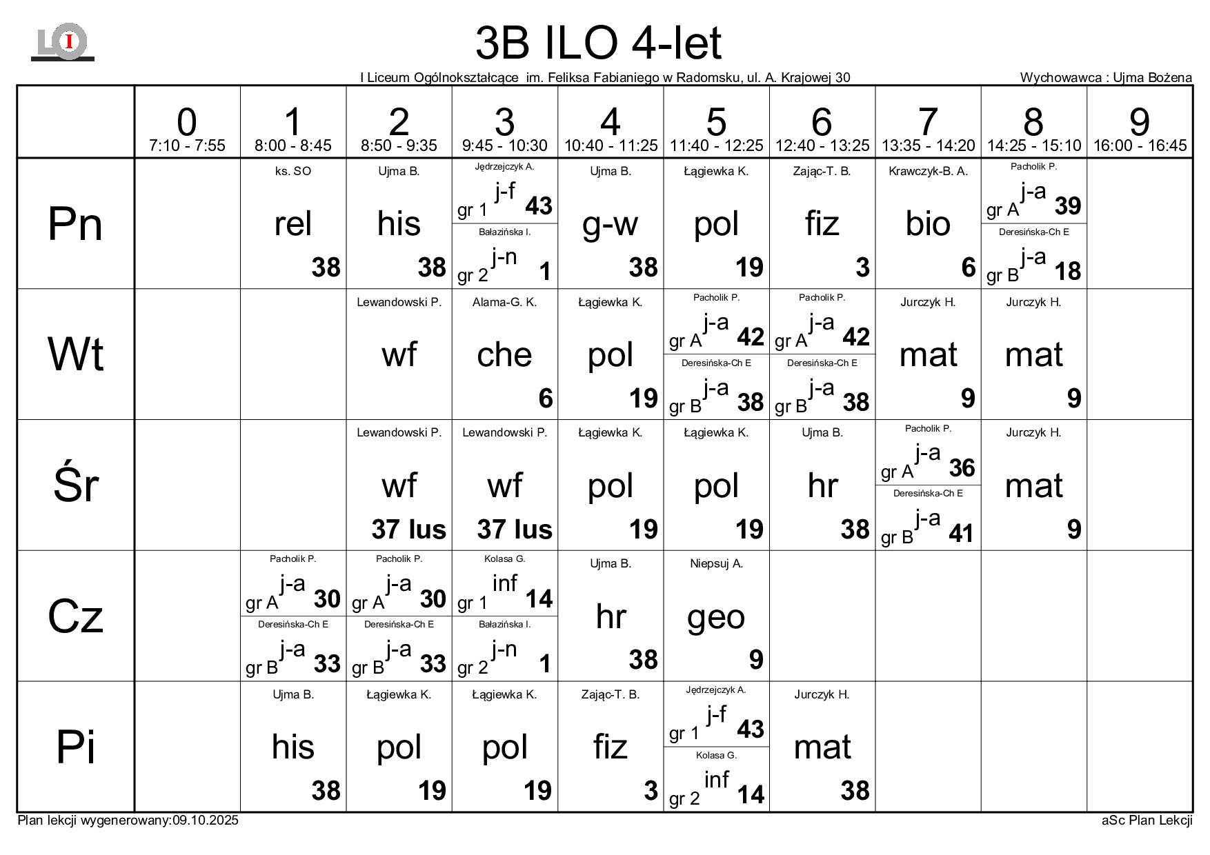 PLAN LEKCJI NA ROK SZKOLNY 2025/2026