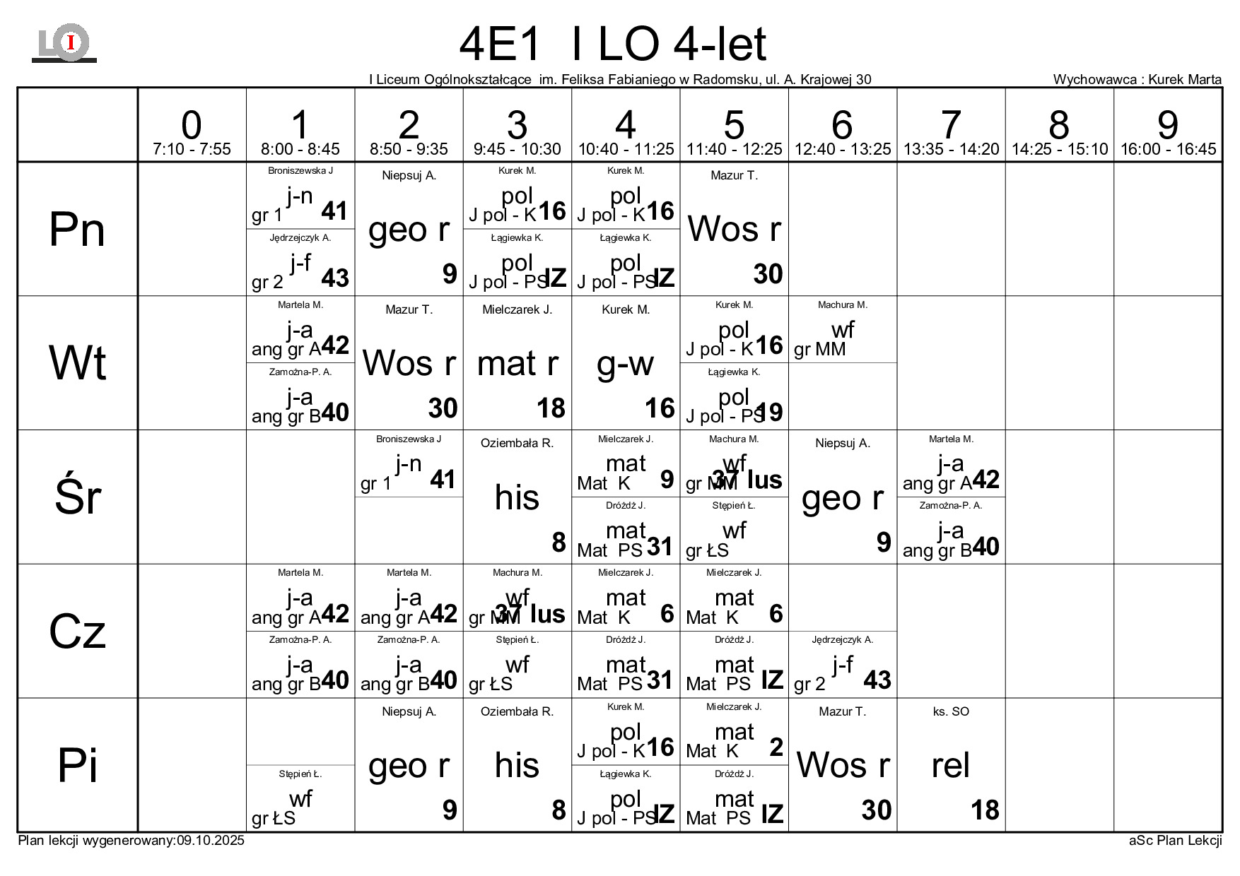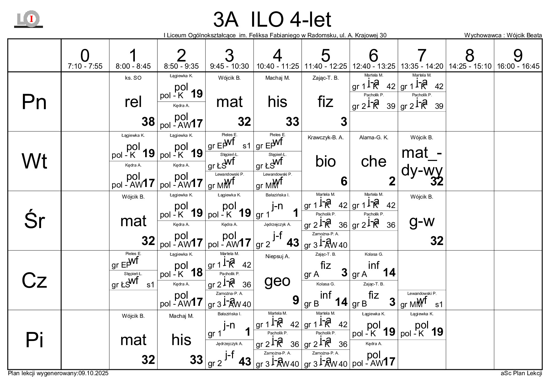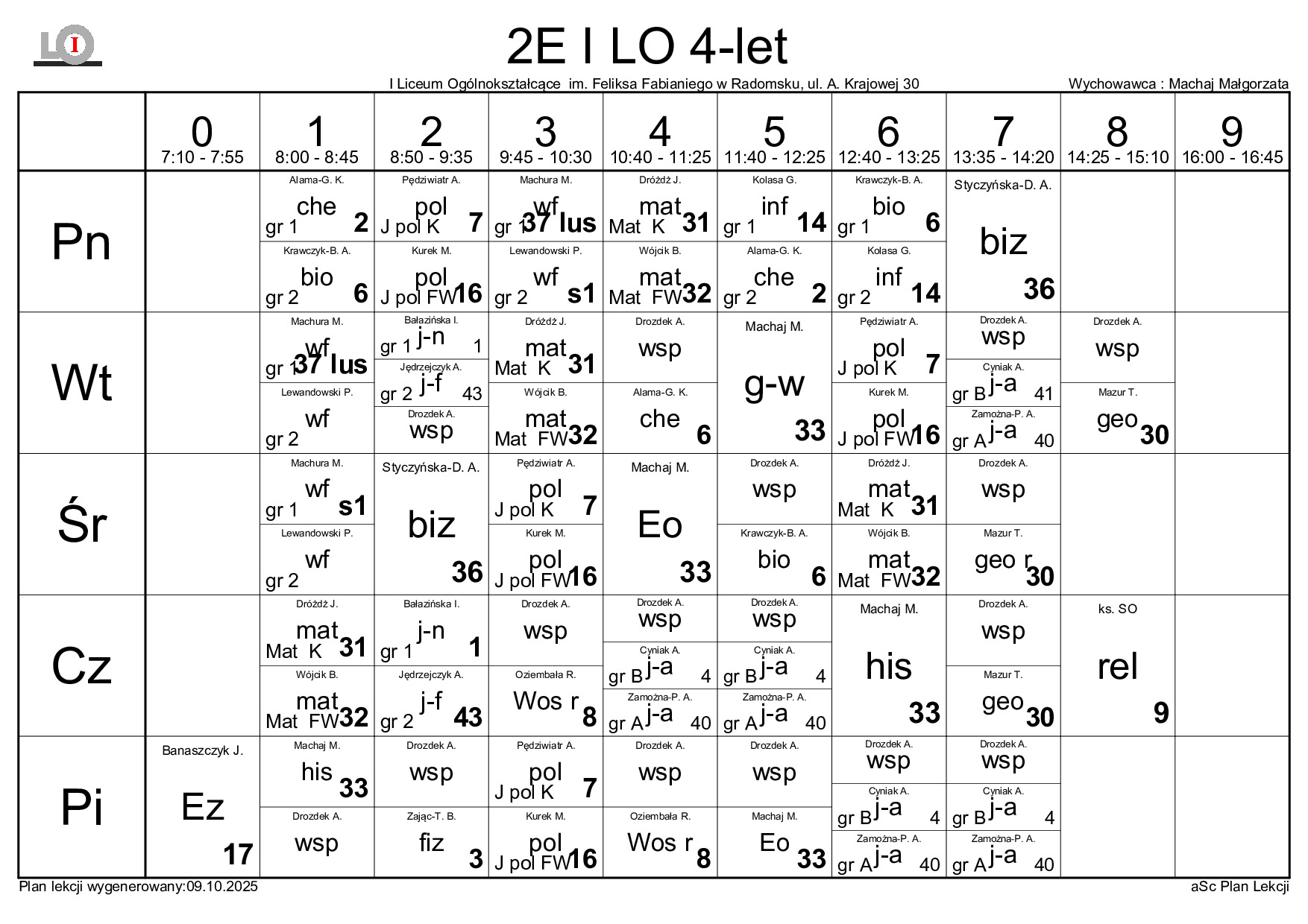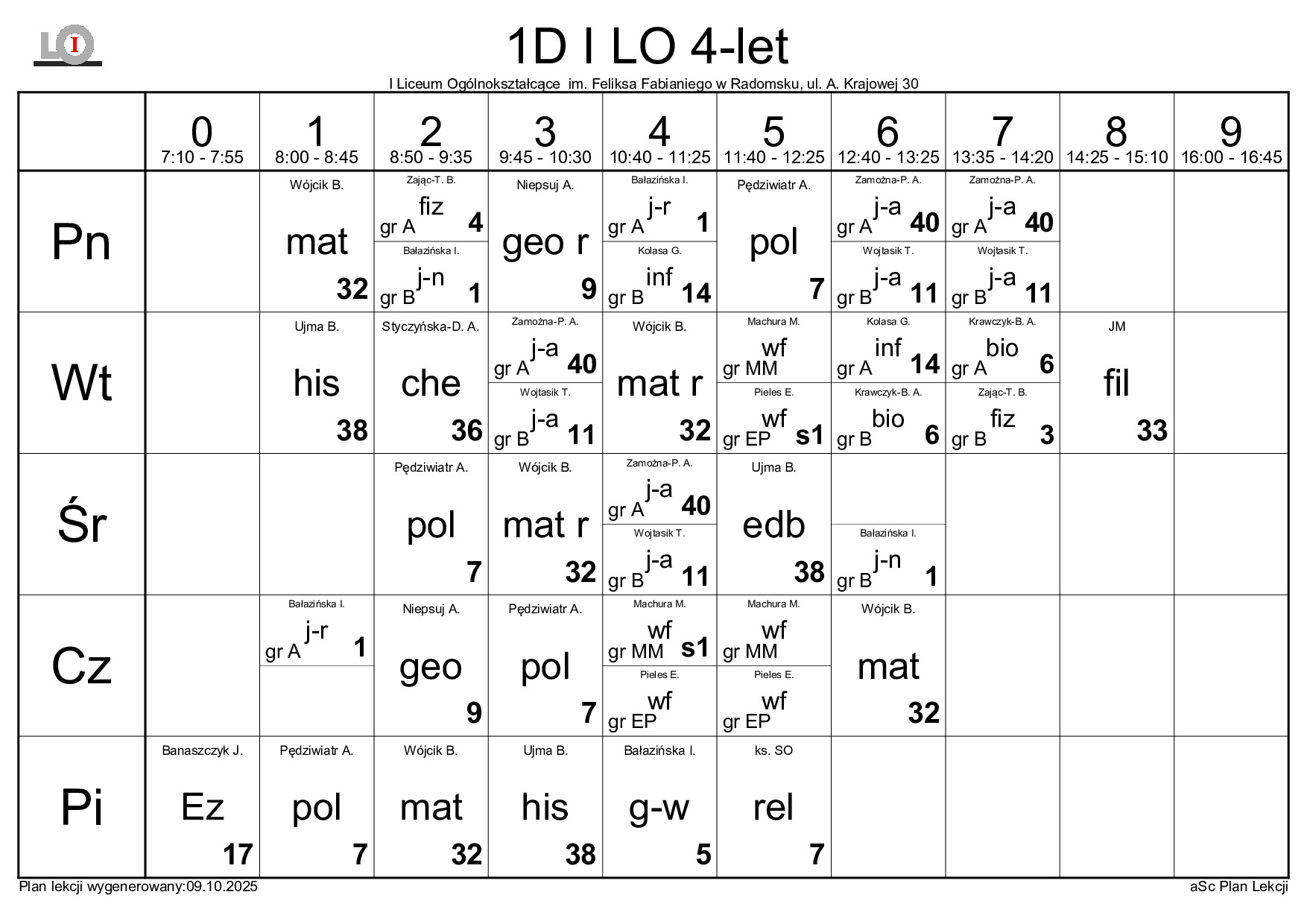 PLAN LEKCJI NA ROK SZKOLNY 2025/2026
