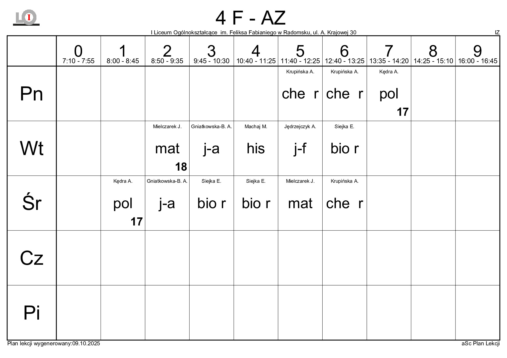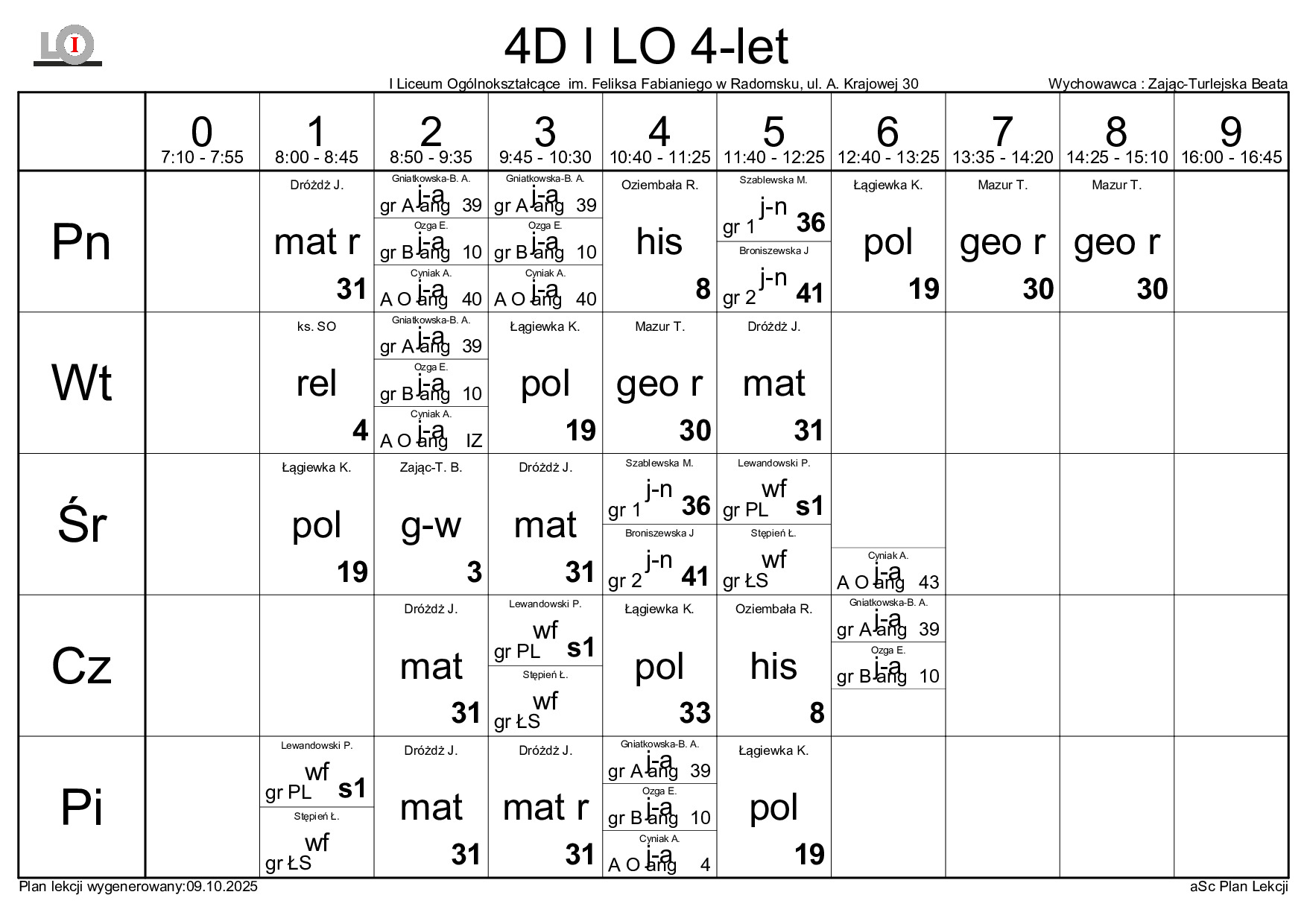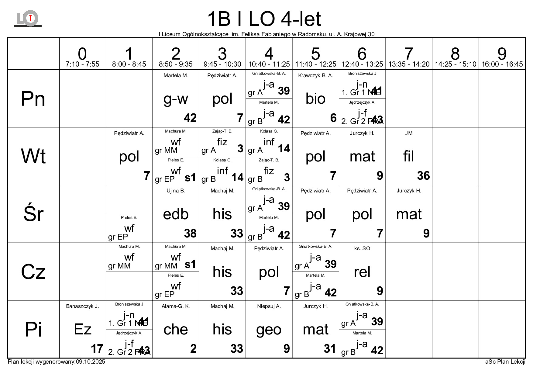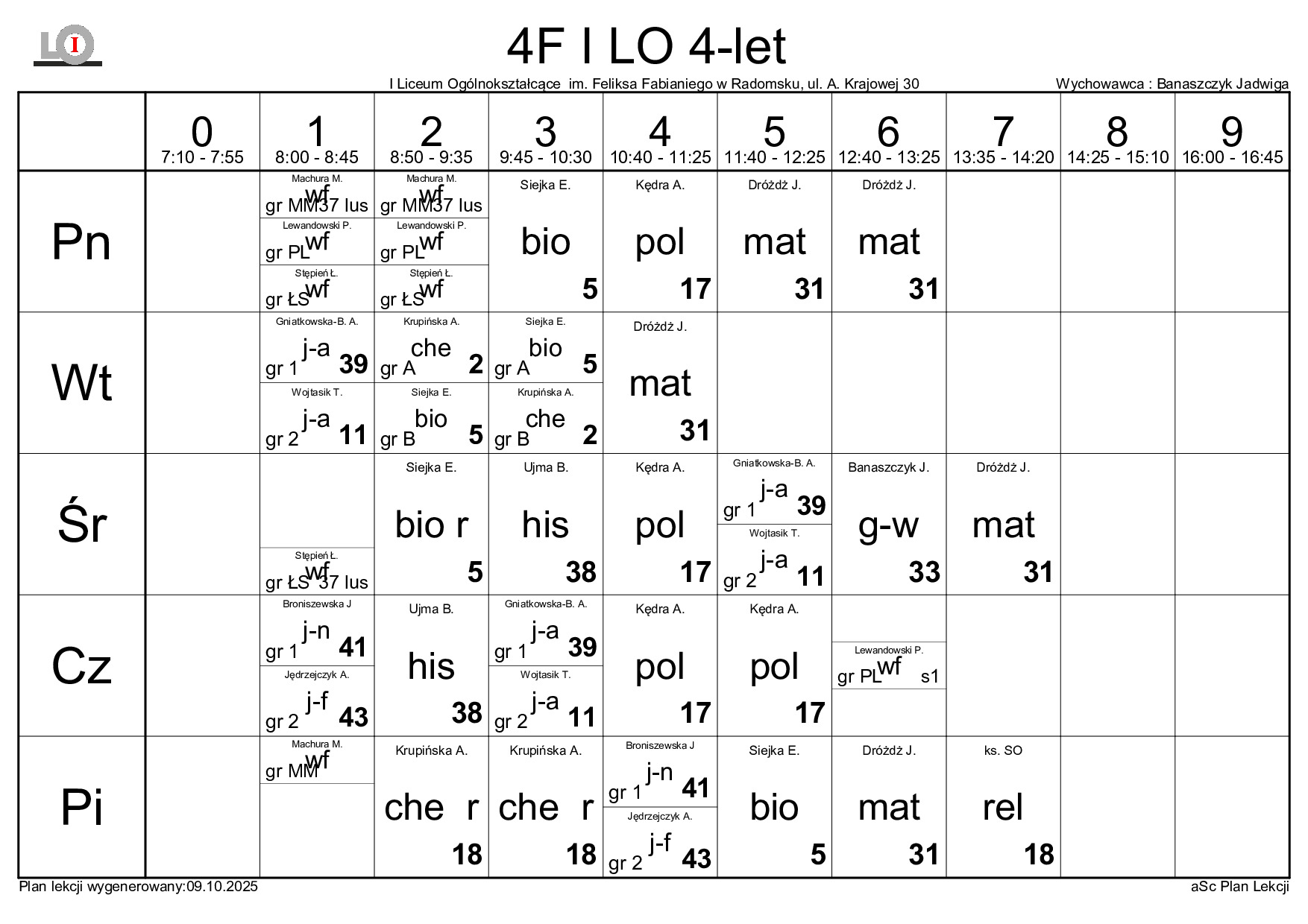 PLAN LEKCJI NA ROK SZKOLNY 2025/2026