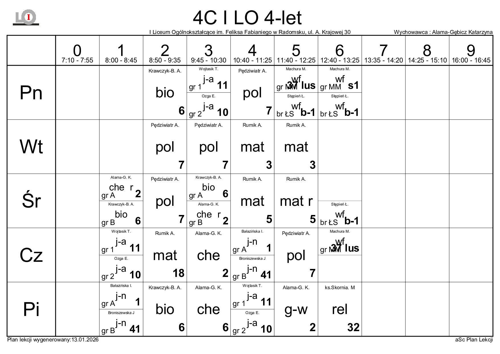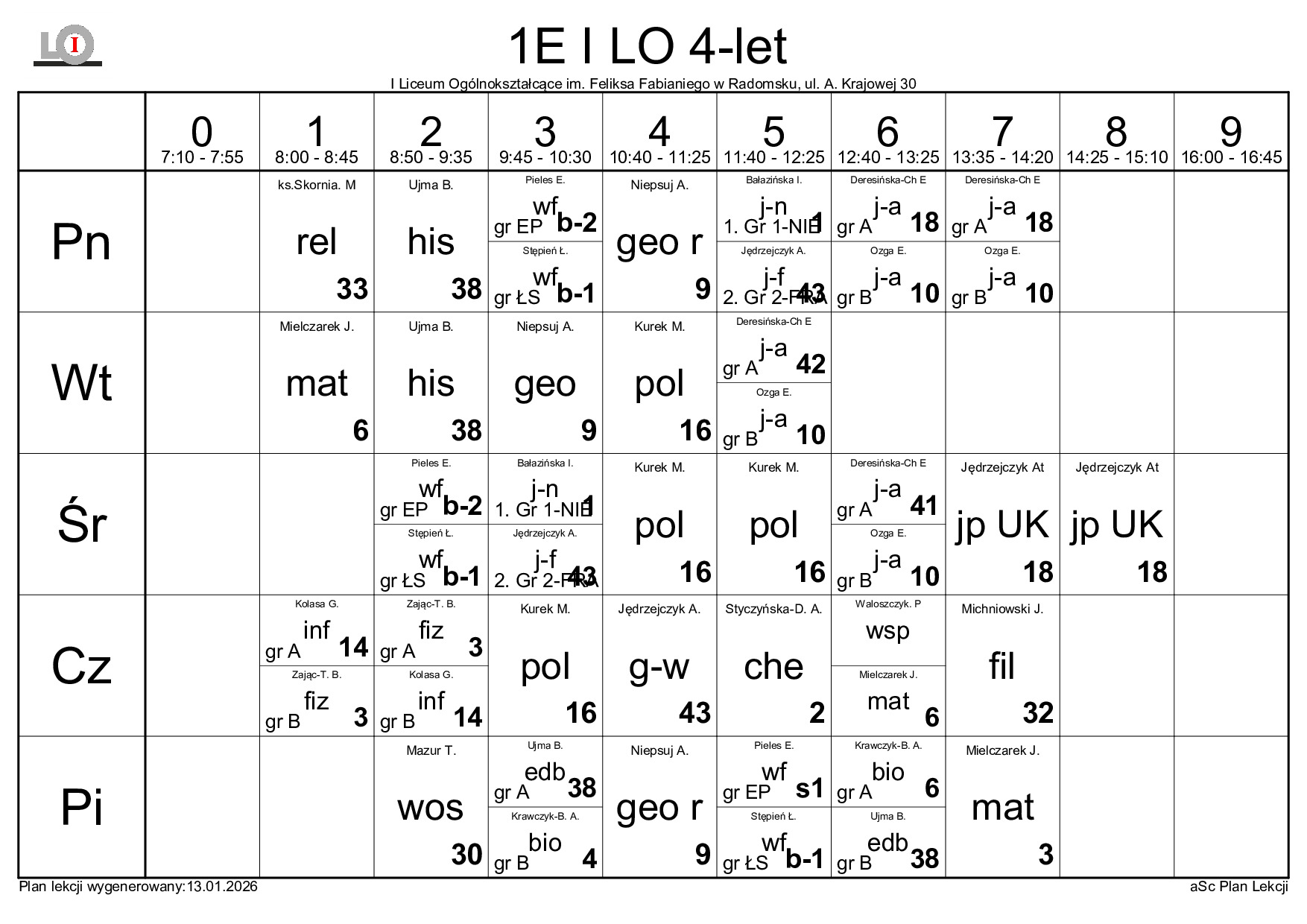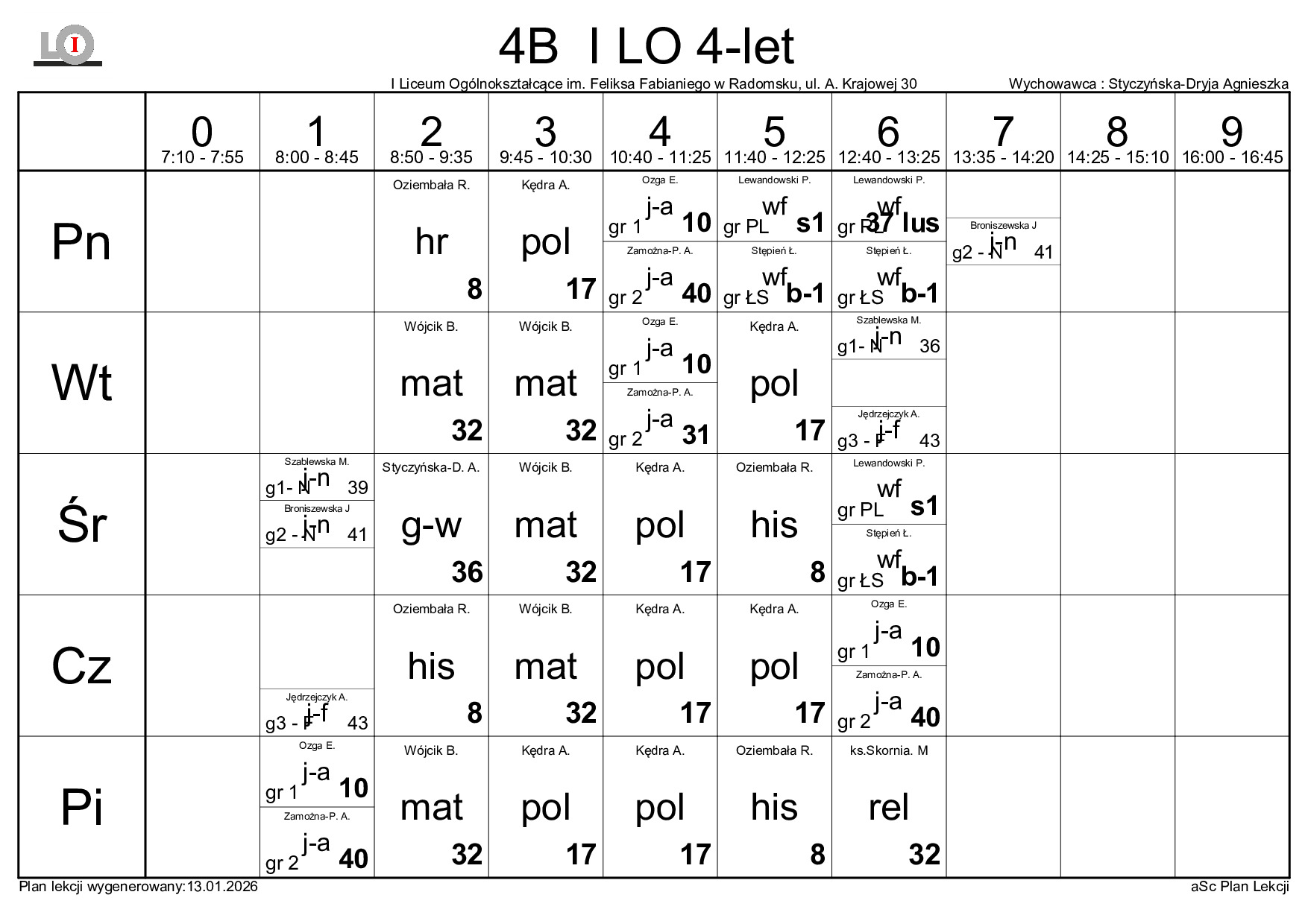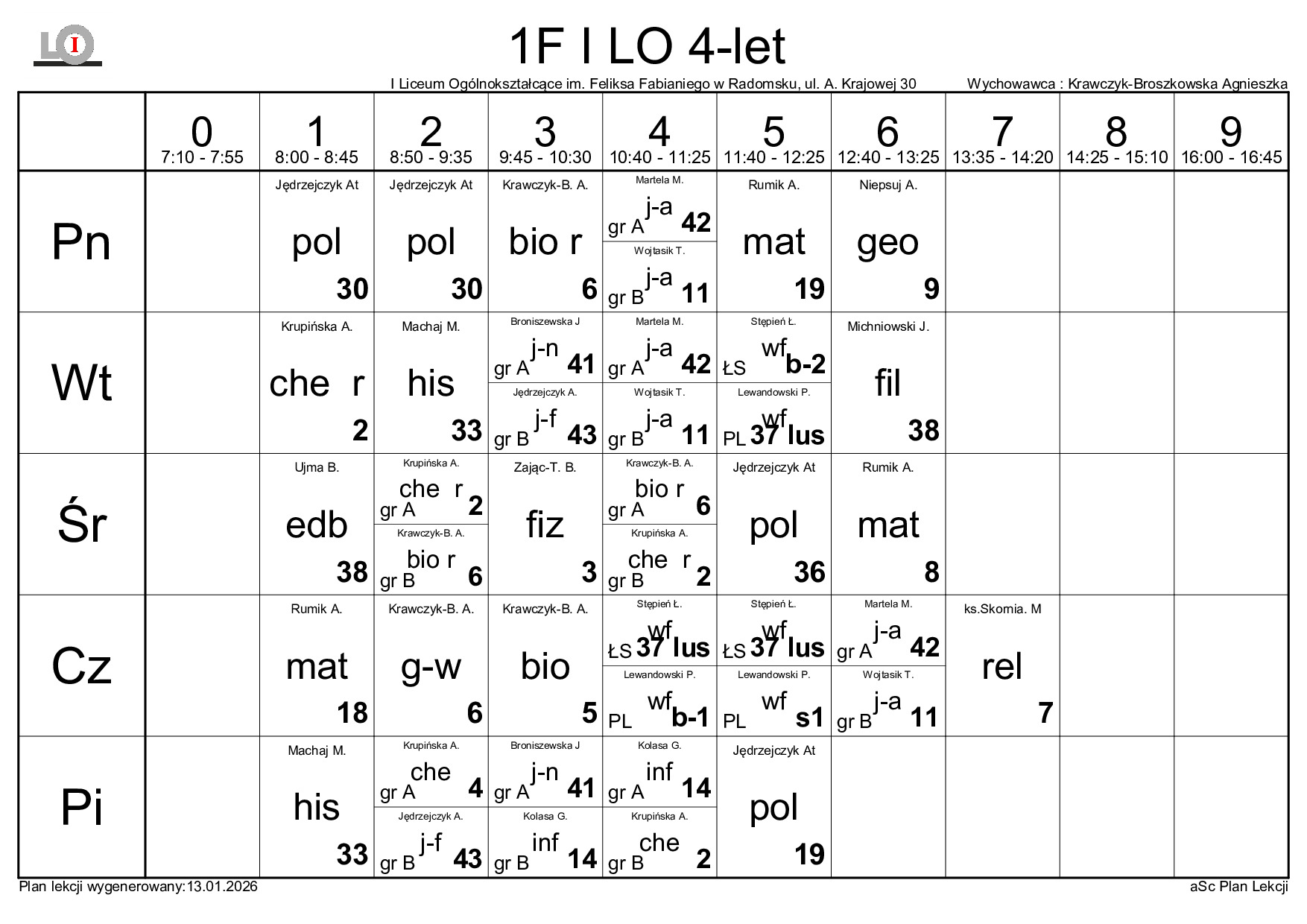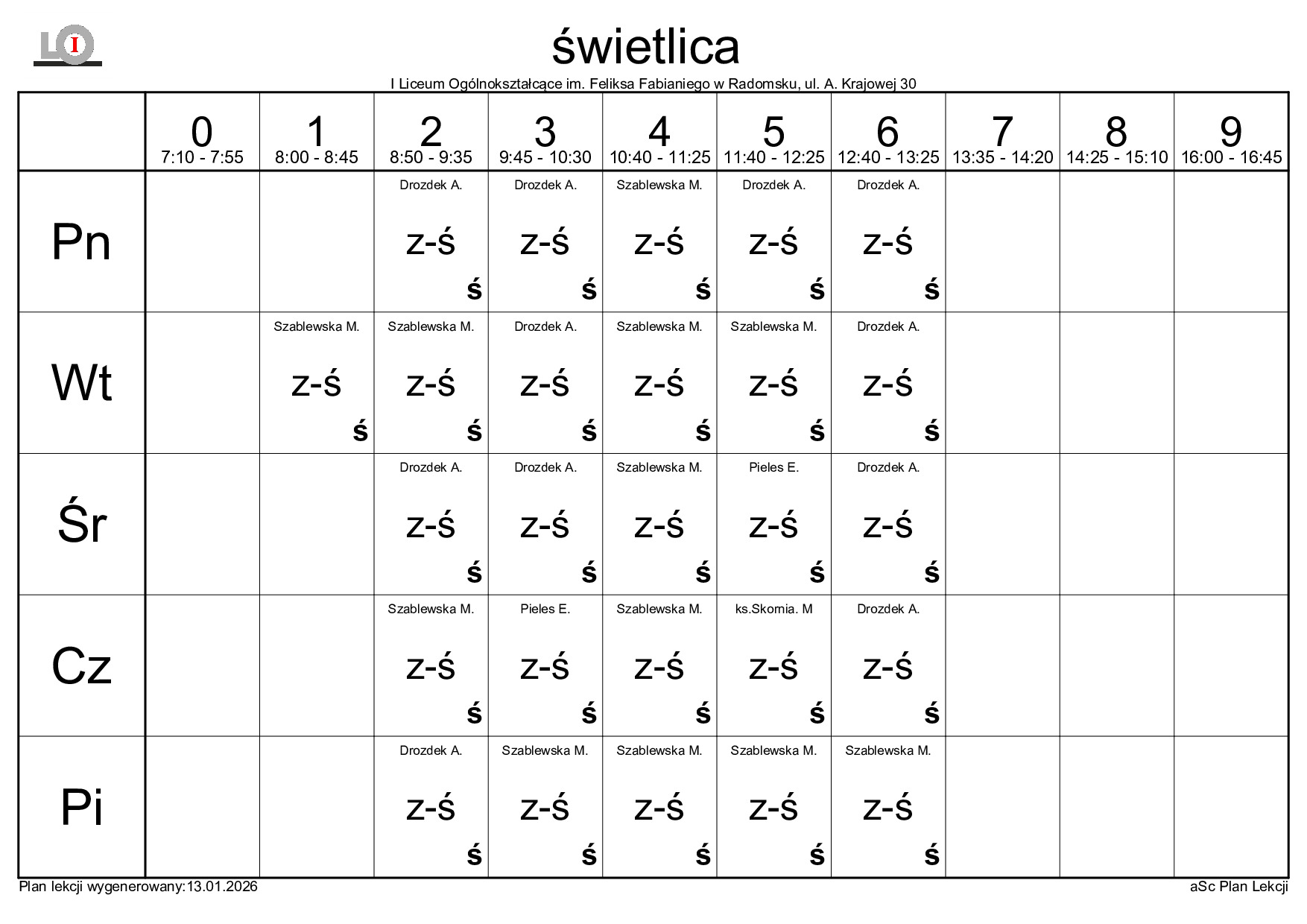 PLAN LEKCJI NA ROK SZKOLNY 2025/2026