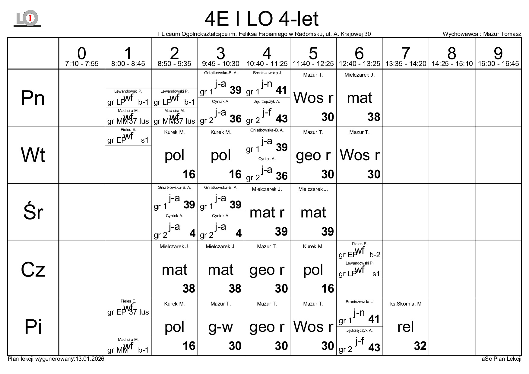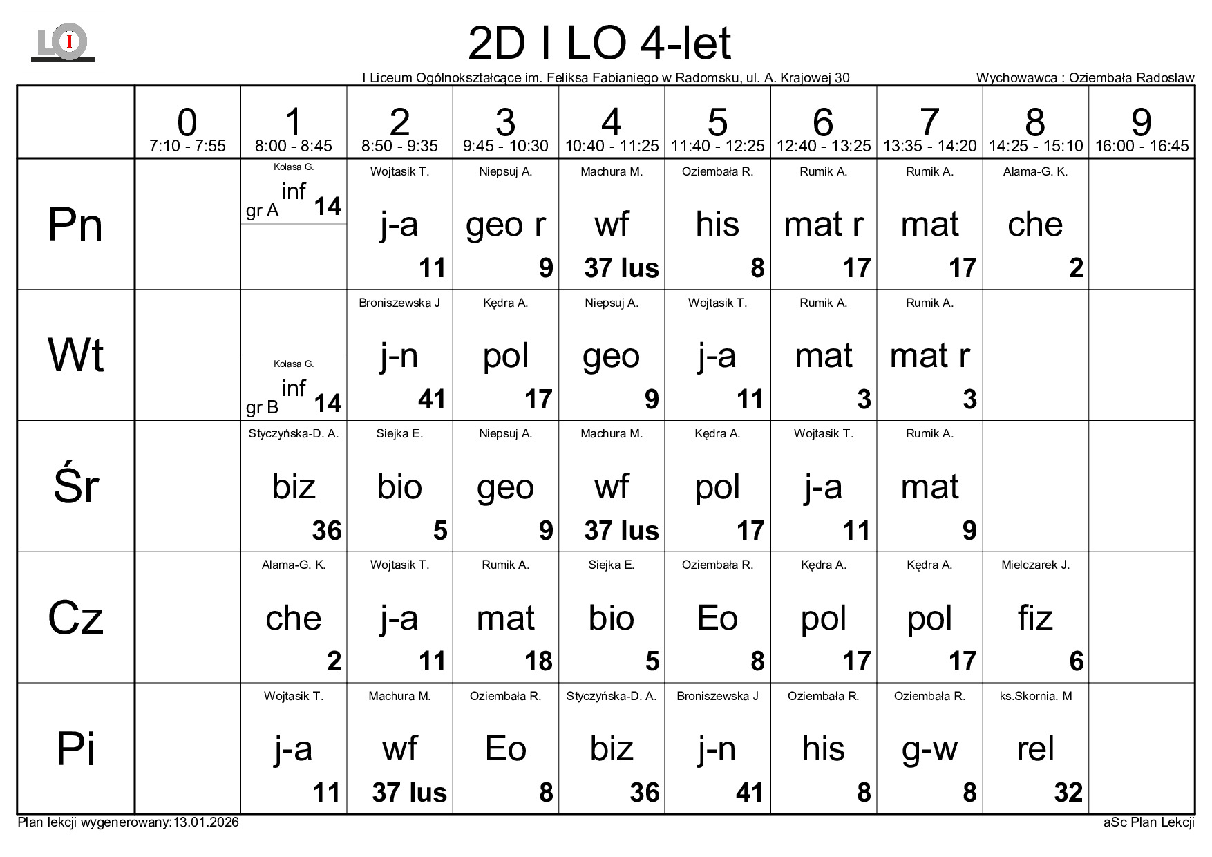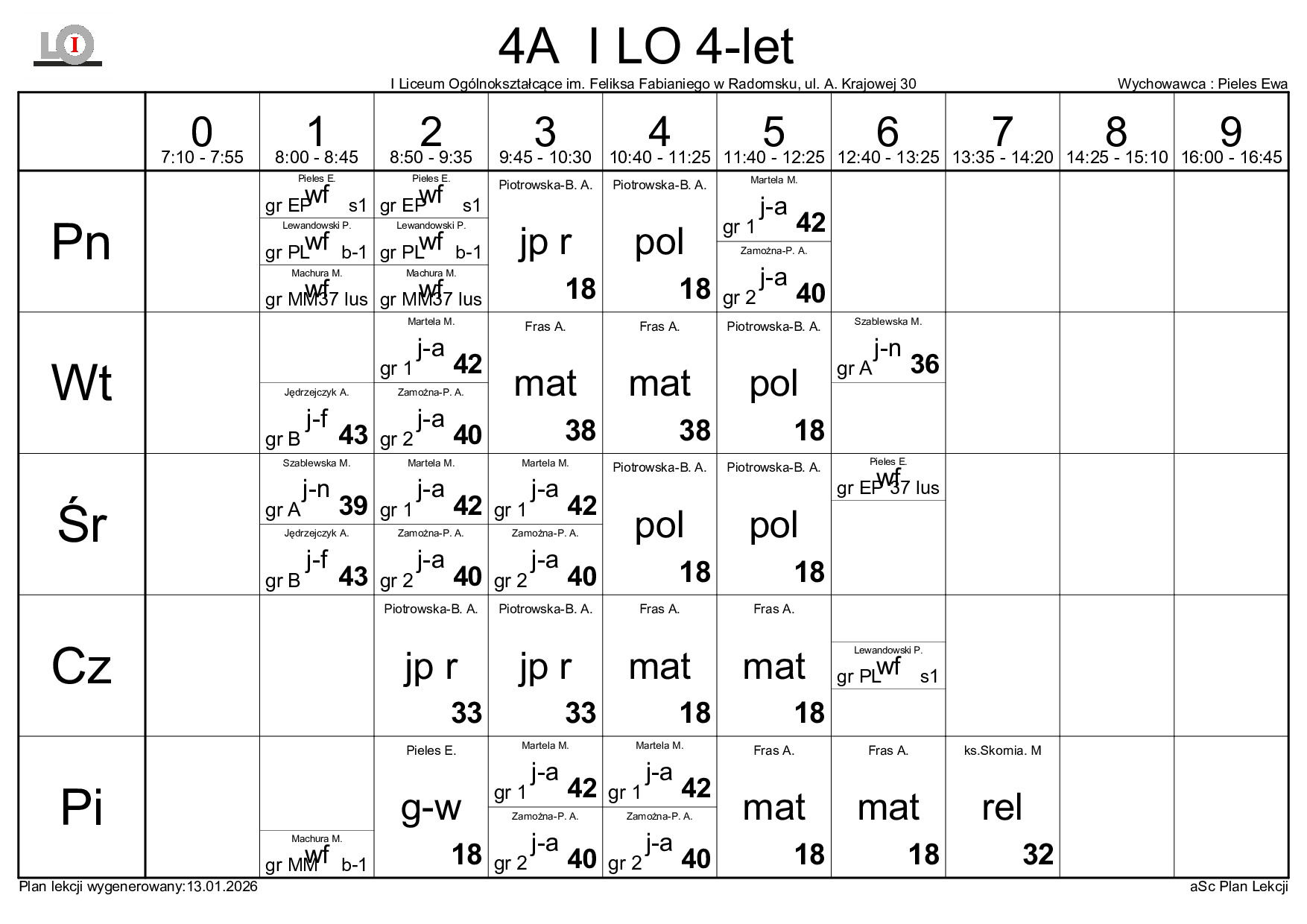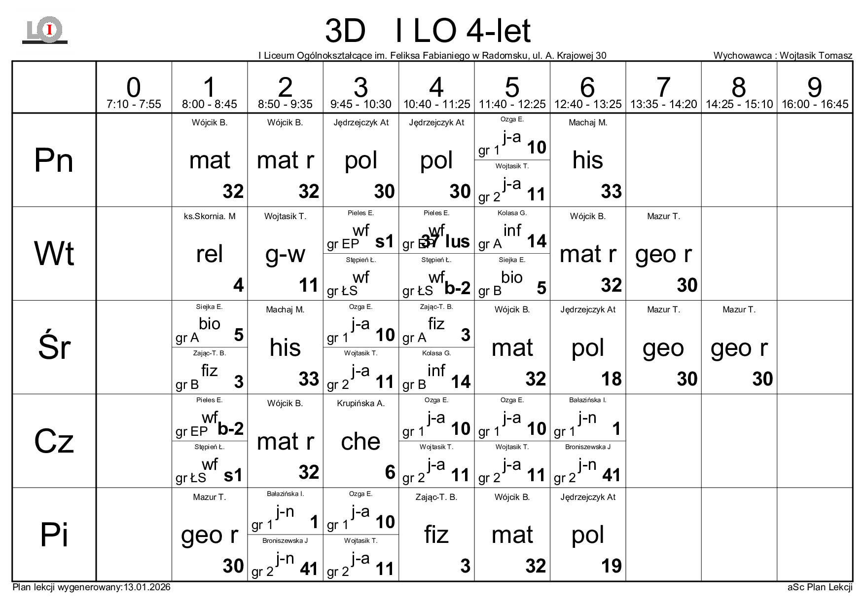 PLAN LEKCJI NA ROK SZKOLNY 2025/2026