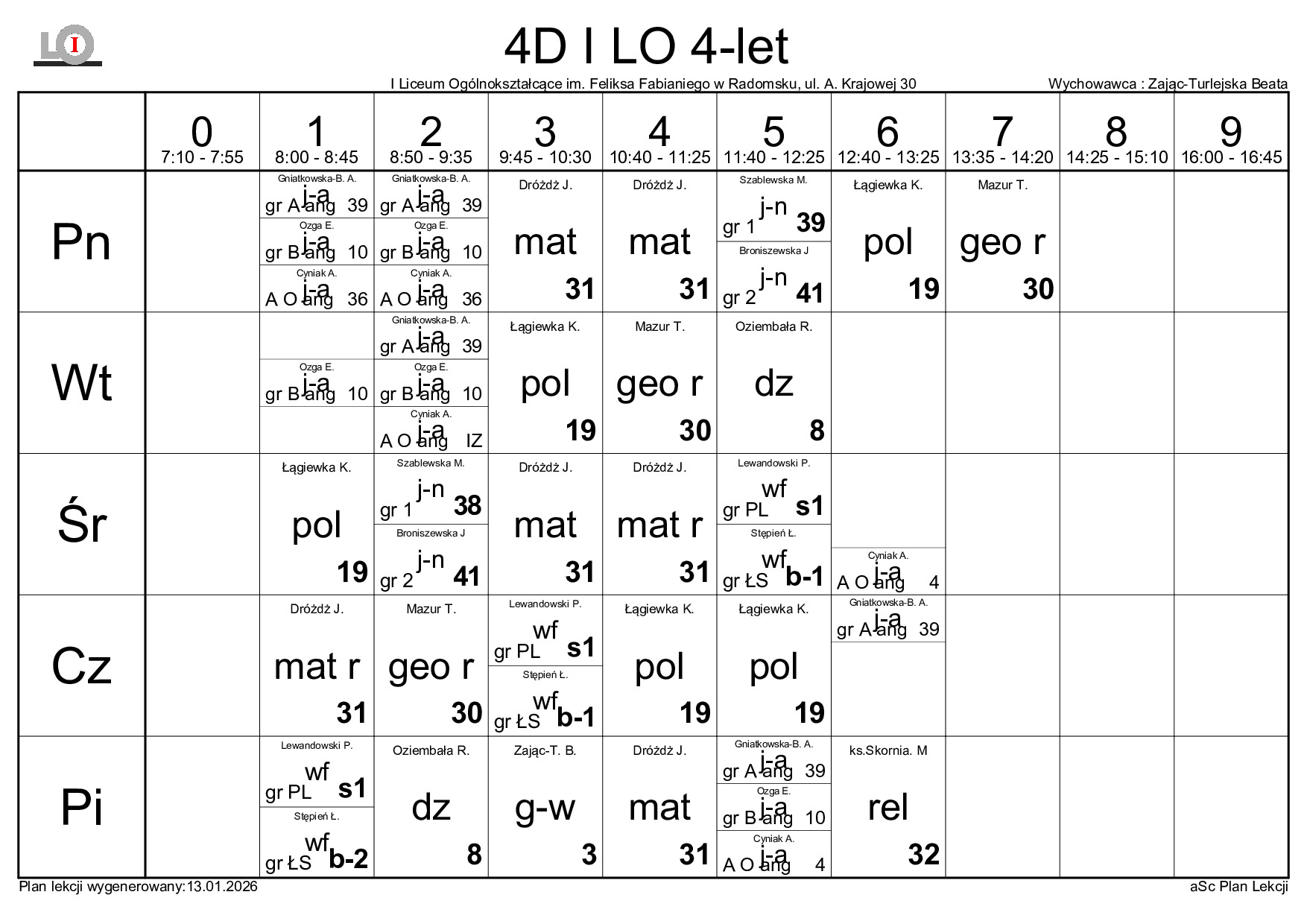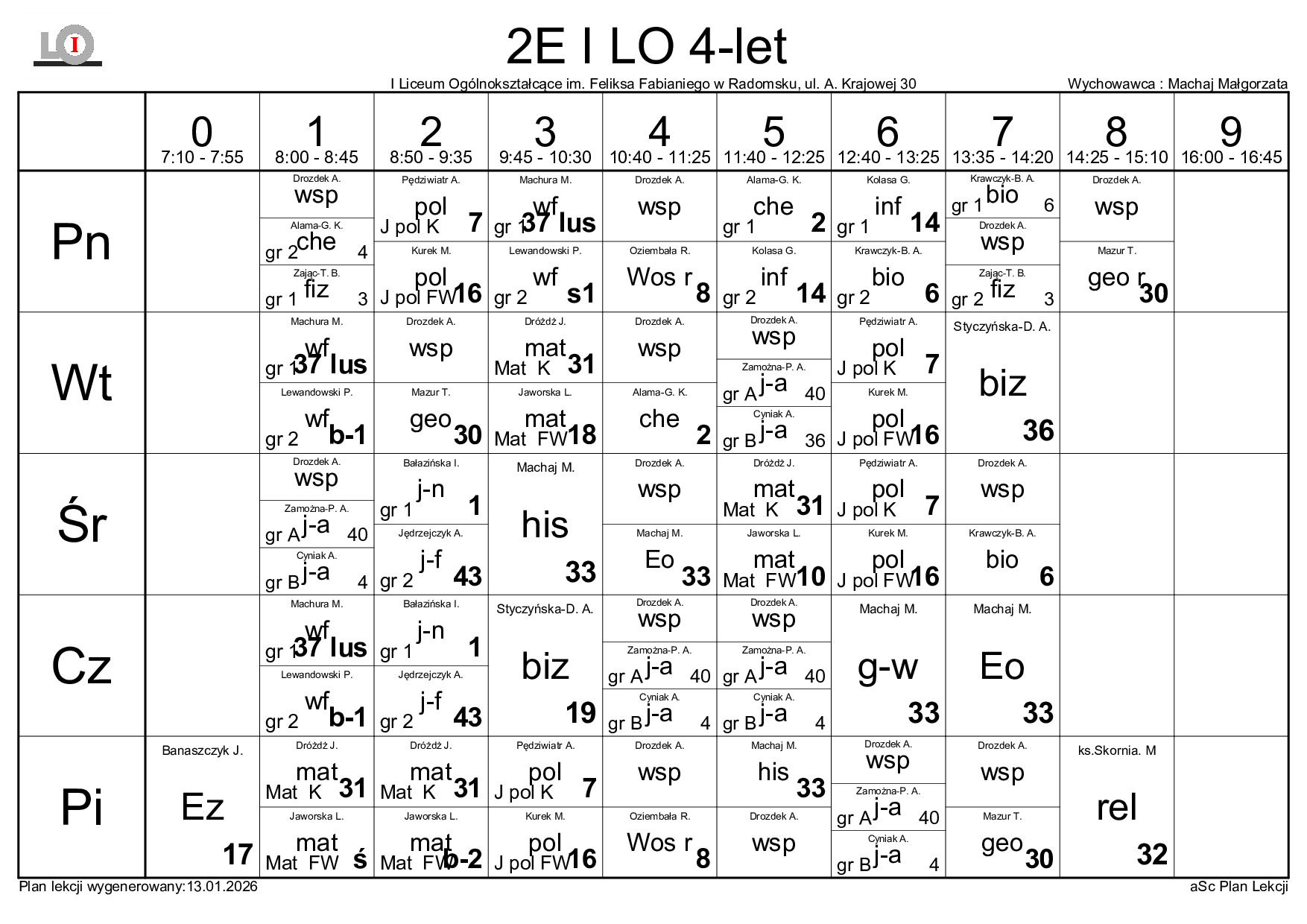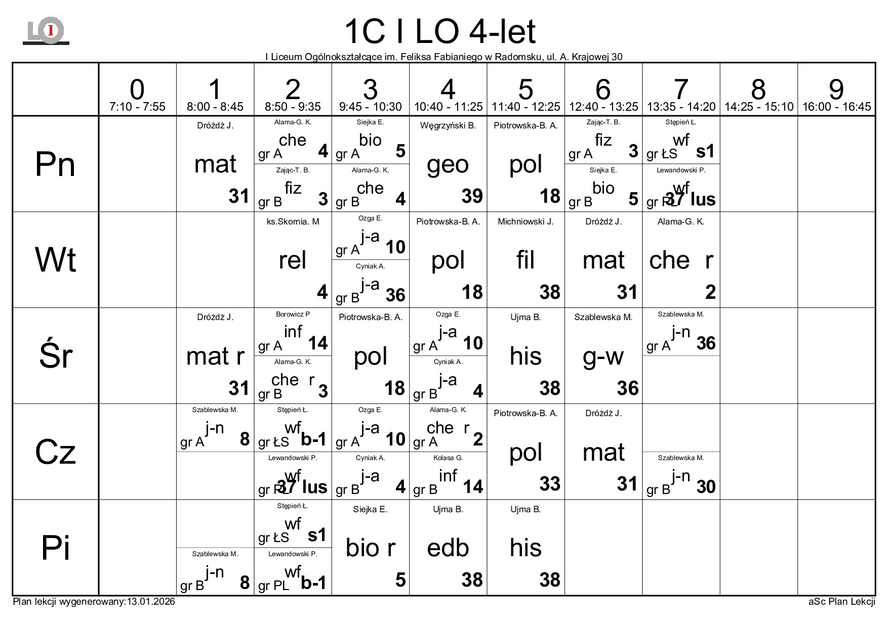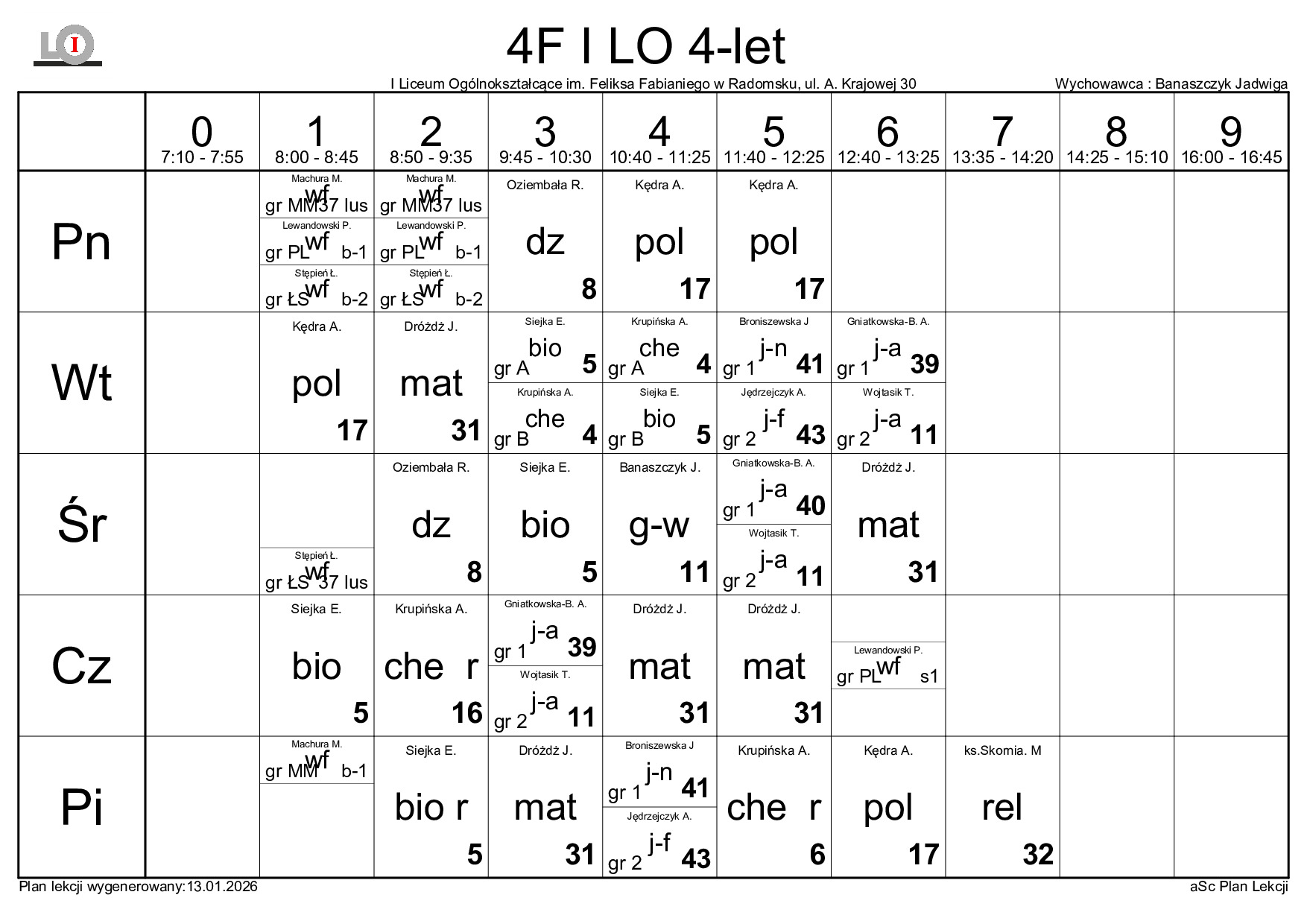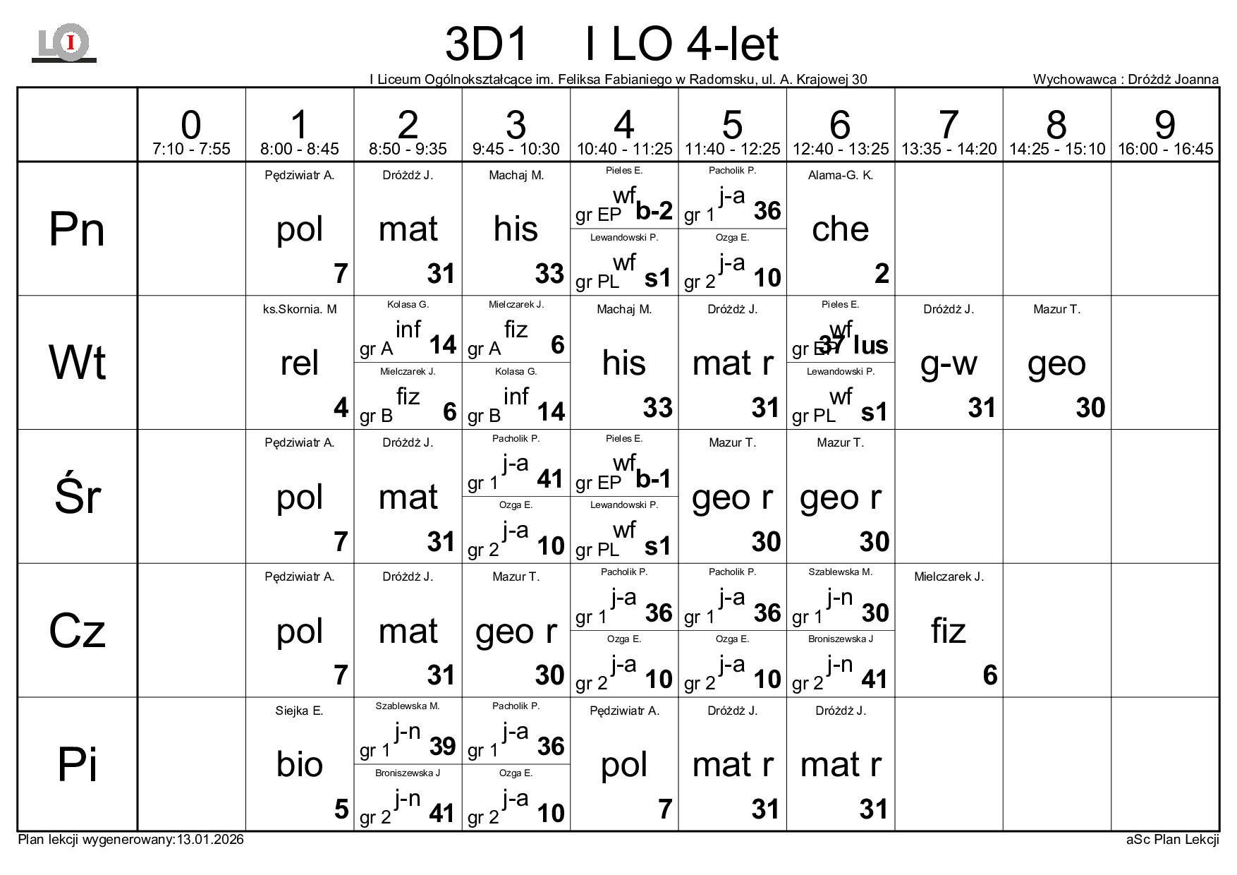 PLAN LEKCJI NA ROK SZKOLNY 2025/2026