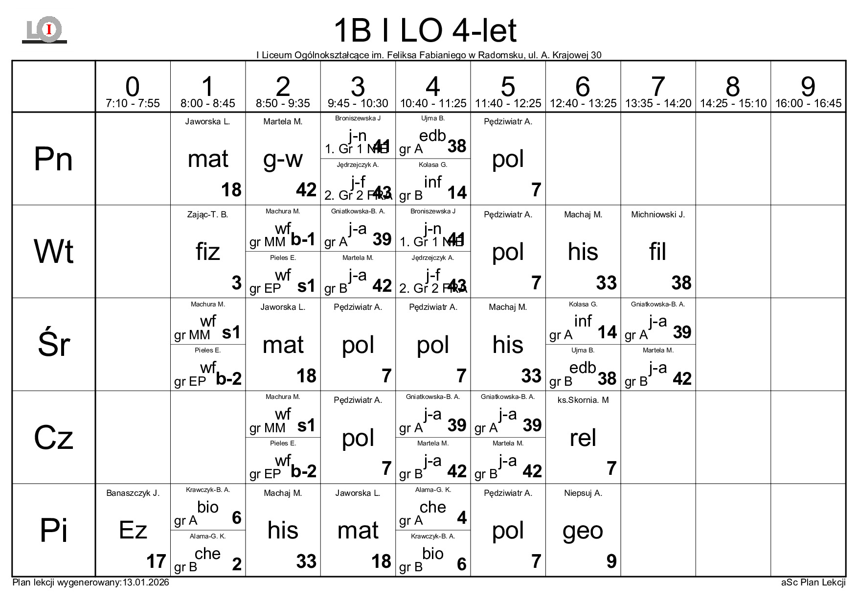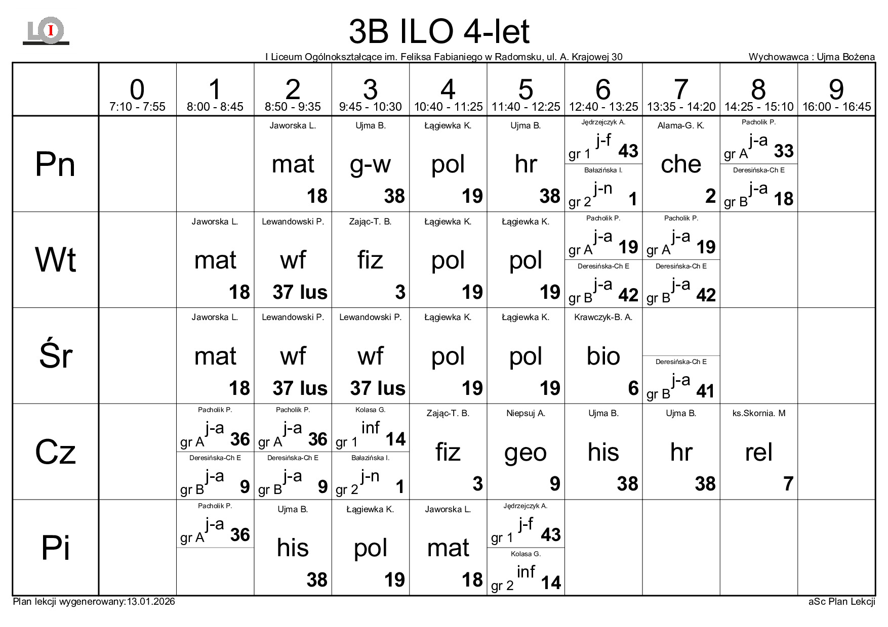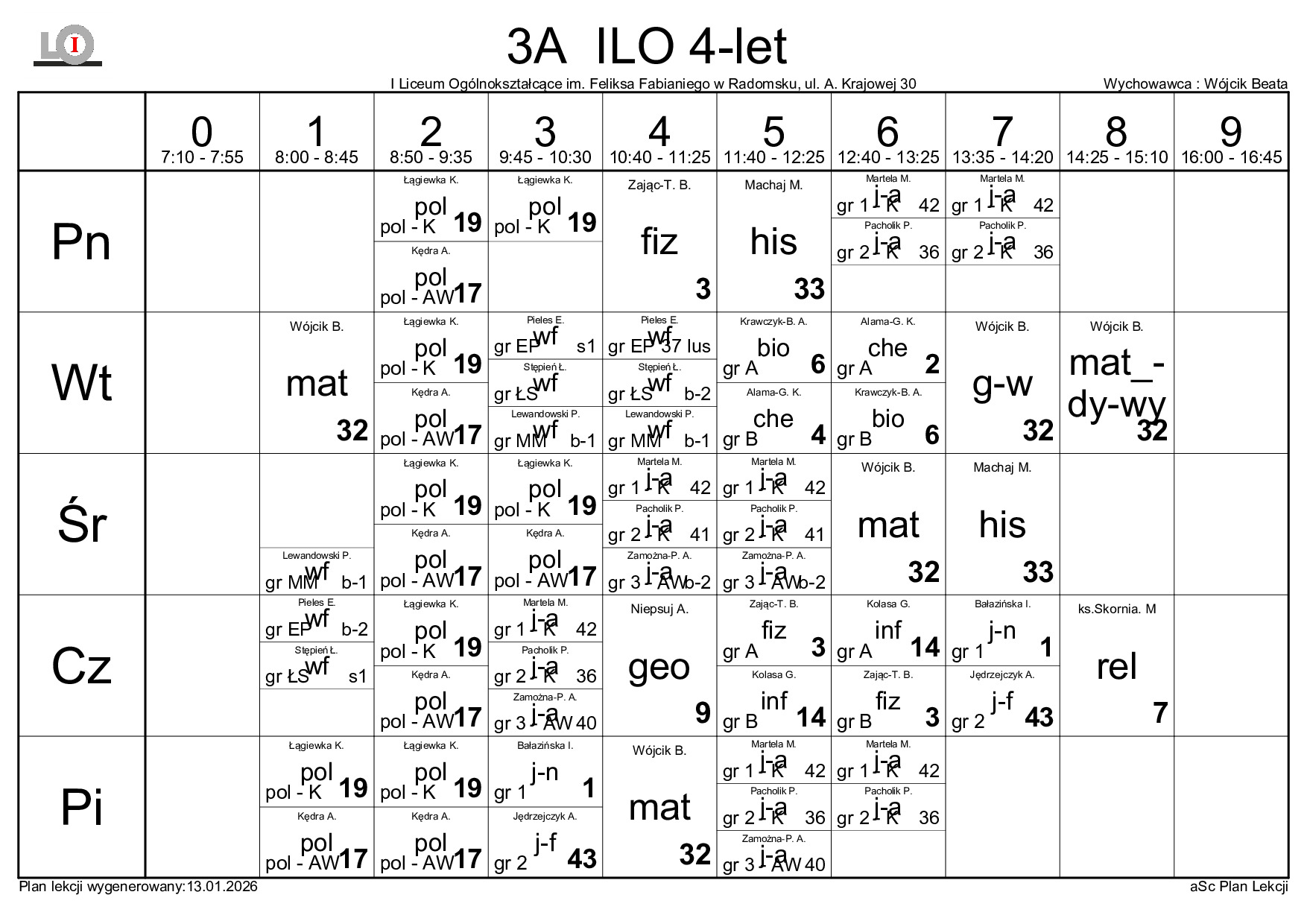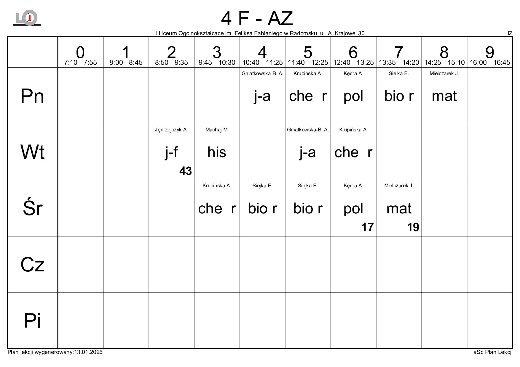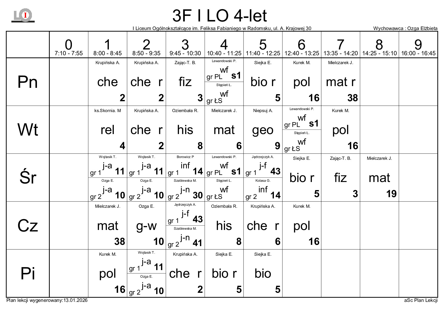PLAN LEKCJI NA ROK SZKOLNY 2025/2026