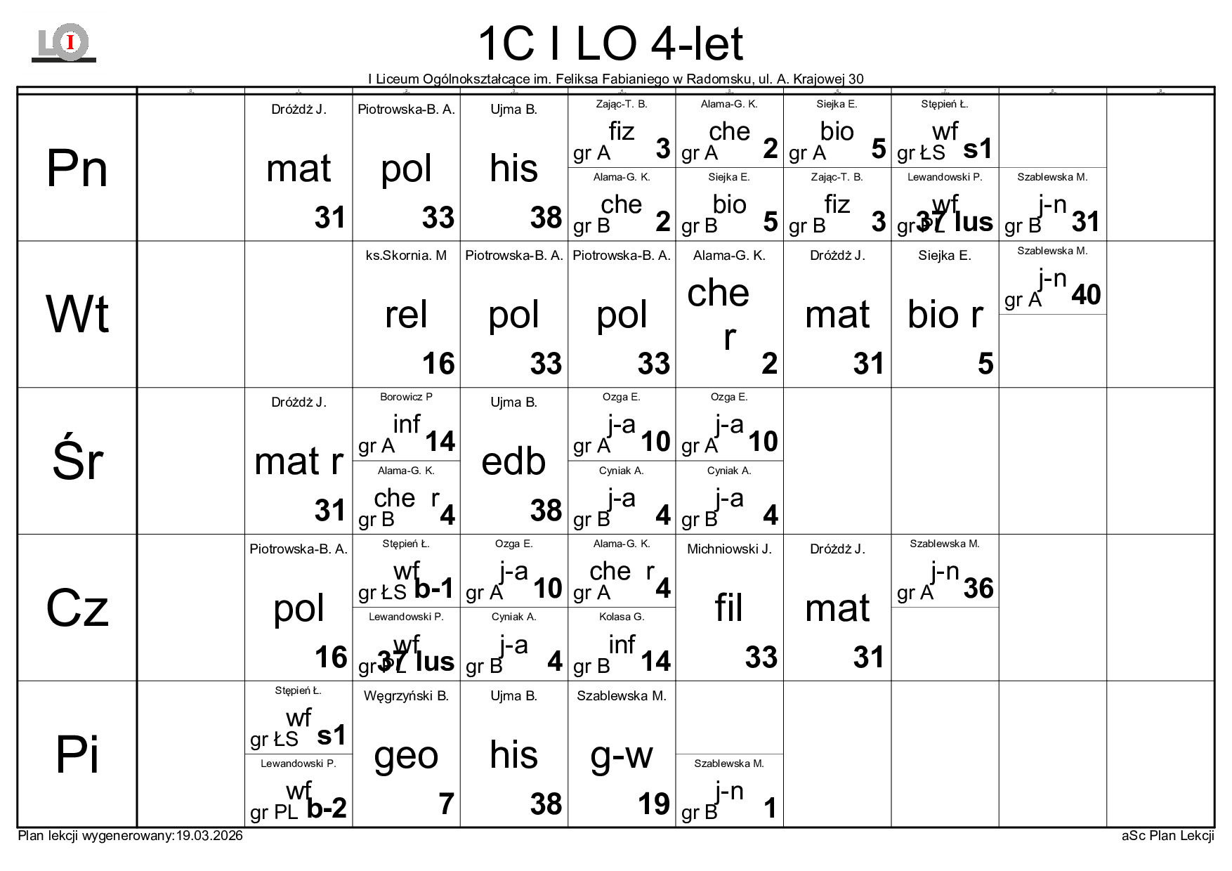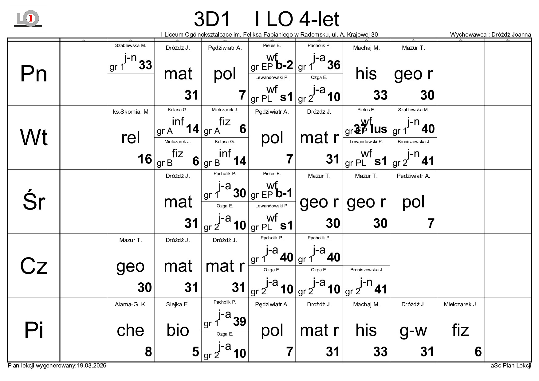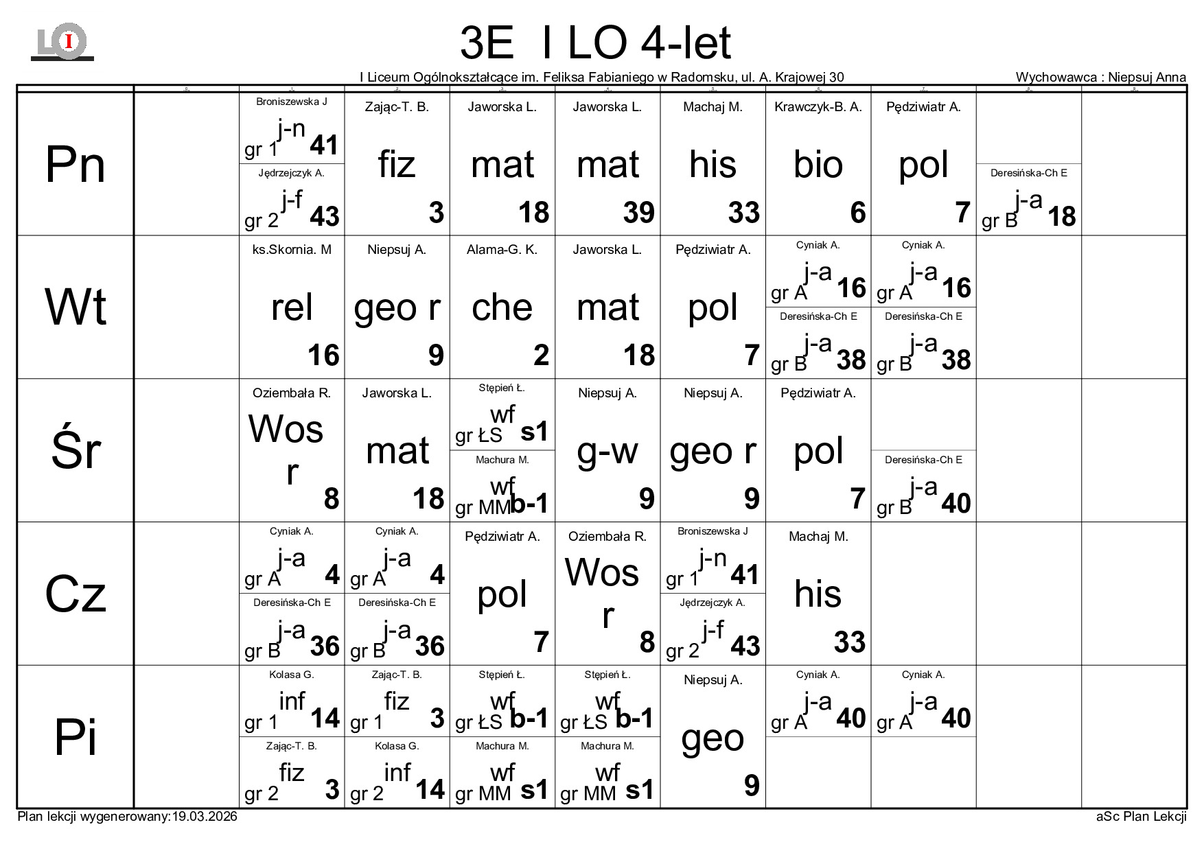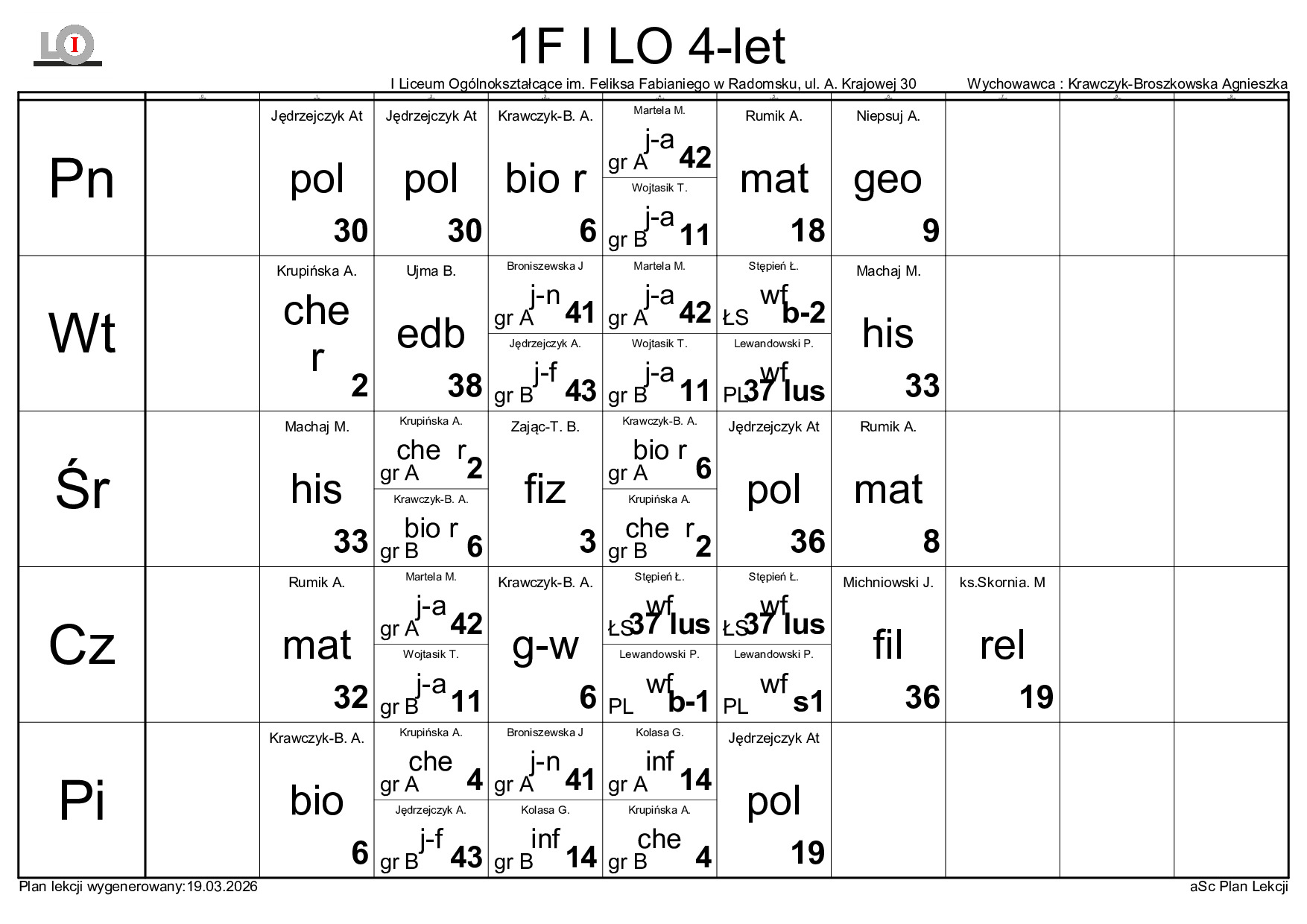 PLAN LEKCJI NA ROK SZKOLNY 2025/2026