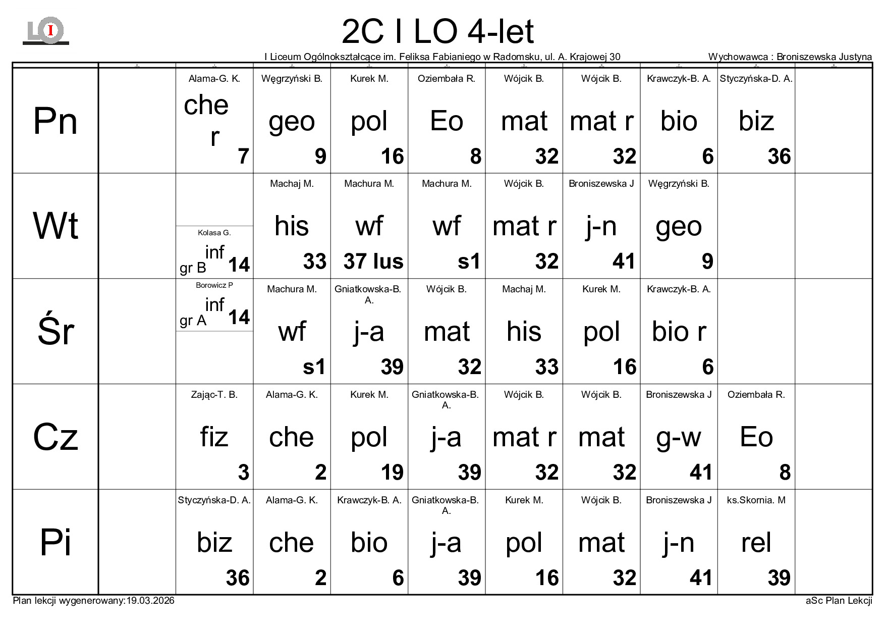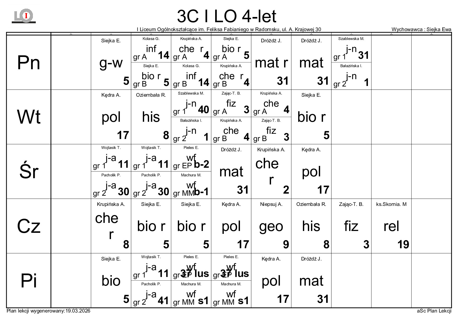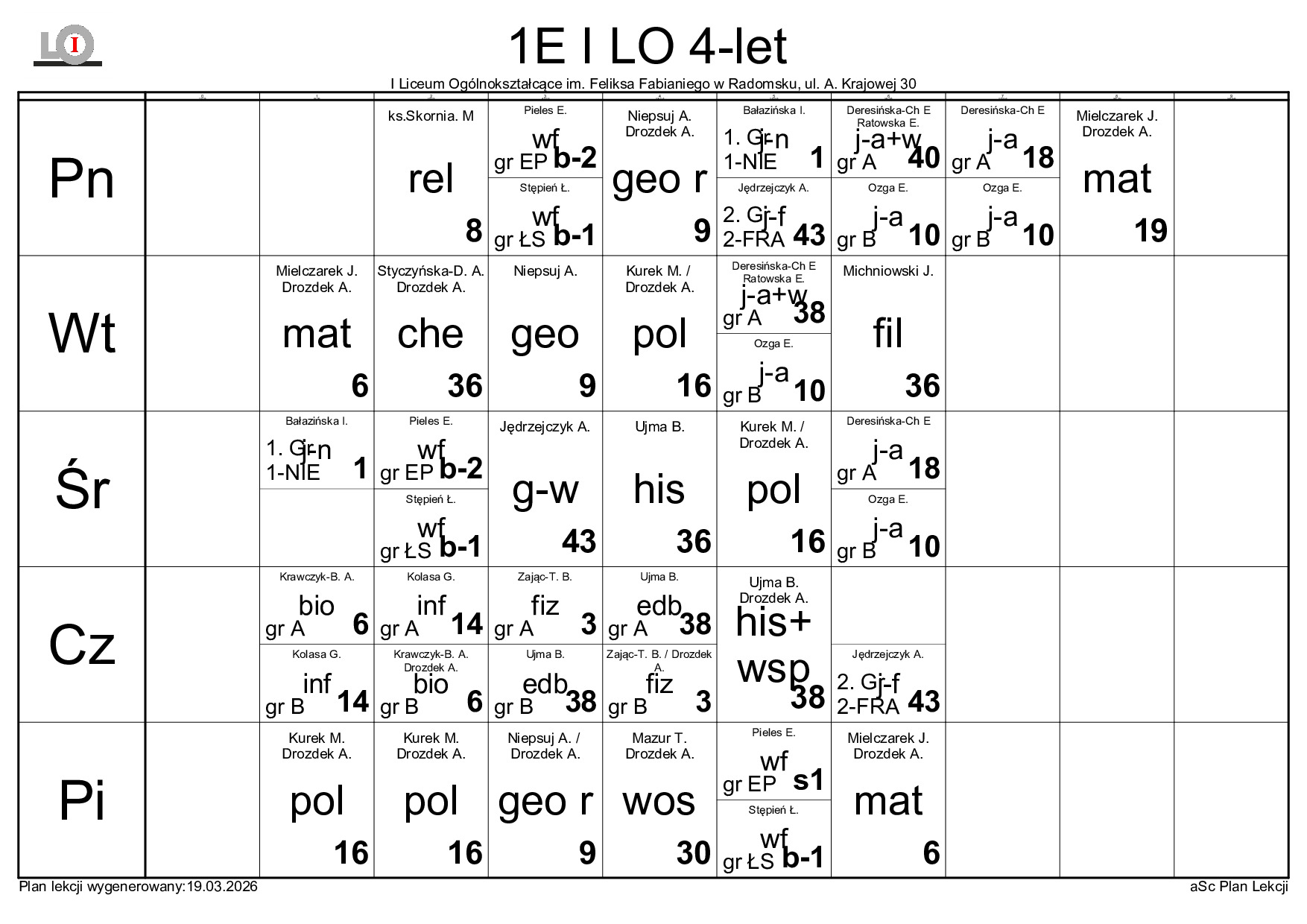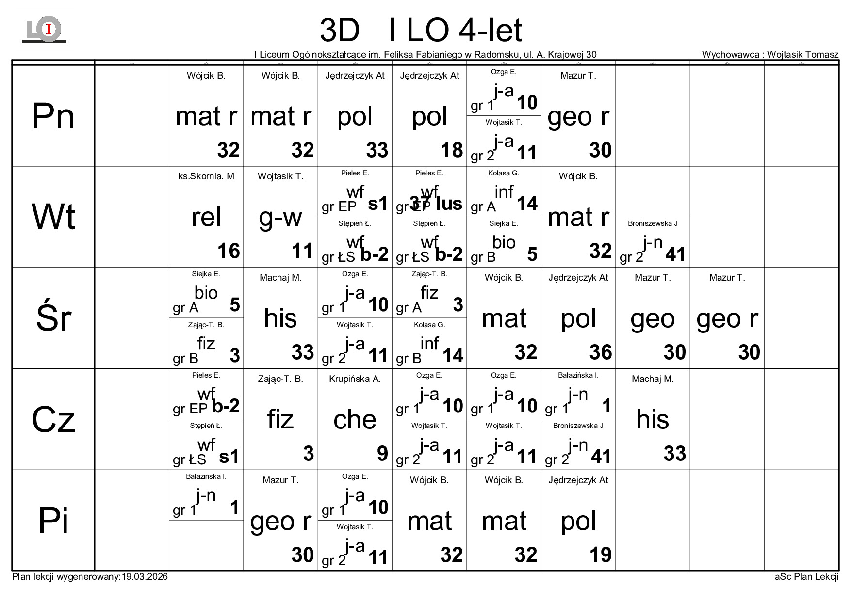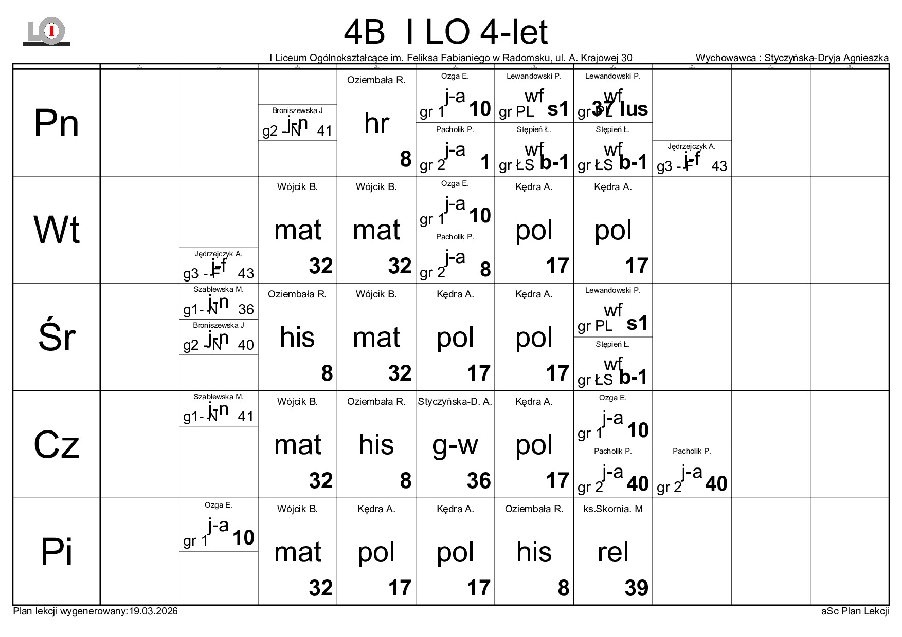 PLAN LEKCJI NA ROK SZKOLNY 2025/2026