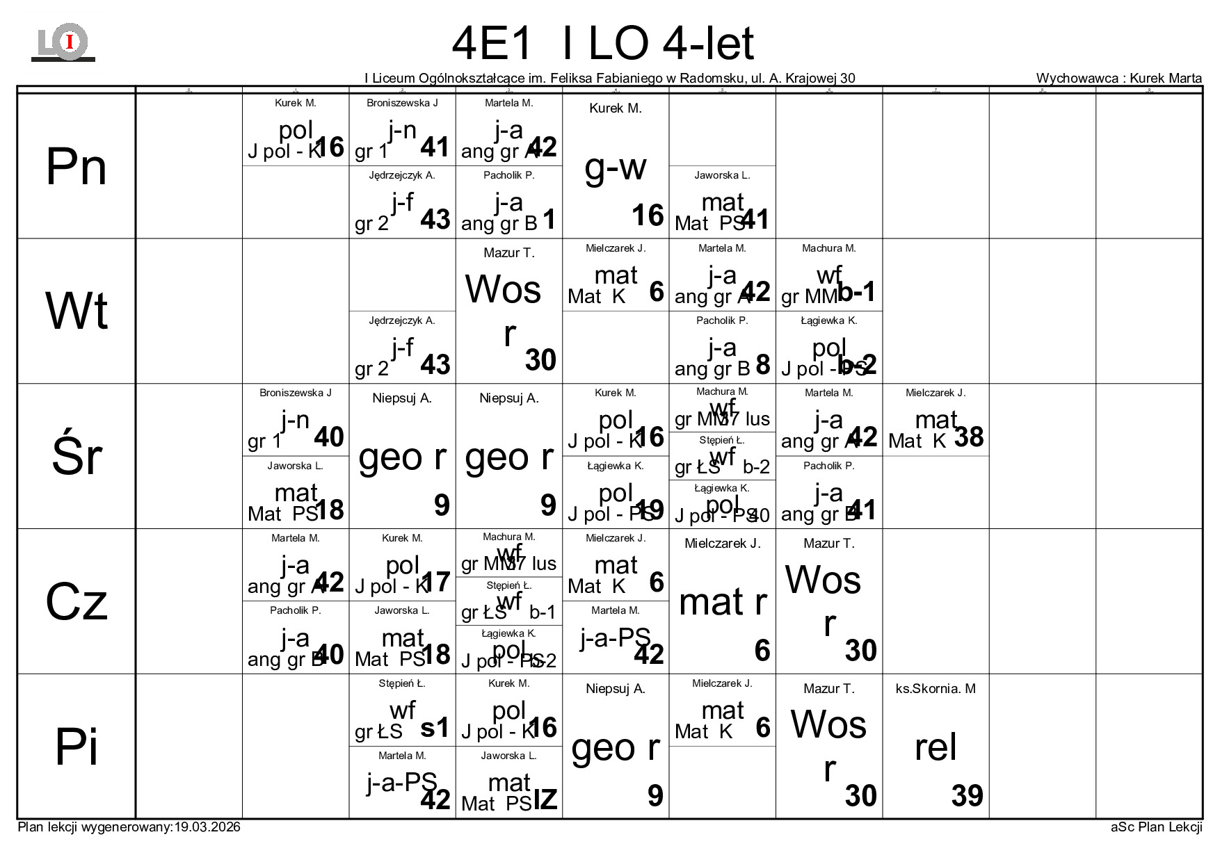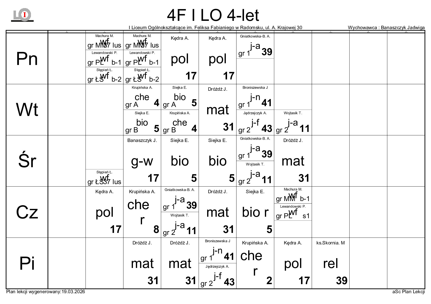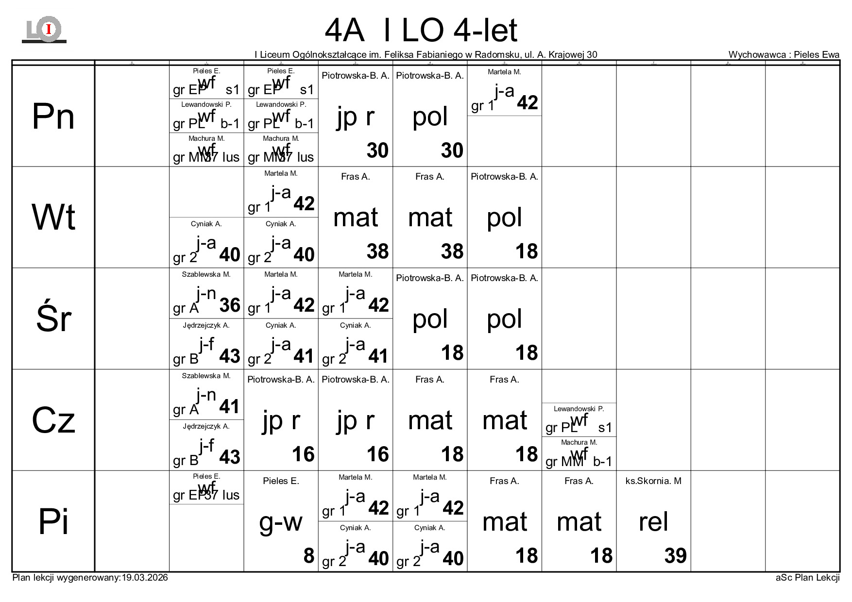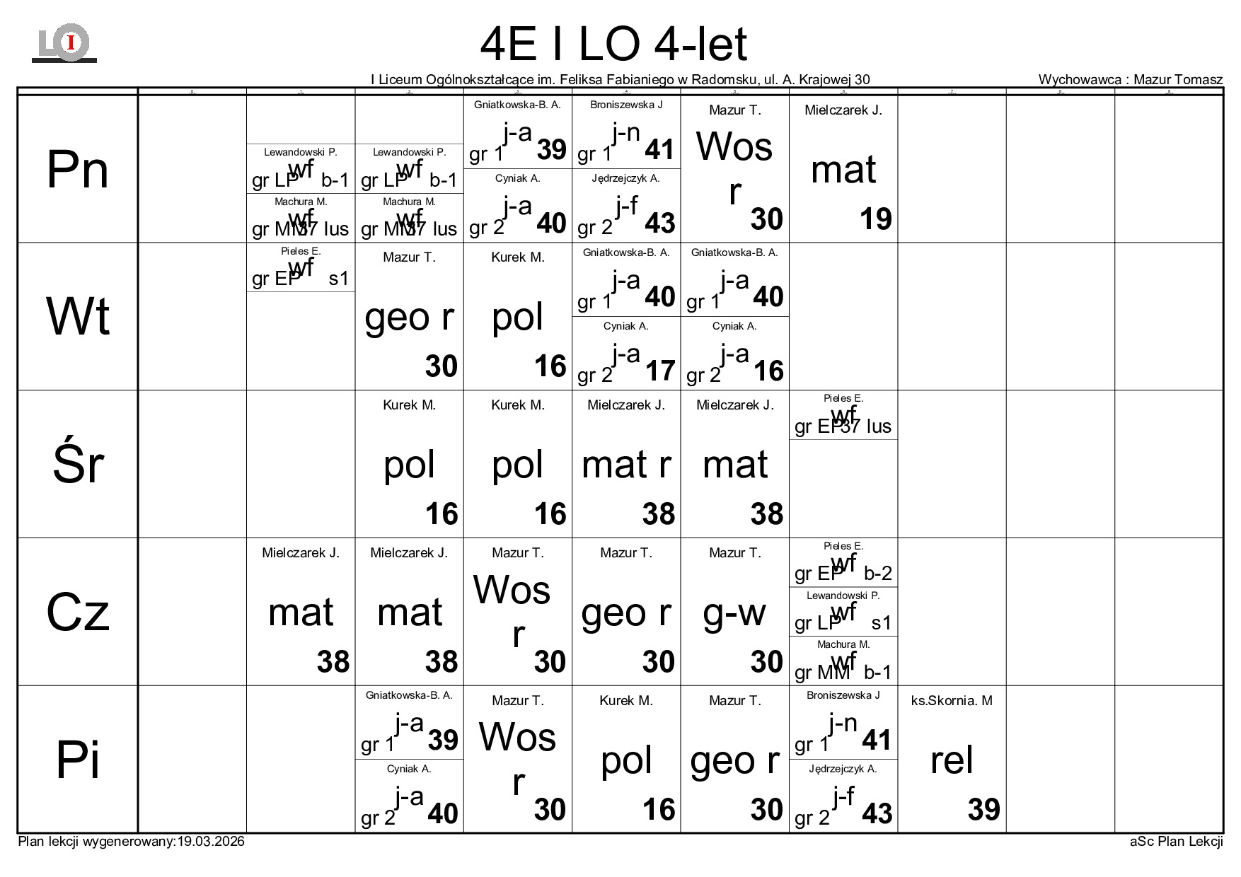 PLAN LEKCJI NA ROK SZKOLNY 2025/2026