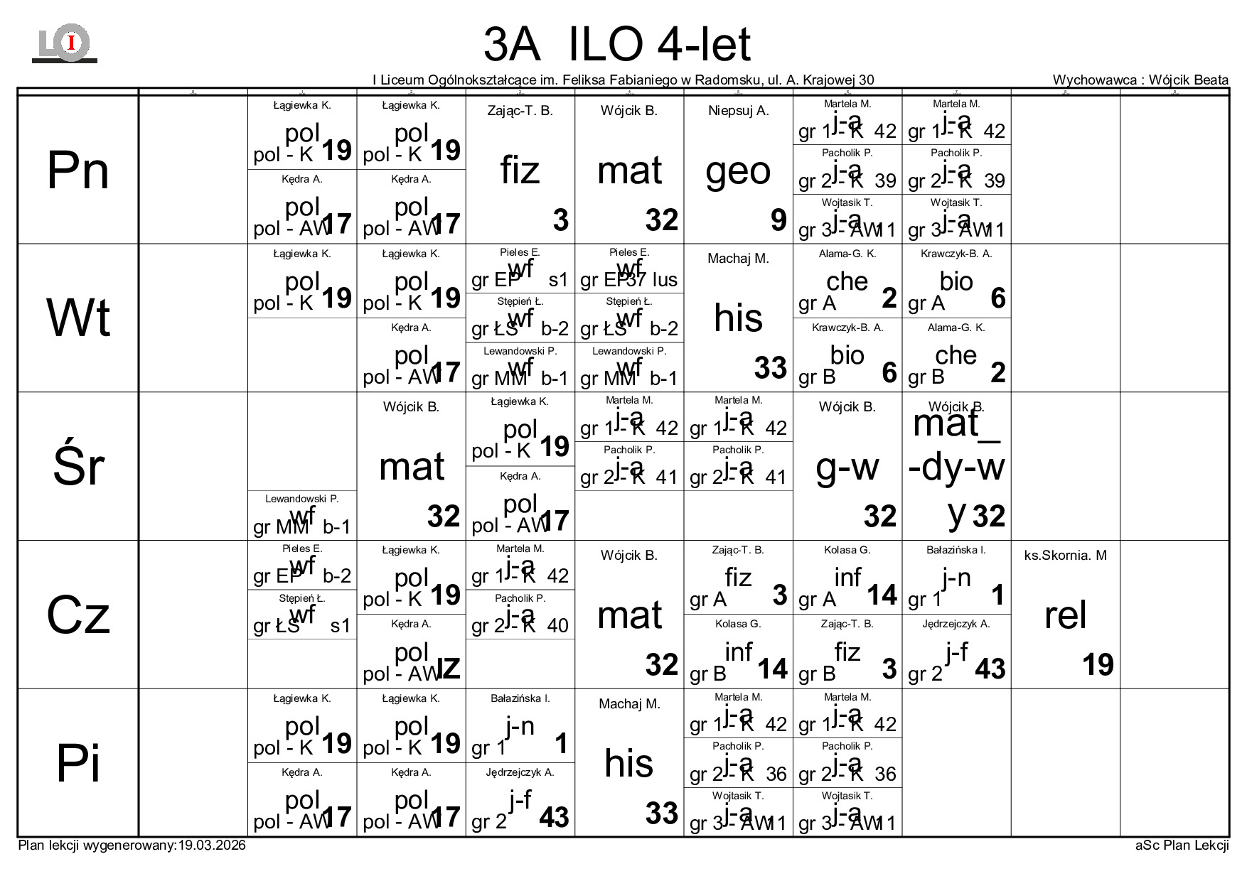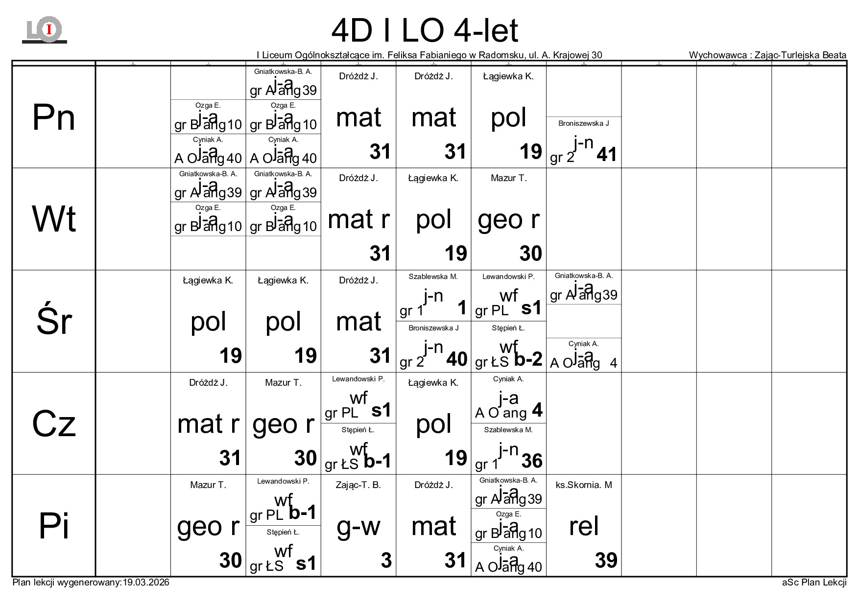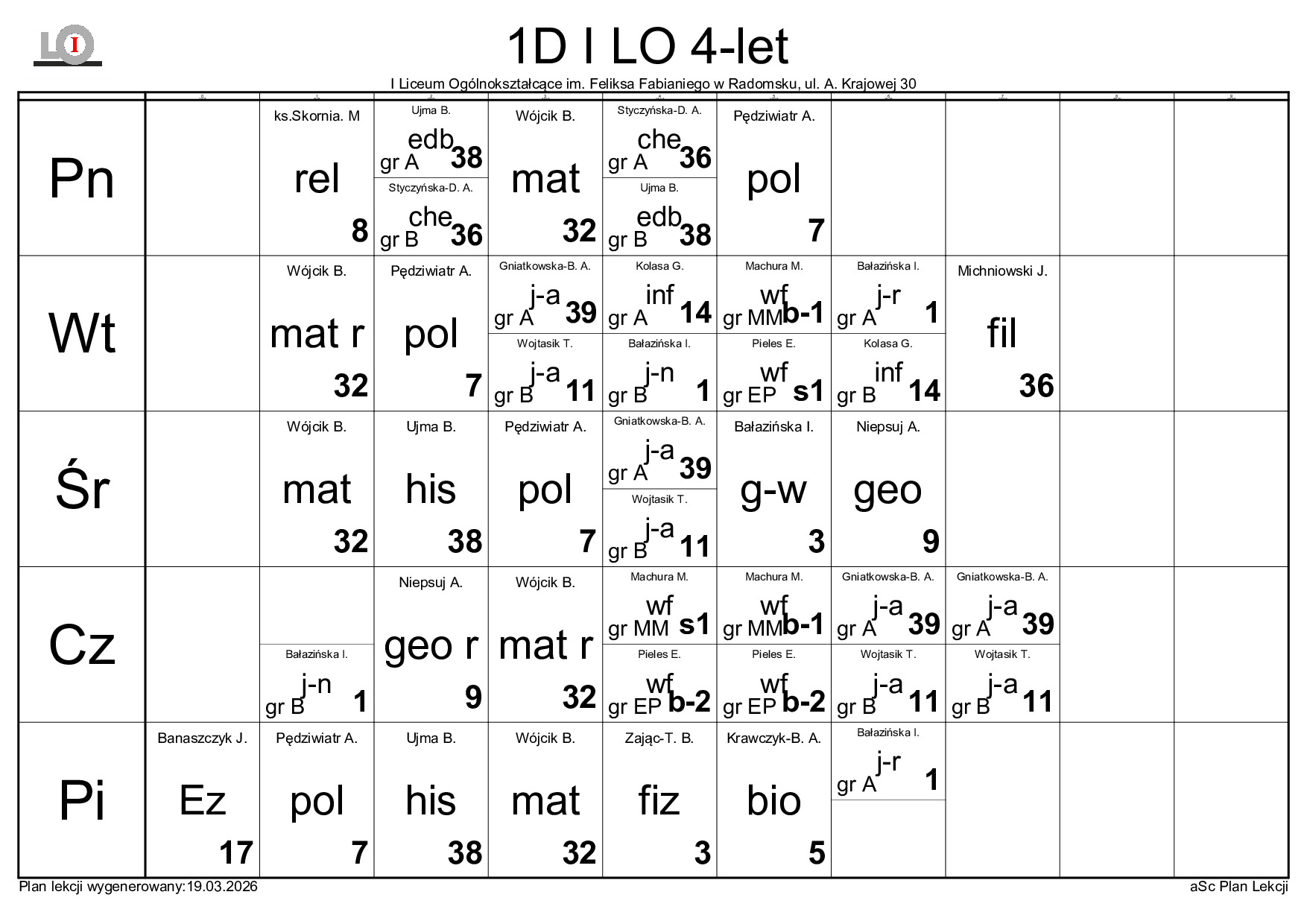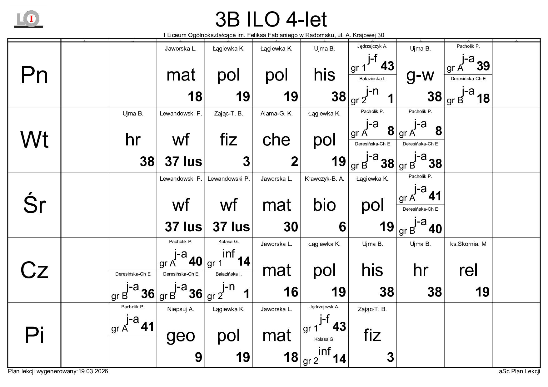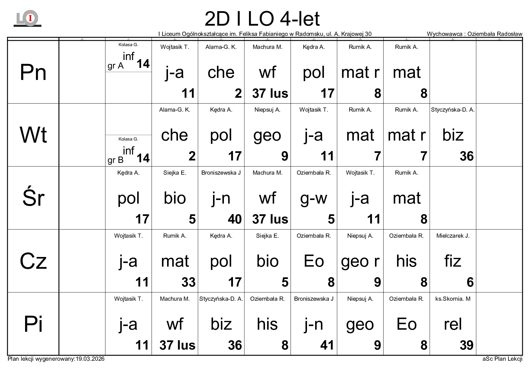 PLAN LEKCJI NA ROK SZKOLNY 2025/2026