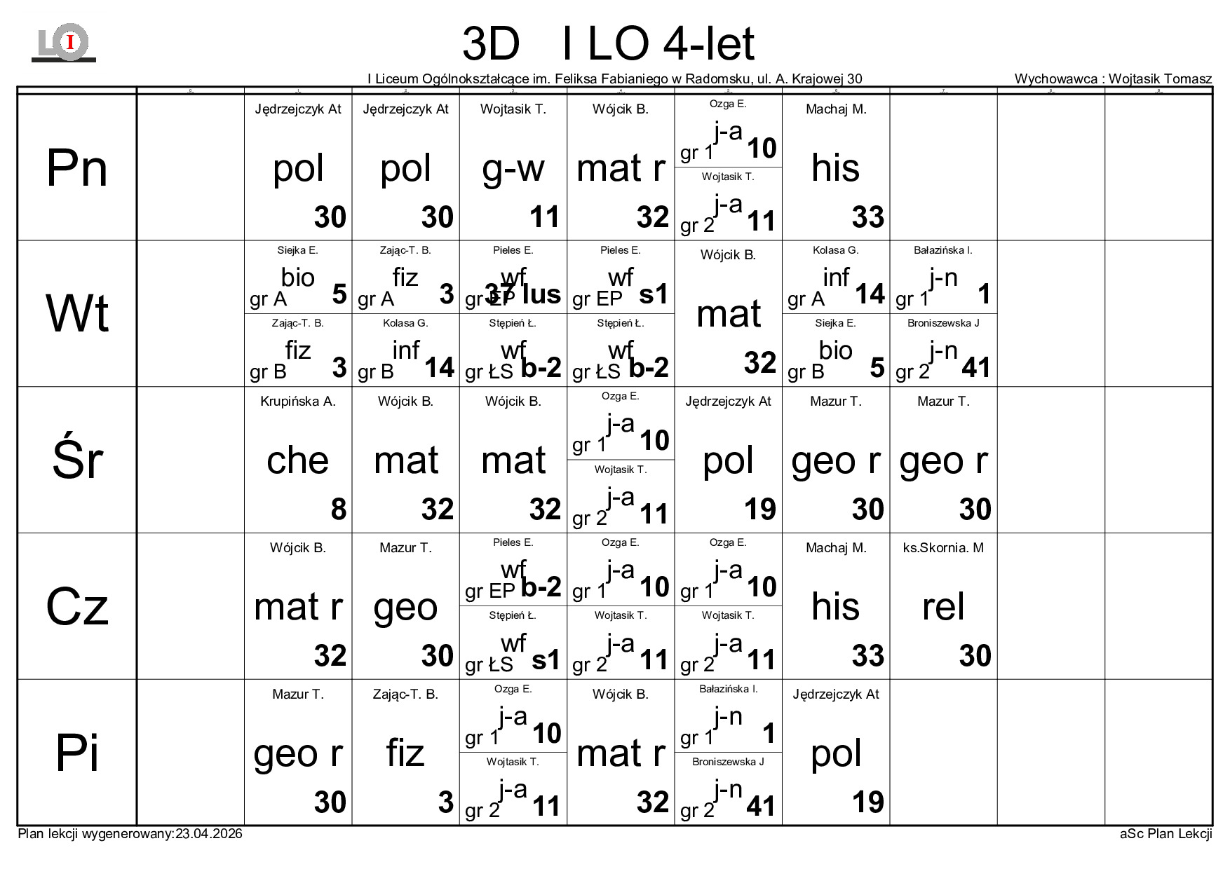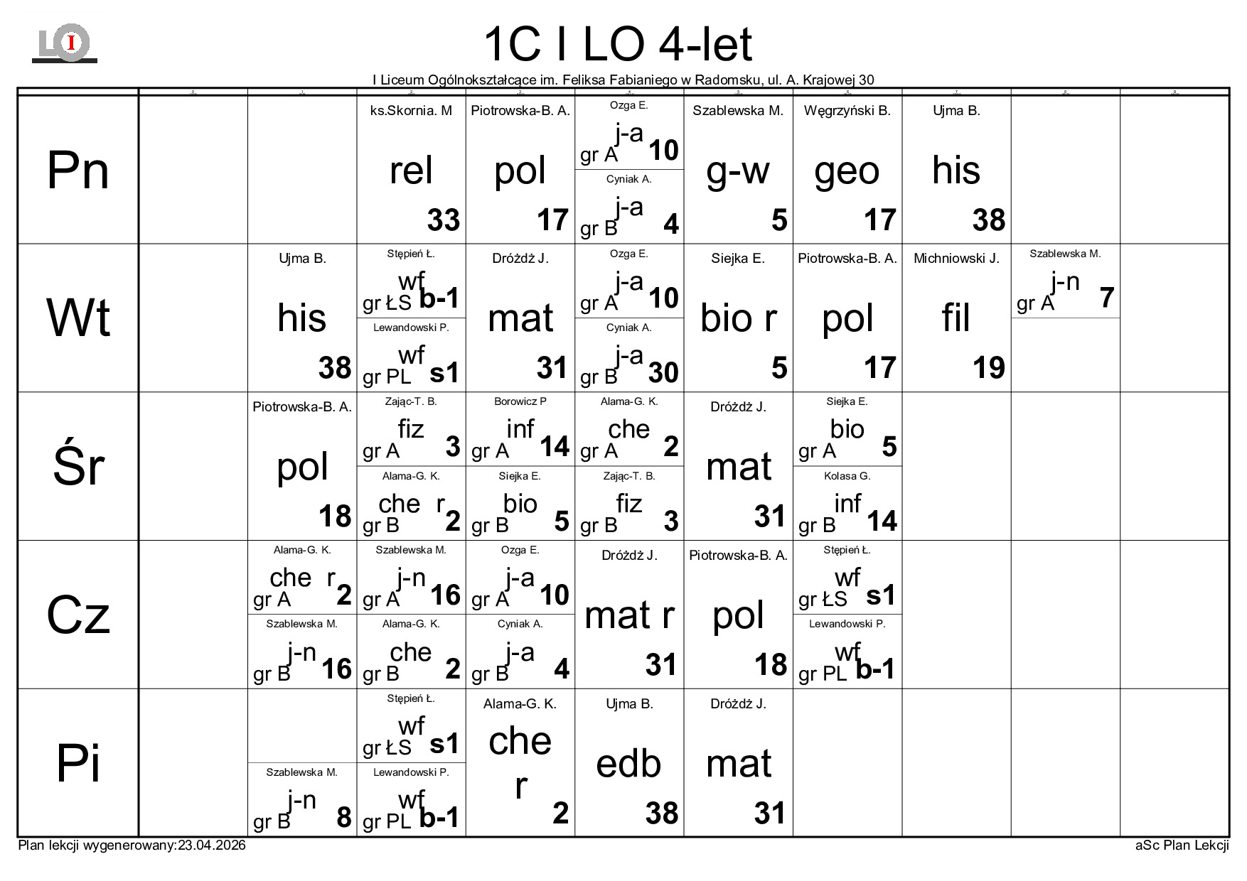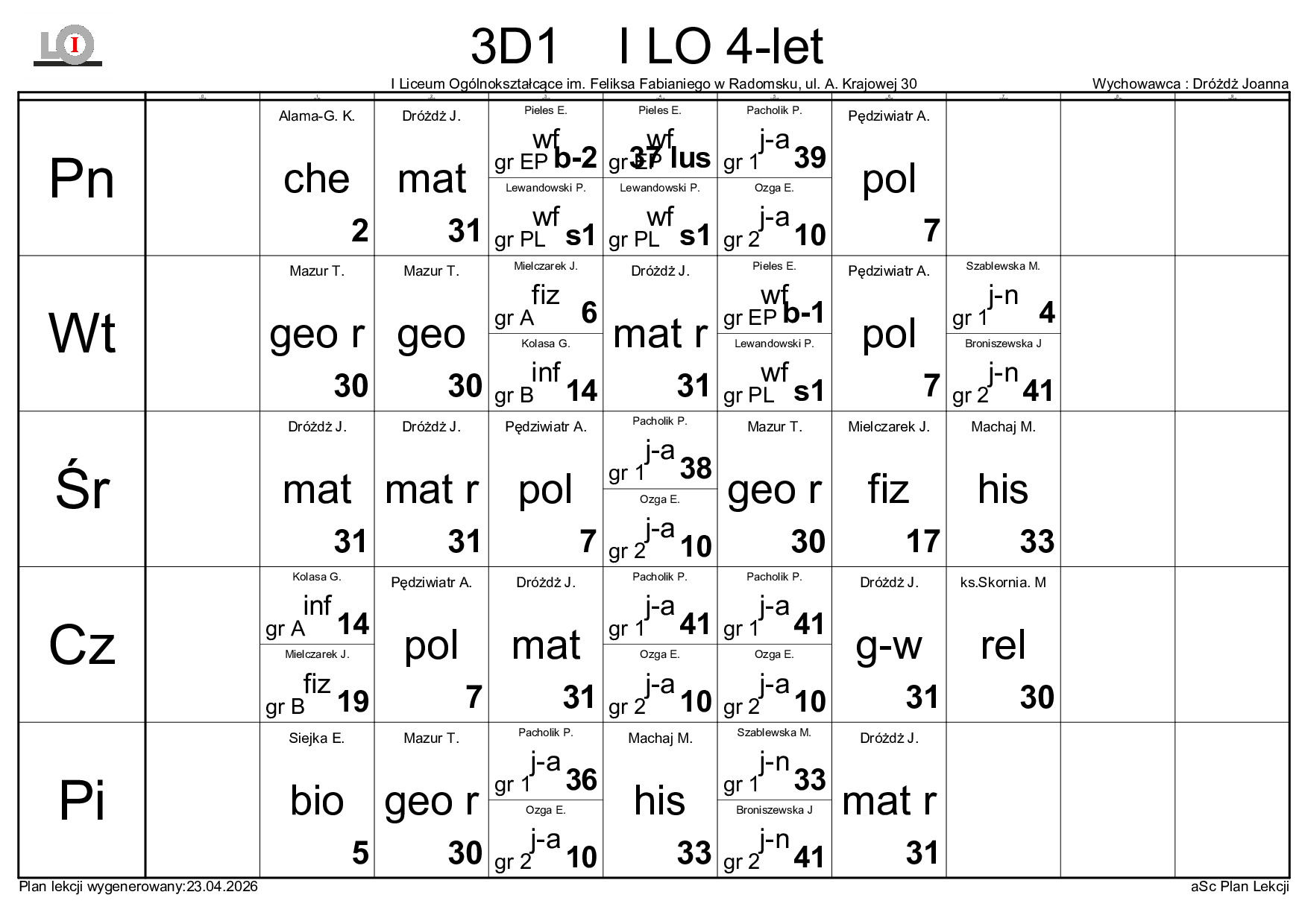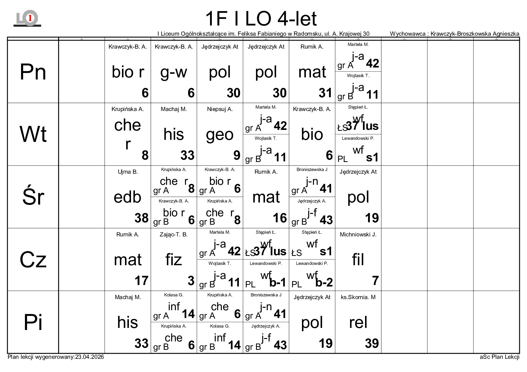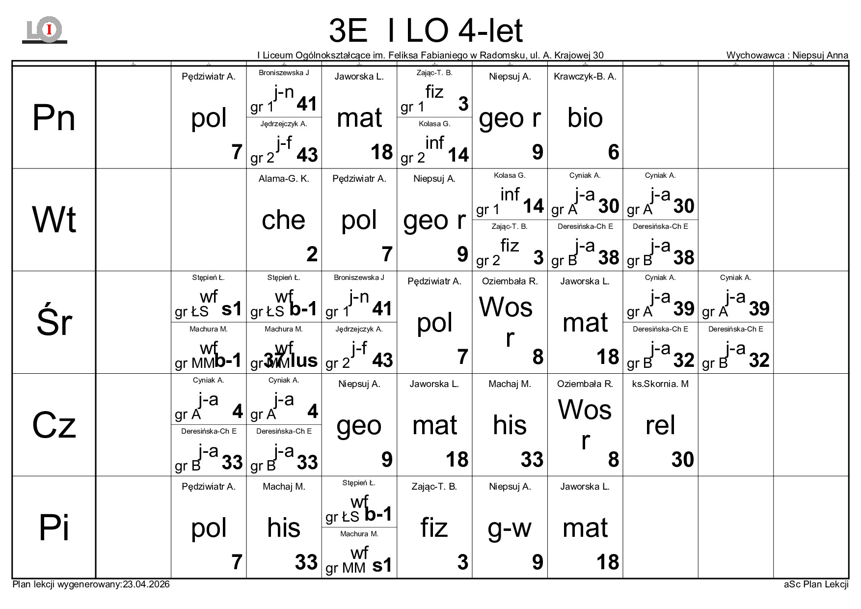 PLAN LEKCJI NA ROK SZKOLNY 2025/2026