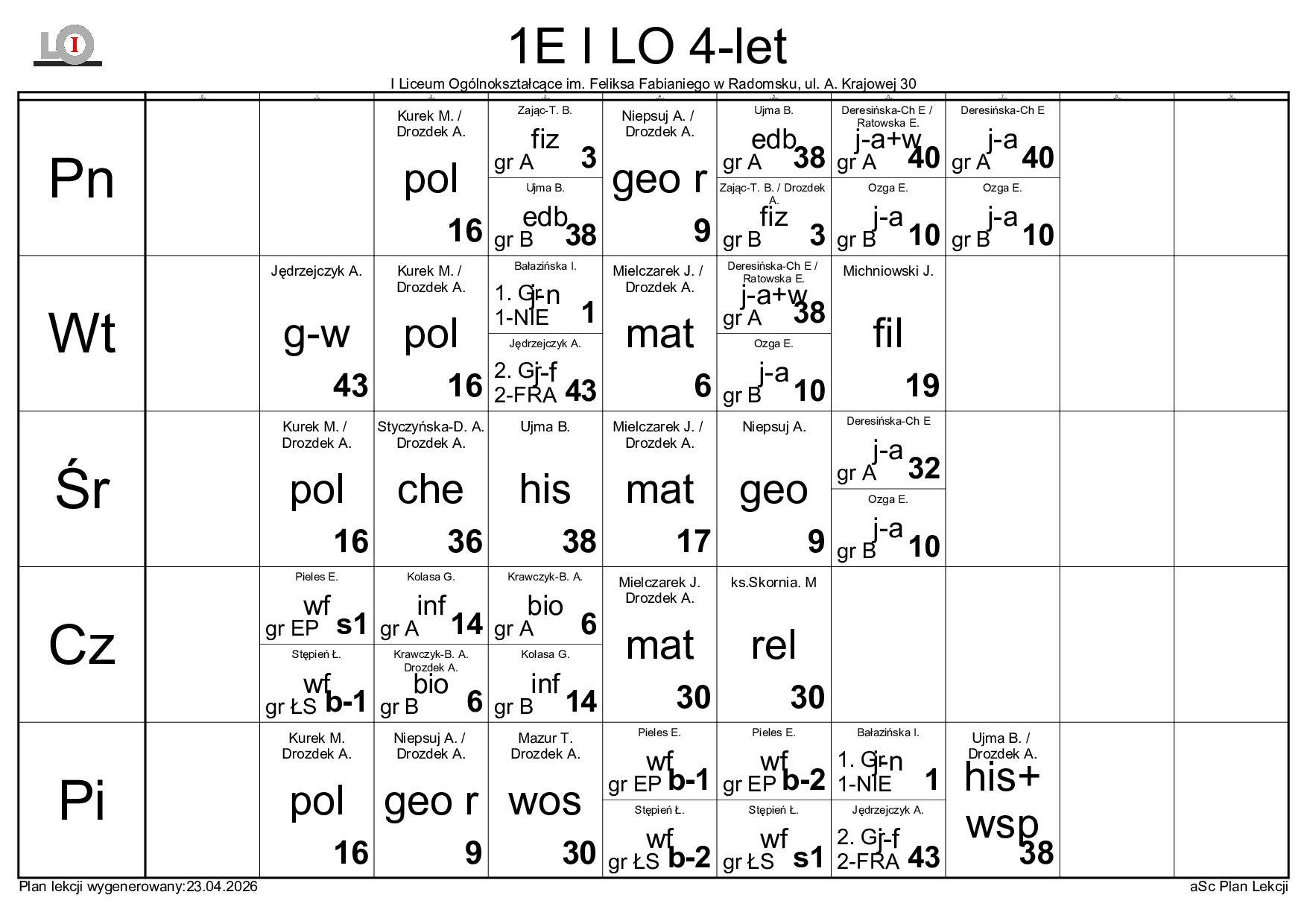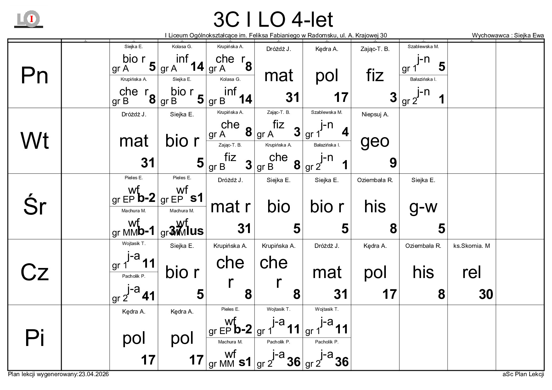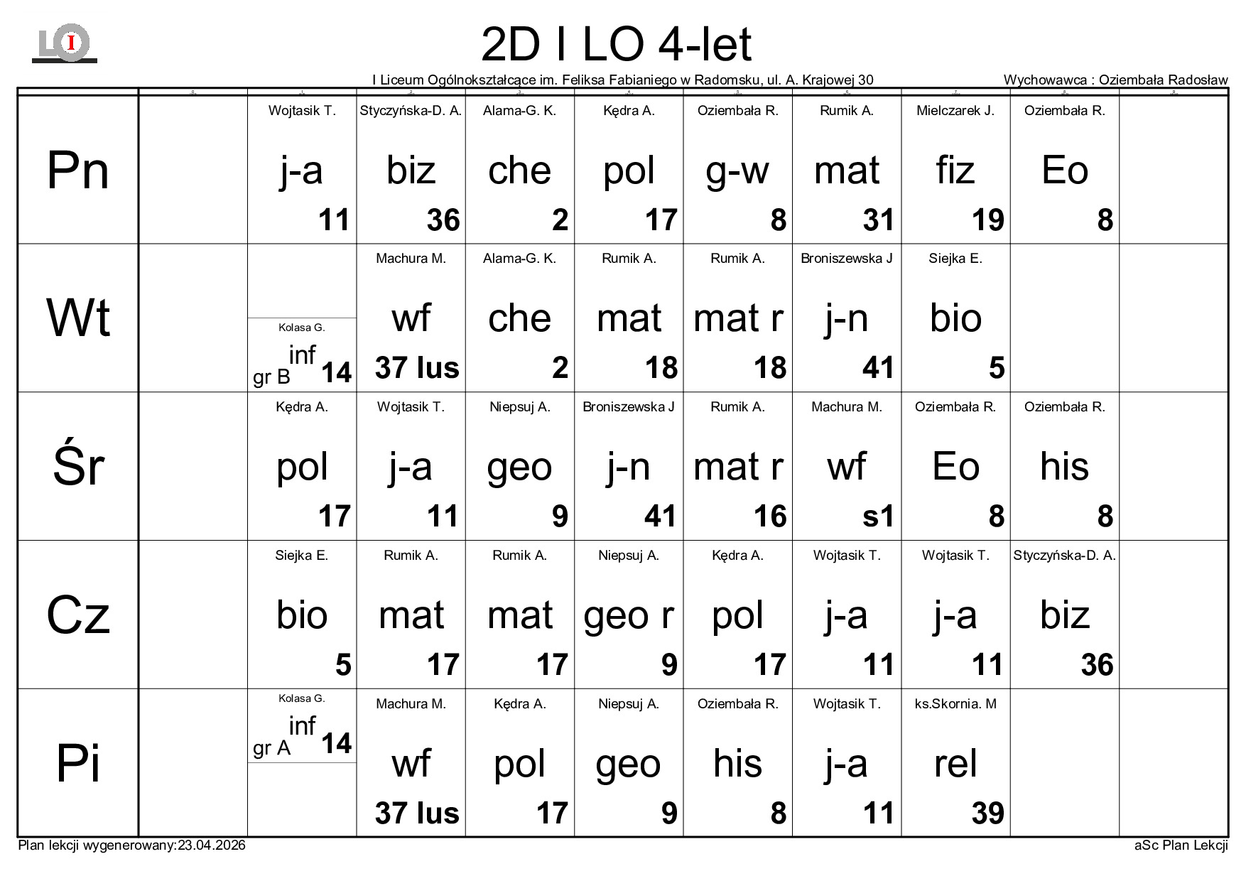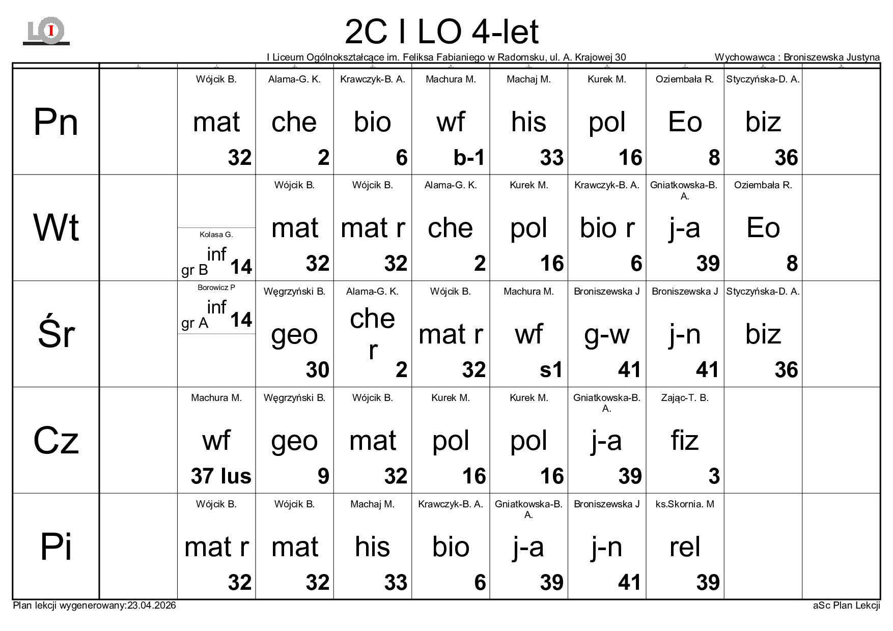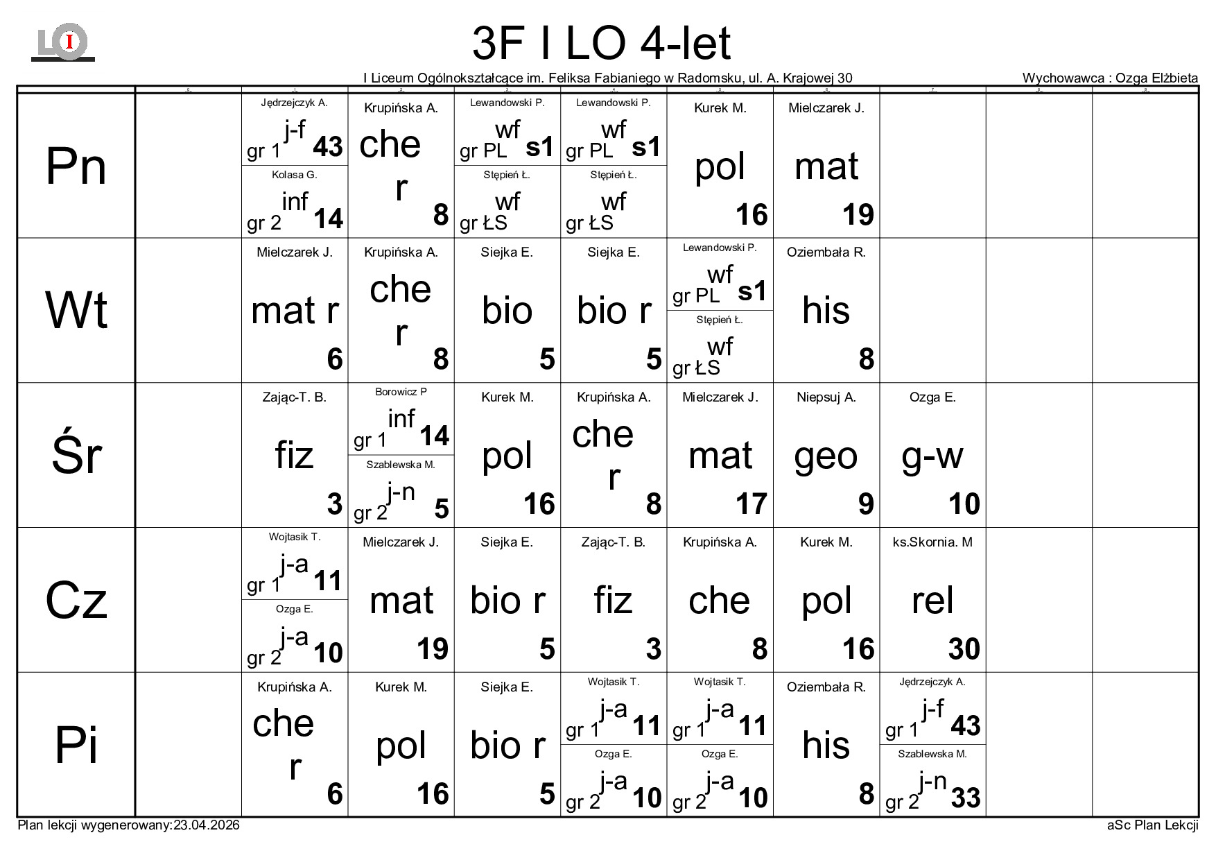 PLAN LEKCJI NA ROK SZKOLNY 2025/2026