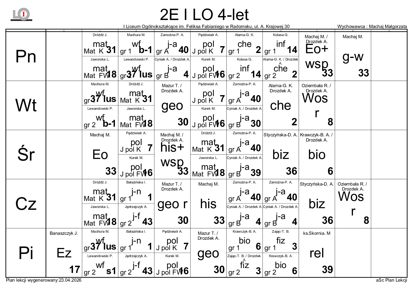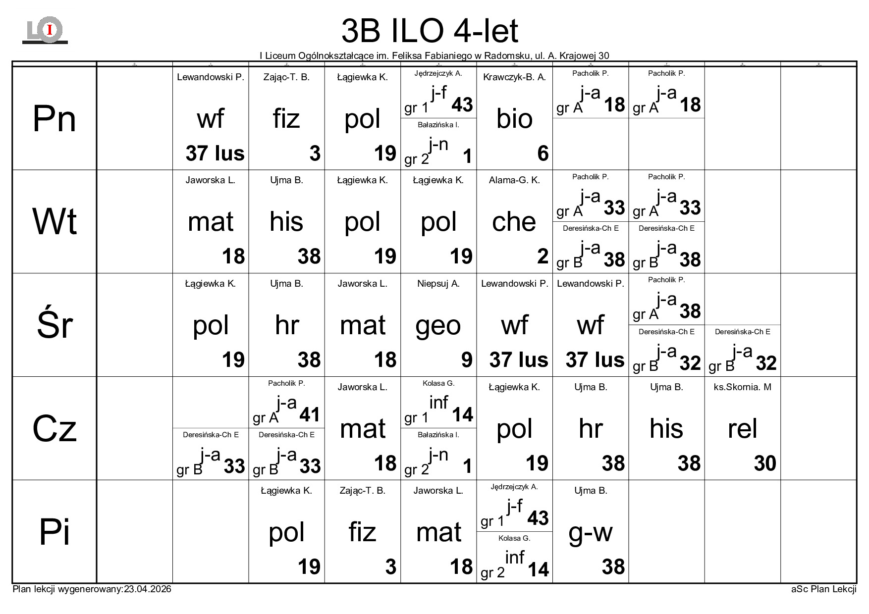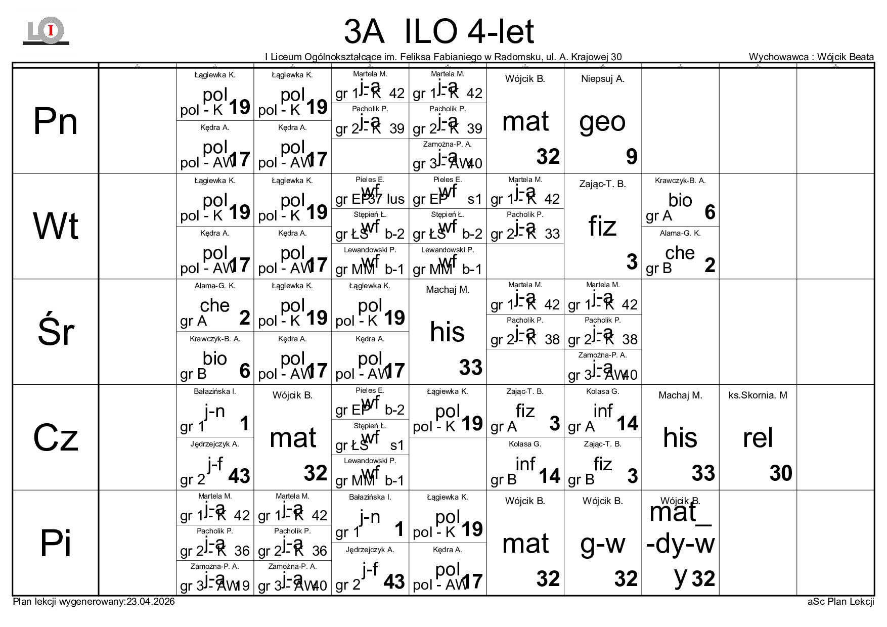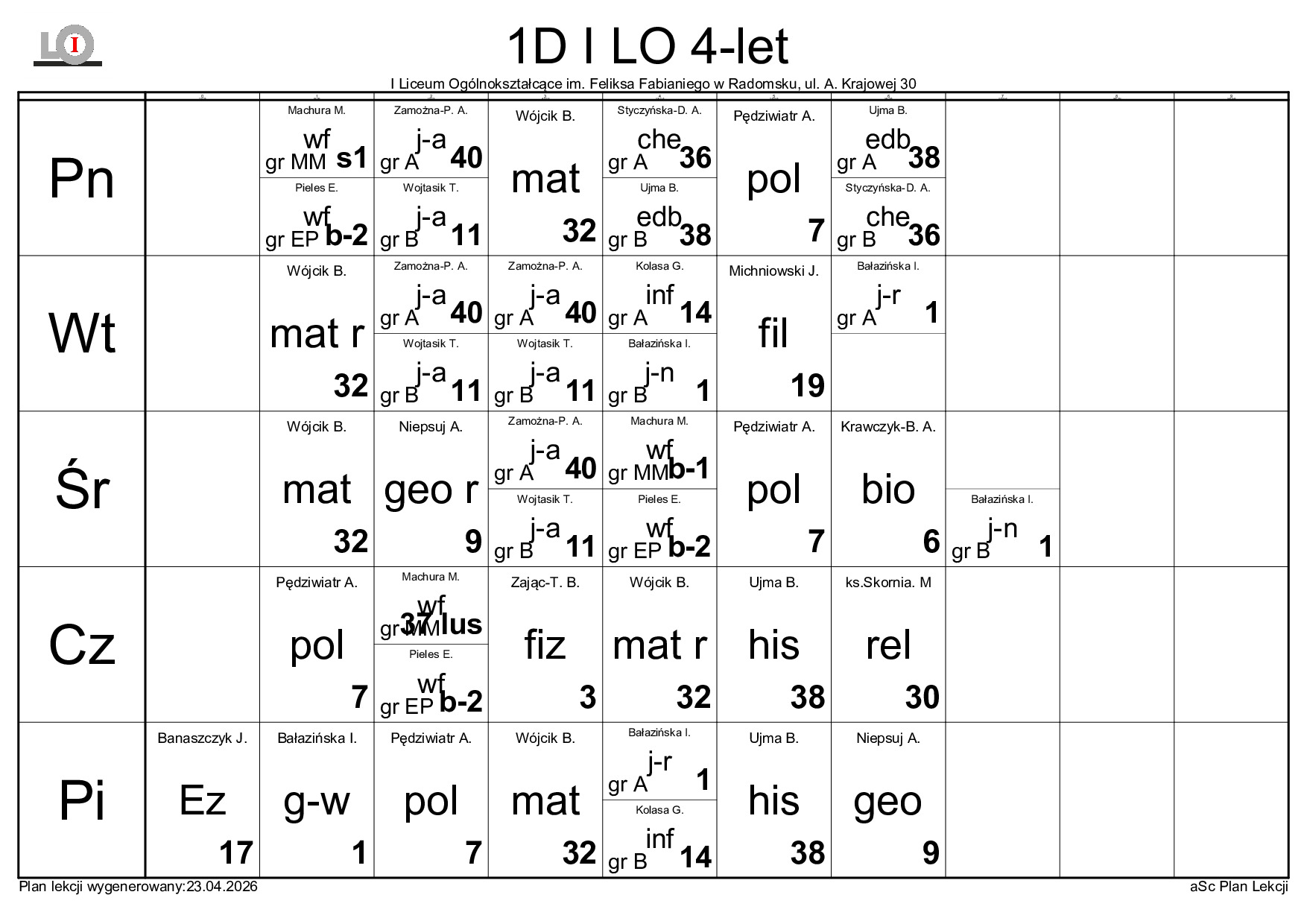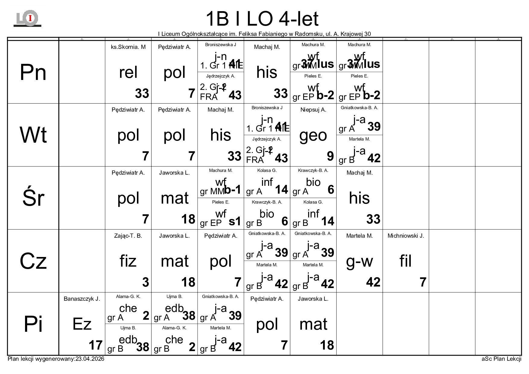 PLAN LEKCJI NA ROK SZKOLNY 2025/2026